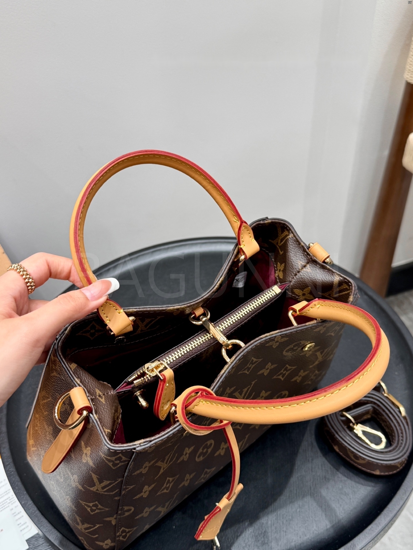 모노그램 패턴, 탑핸들, 숄더와 크로스 연출, 여유 있는 수납력 디테일이 조화롭게 어우러져 완성도를 높여줍니다 필수 소지품을 여유 있게 수납하기 좋습니다