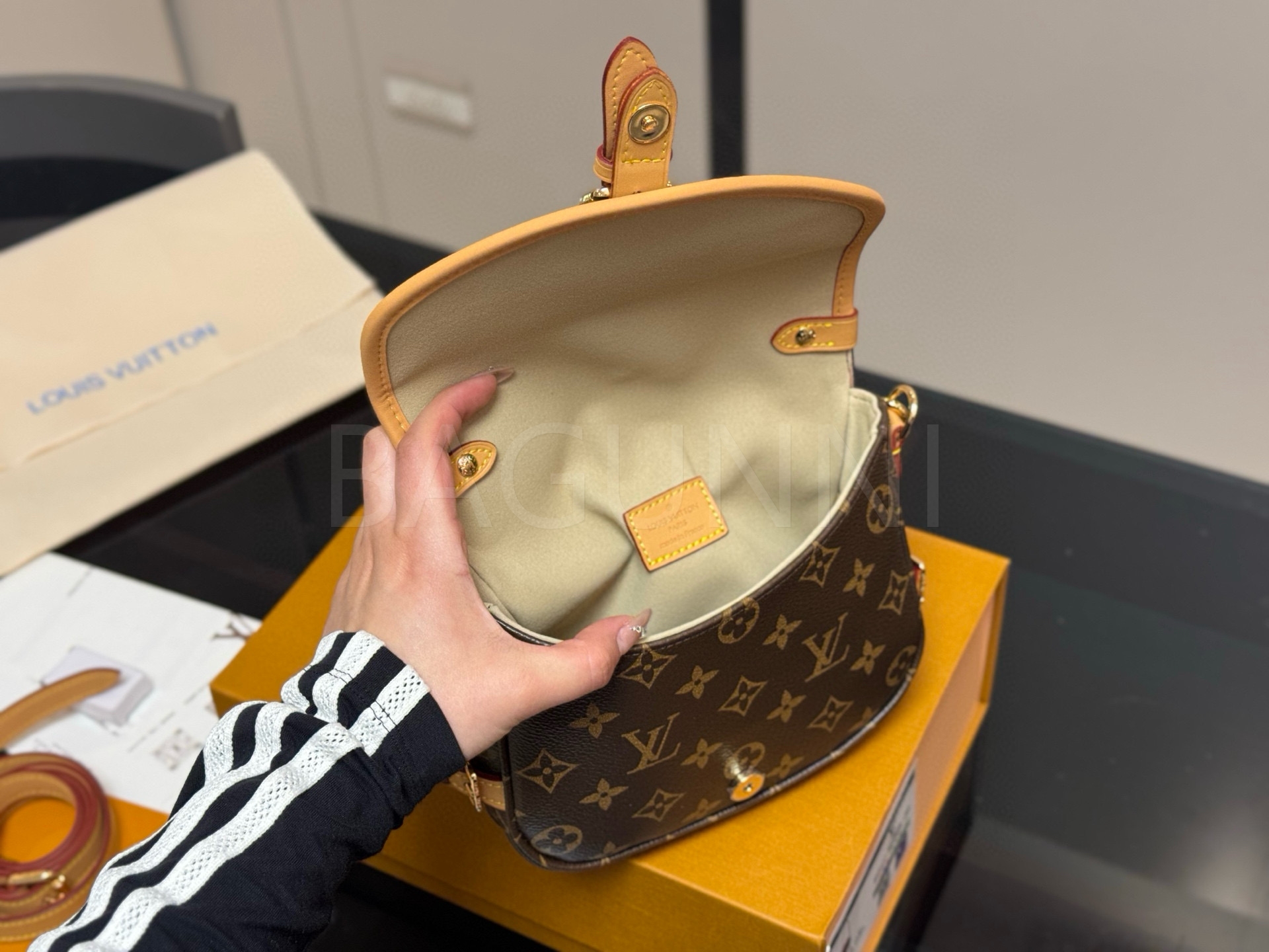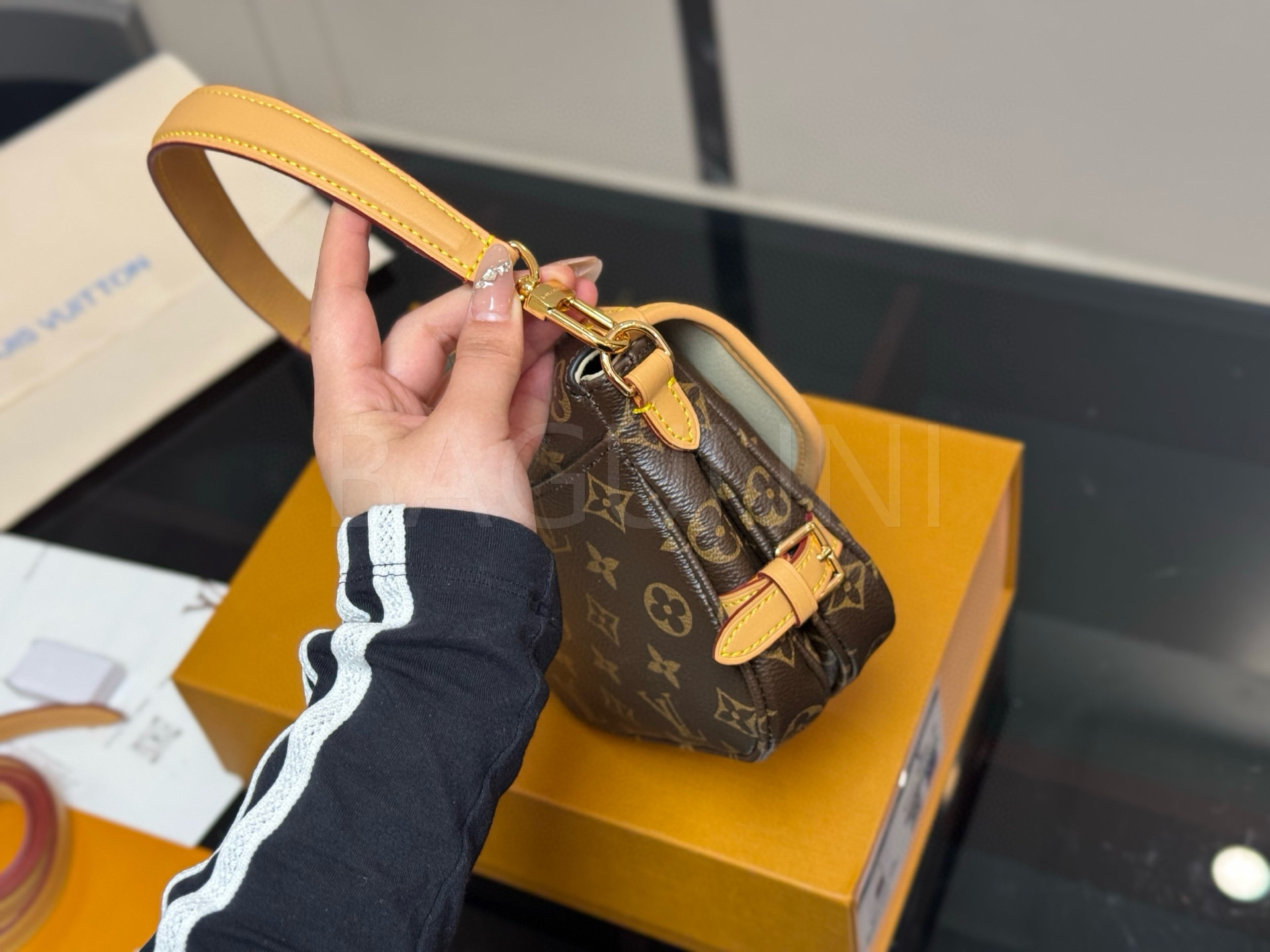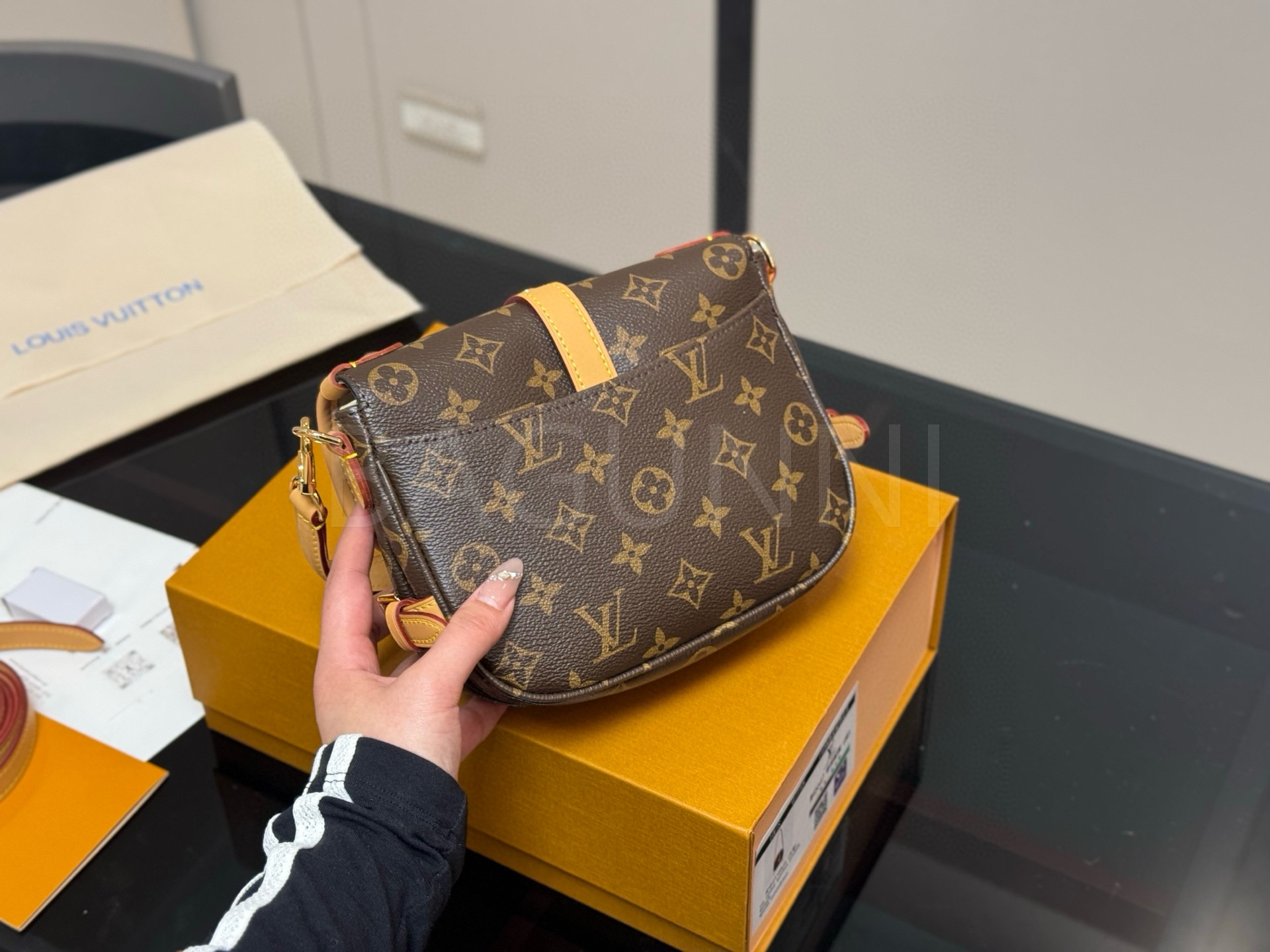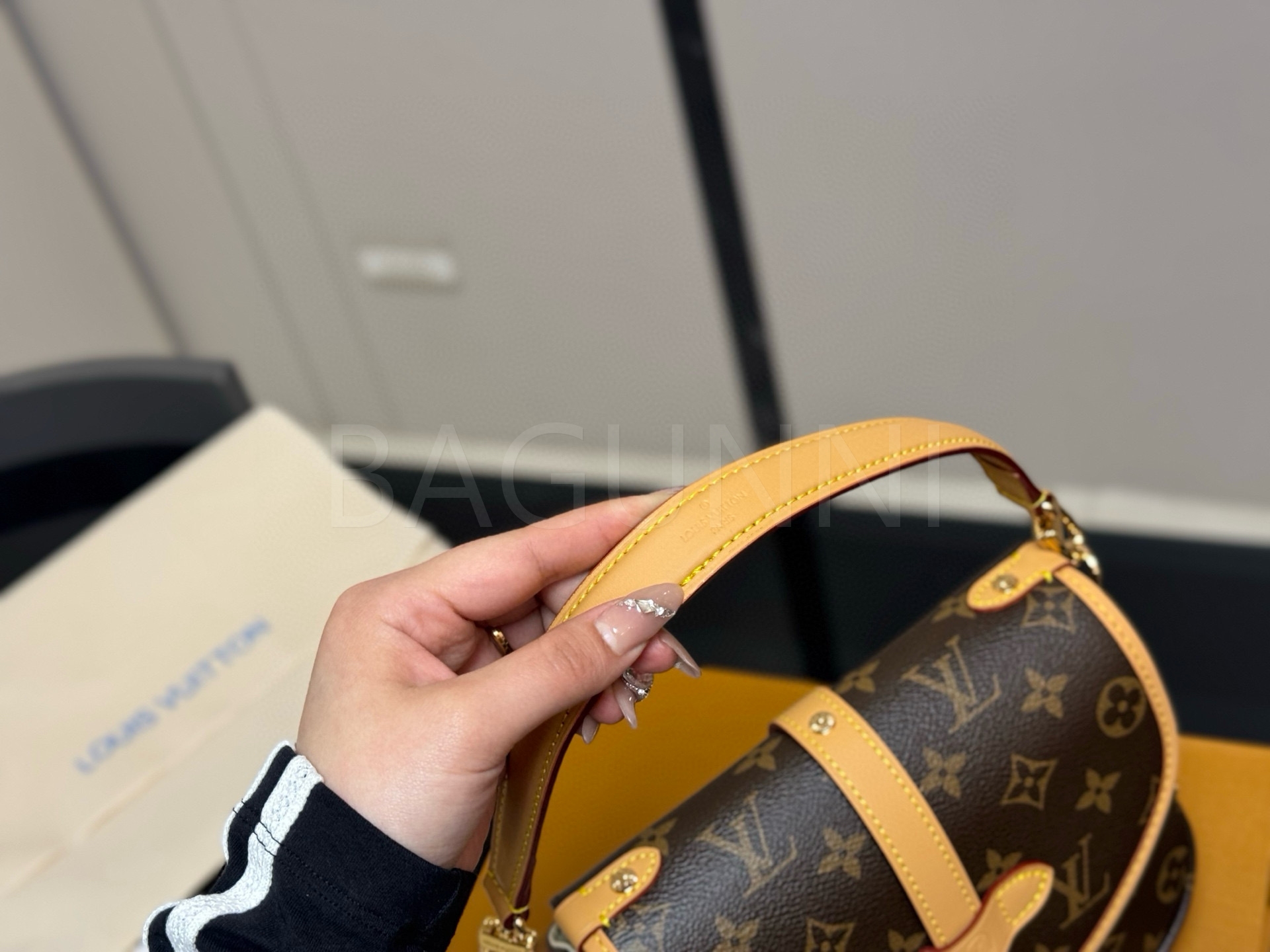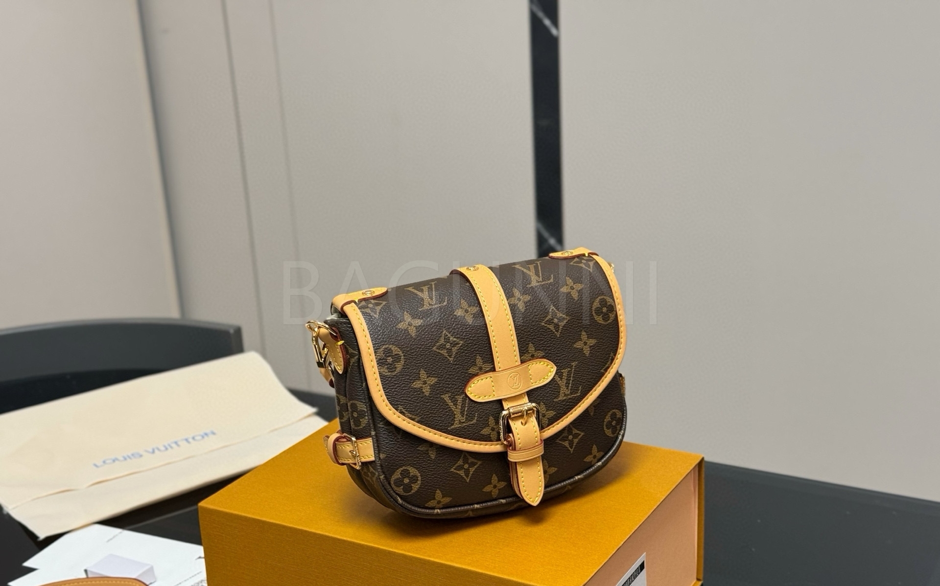 루이비통 특유의 세련된 분위기가 돋보이는 루이비통 소뮈르 BB 메신저 백입니다.