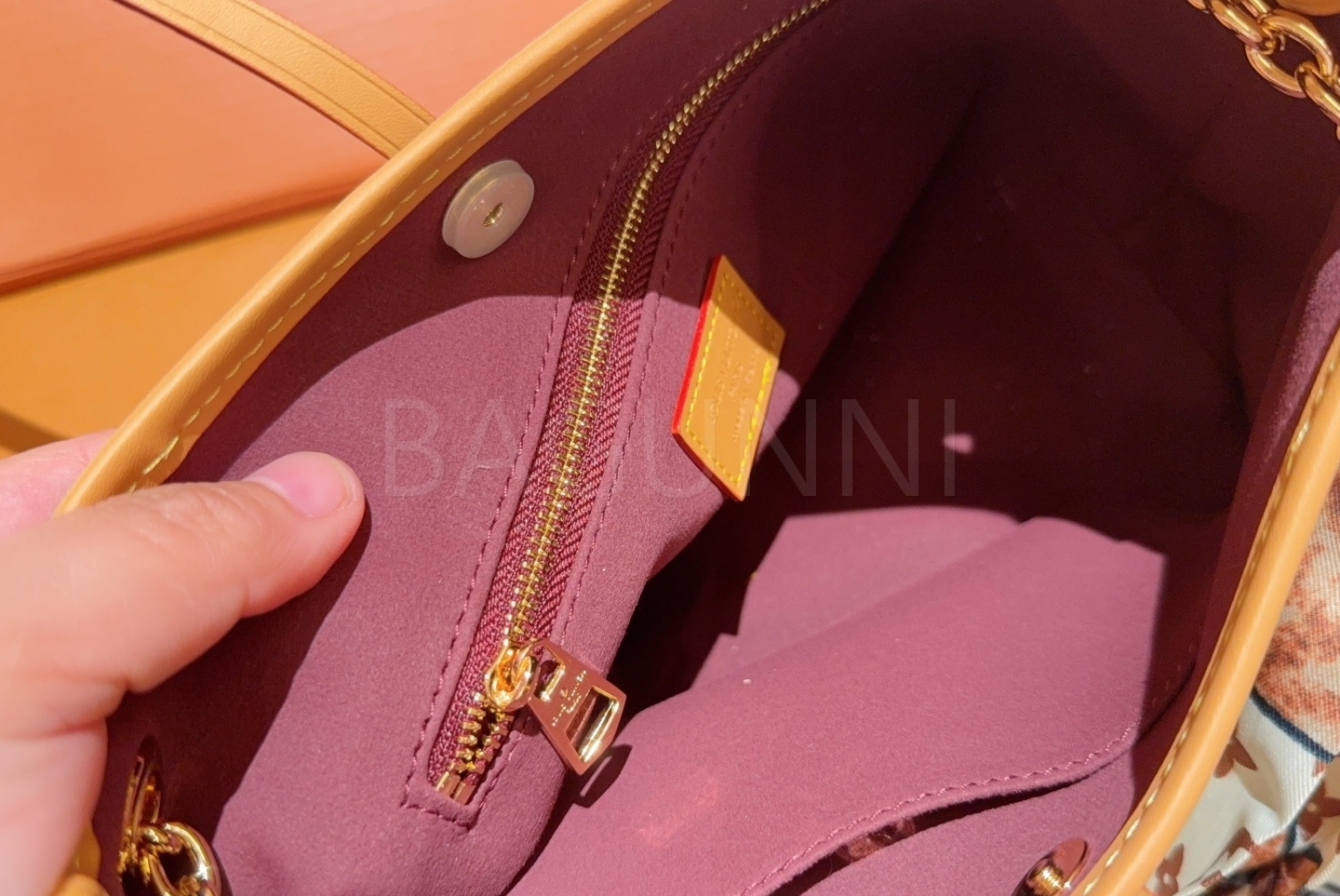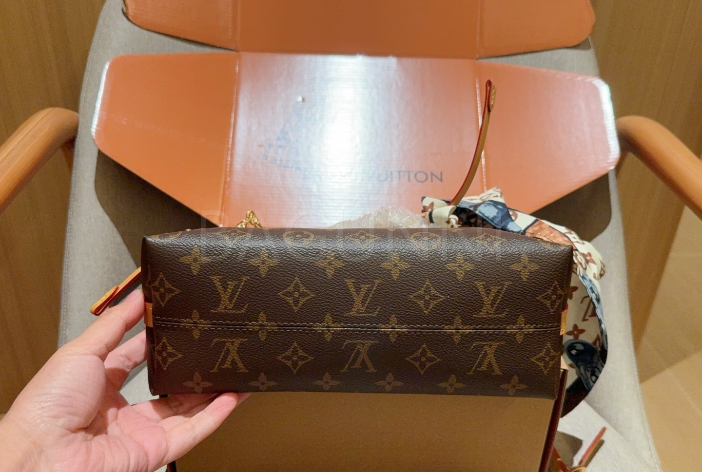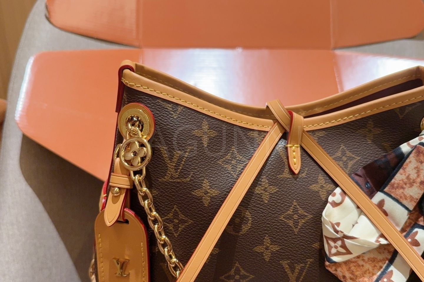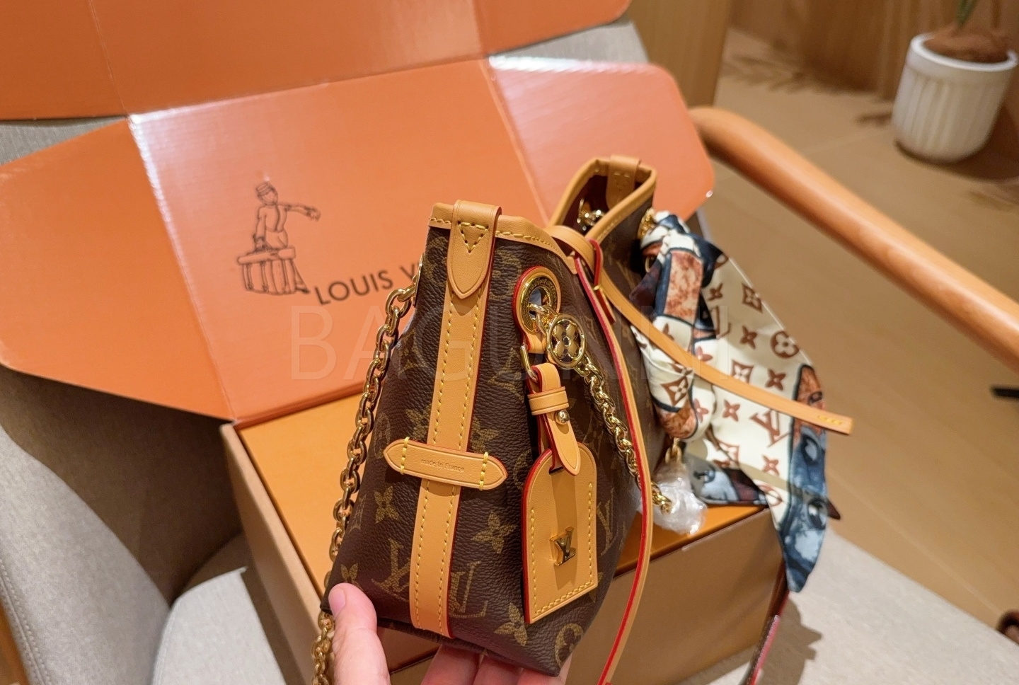 모노그램 패턴, 체인 스트랩, 숄더와 크로스 연출, 슬림한 숄더 실루엣 디테일이 조화롭게 어우러져 완성도를 높여줍니다