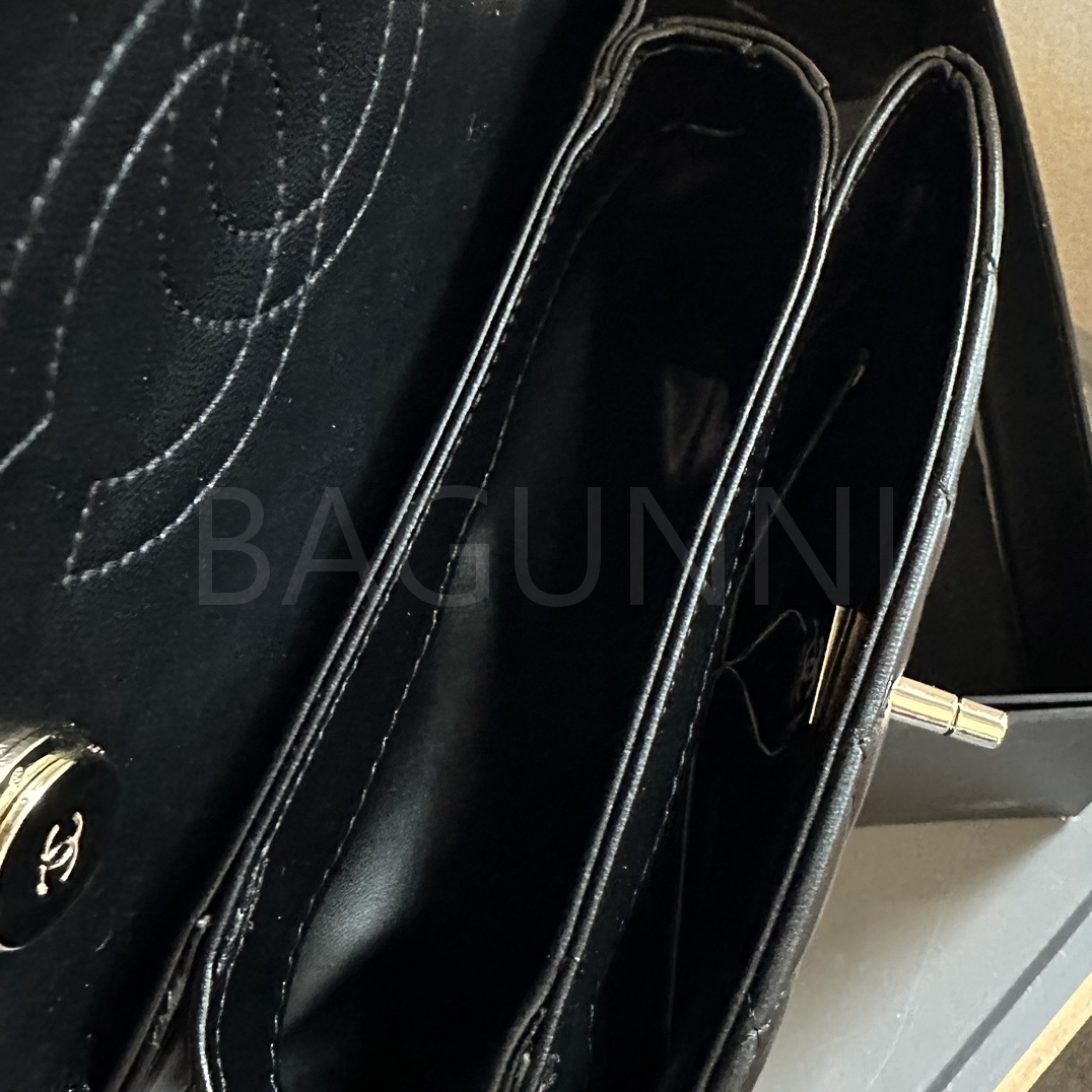 블랙 컬러가 감각적인 포인트를 더해줍니다 더블 C 로고 디테일이 조화롭게 어우러져 완성도를 높여줍니다 빈티지한 분위기로 스타일링에 멋을 더해줍니다