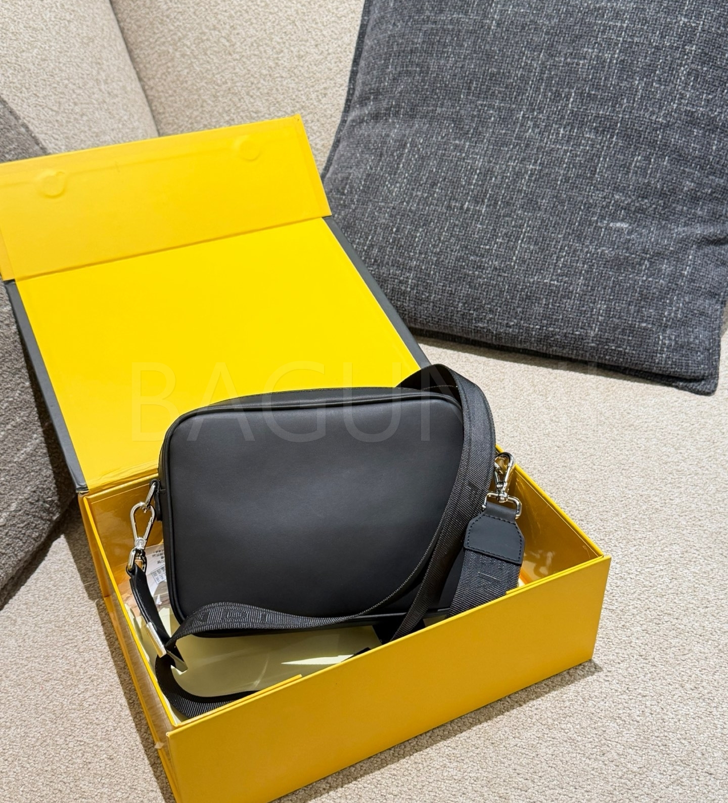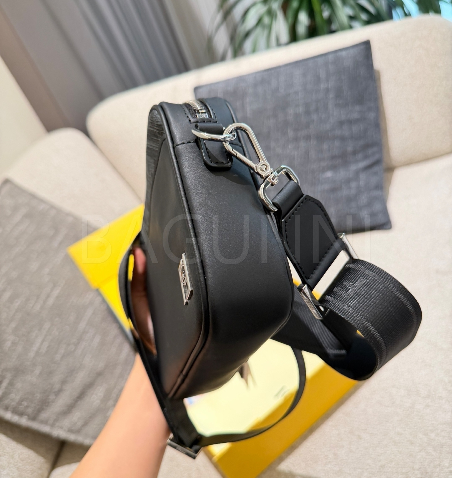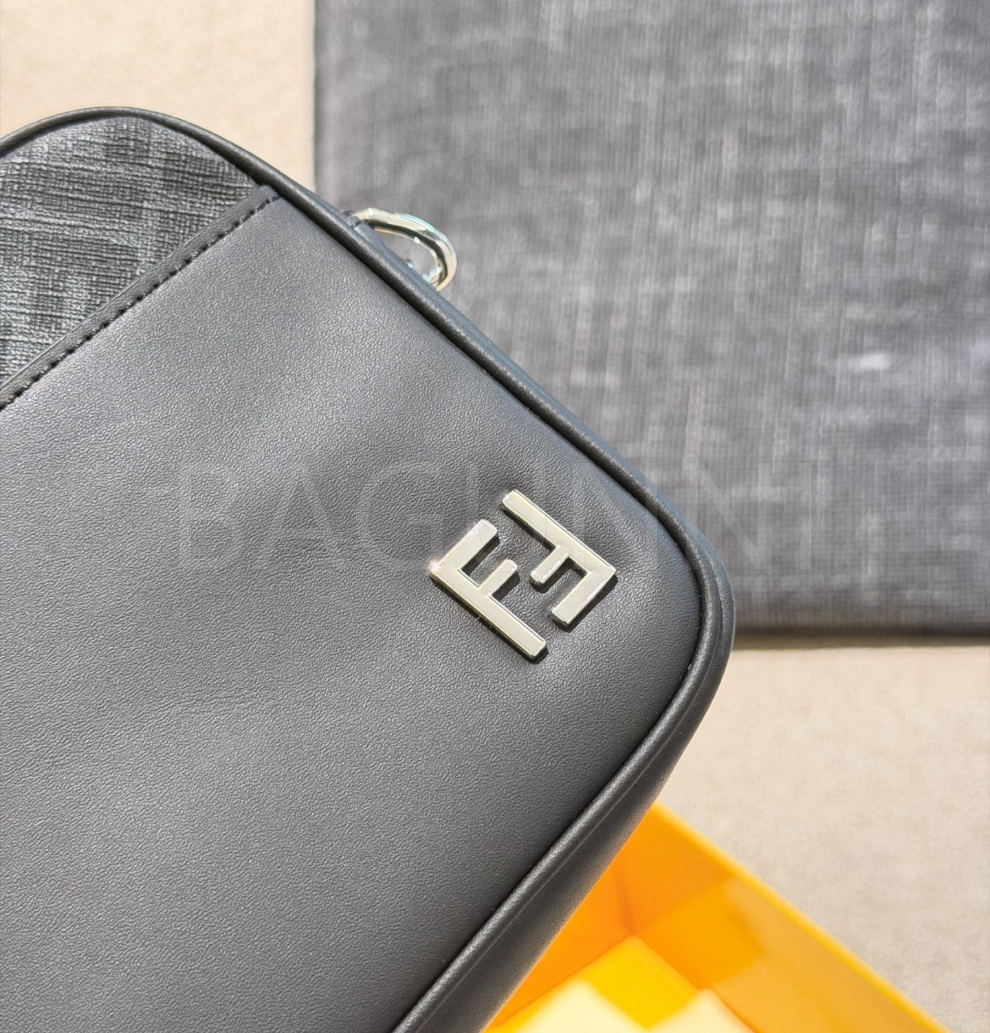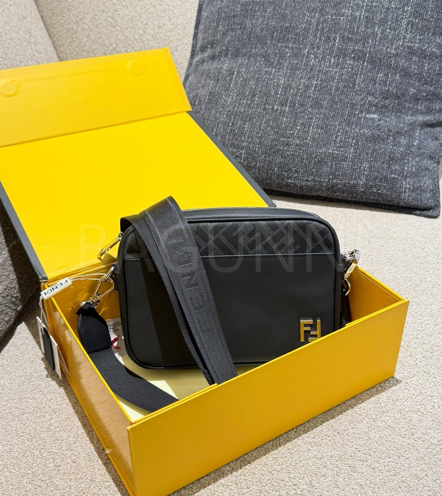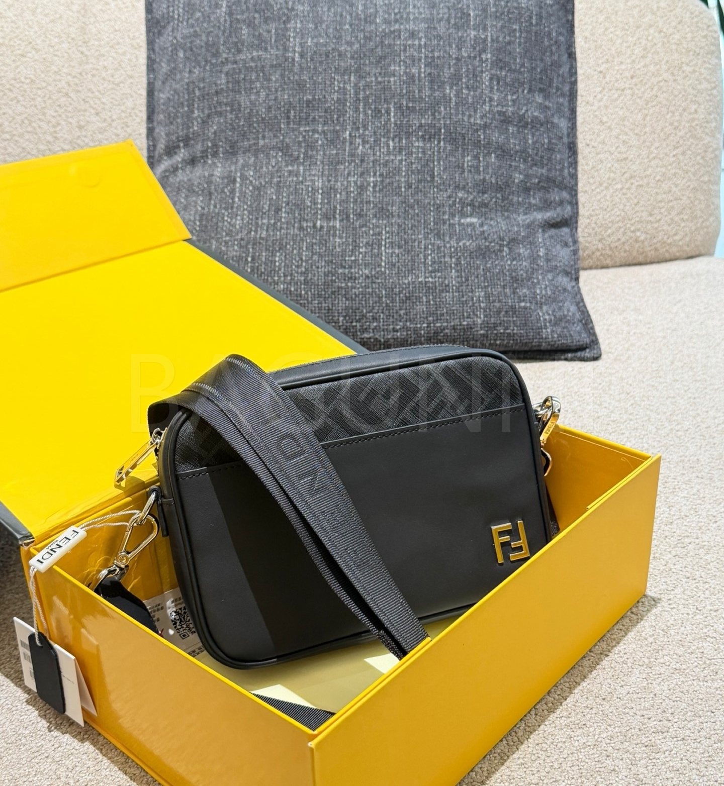 펜디 FF 숄더백입니다. 가죽 특유의 질감이 자연스럽게 살아 있으며 블랙 톤이 어우러져 브랜드 특유의 분위기를 편하게 즐기기 좋습니다.