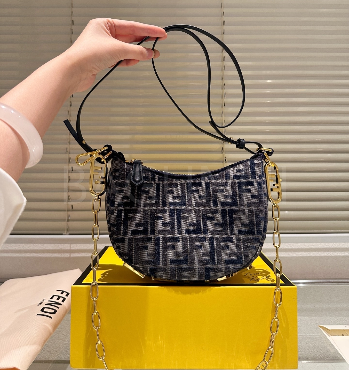 펜디 FF 크레센트 숄더백은 세련된 실루엣을 담은 아이템입니다.