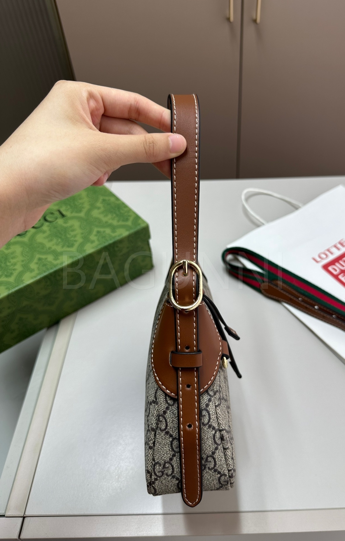구찌 GG 엠블럼 반달 숄더백입니다. 브랜드 특유의 분위기를 편하게 즐기기 좋습니다.