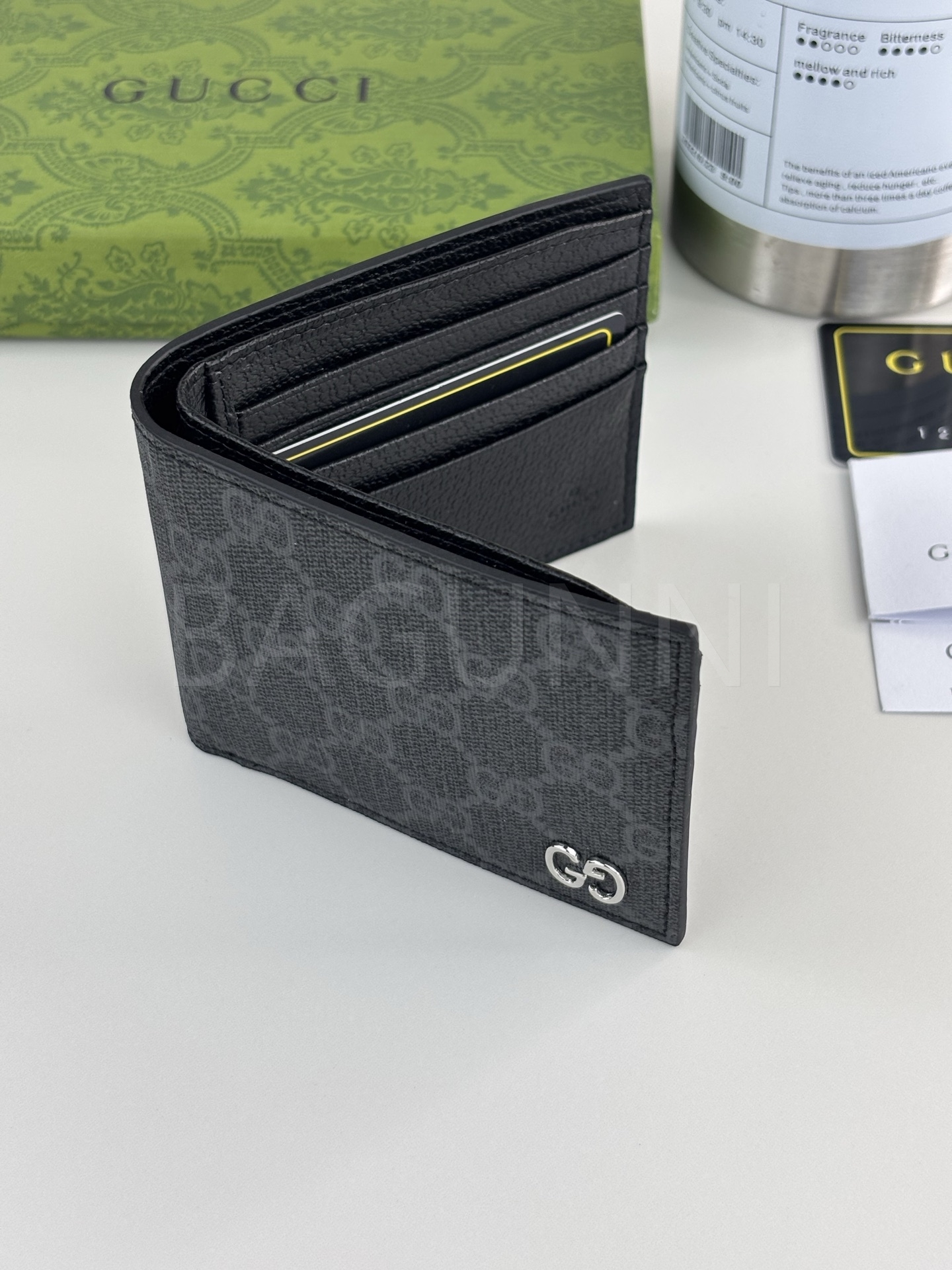 구찌 GG 수프림 반지갑 특유의 분위기가 자연스럽게 드러나는 디자인입니다.