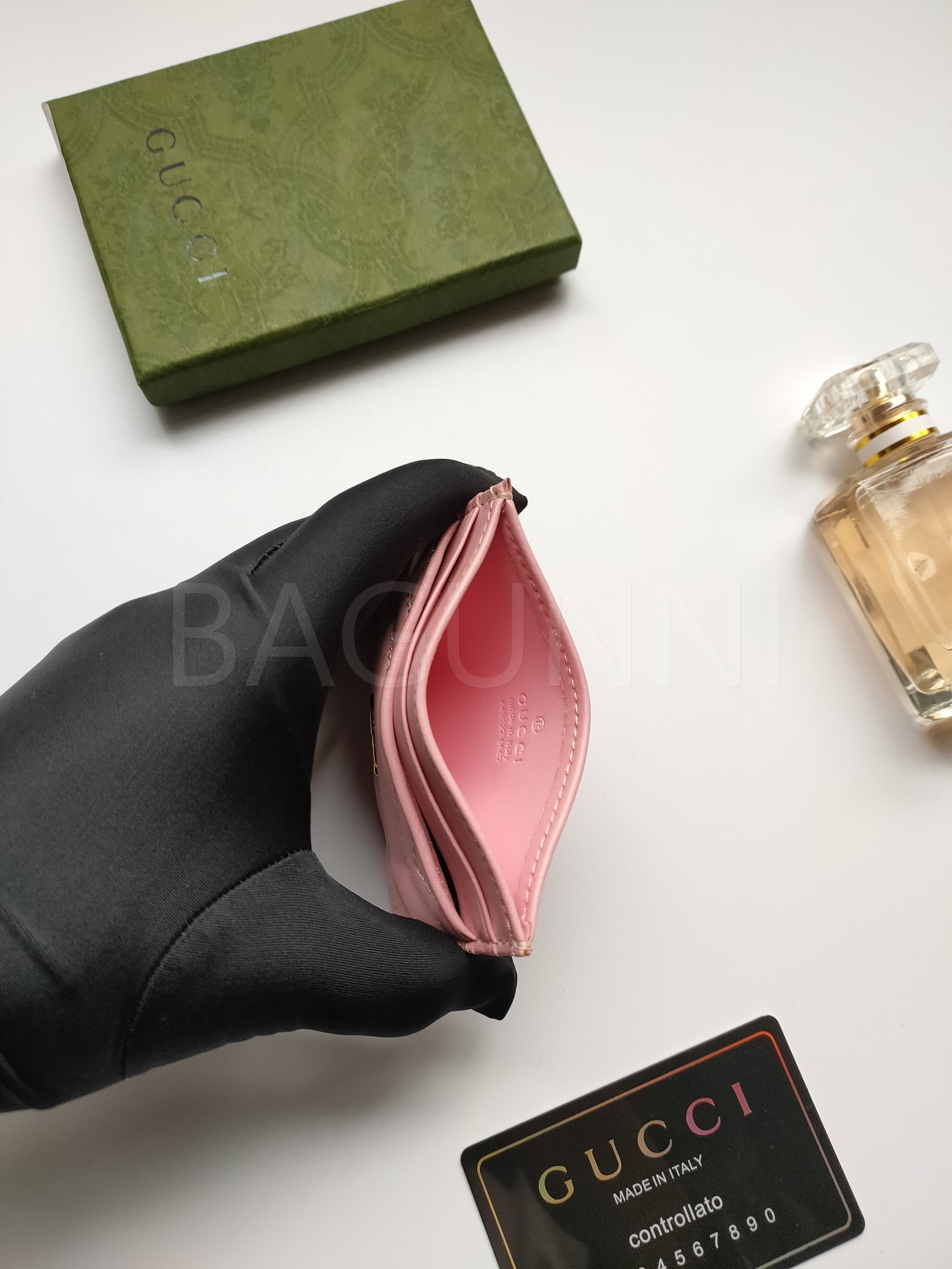 카프스킨의 질감이 돋보이는 구찌 GG 마몬트 카드지갑입니다.