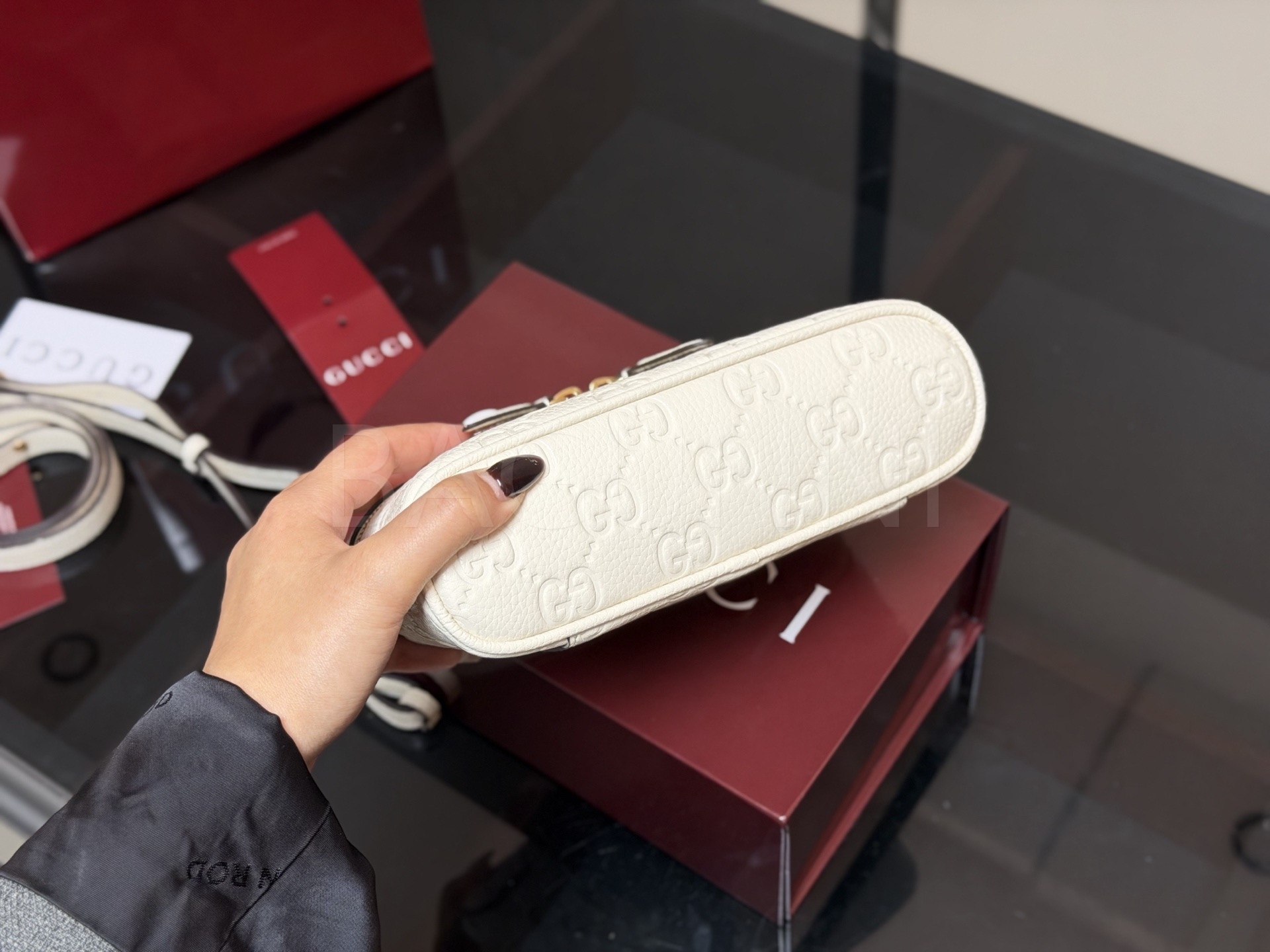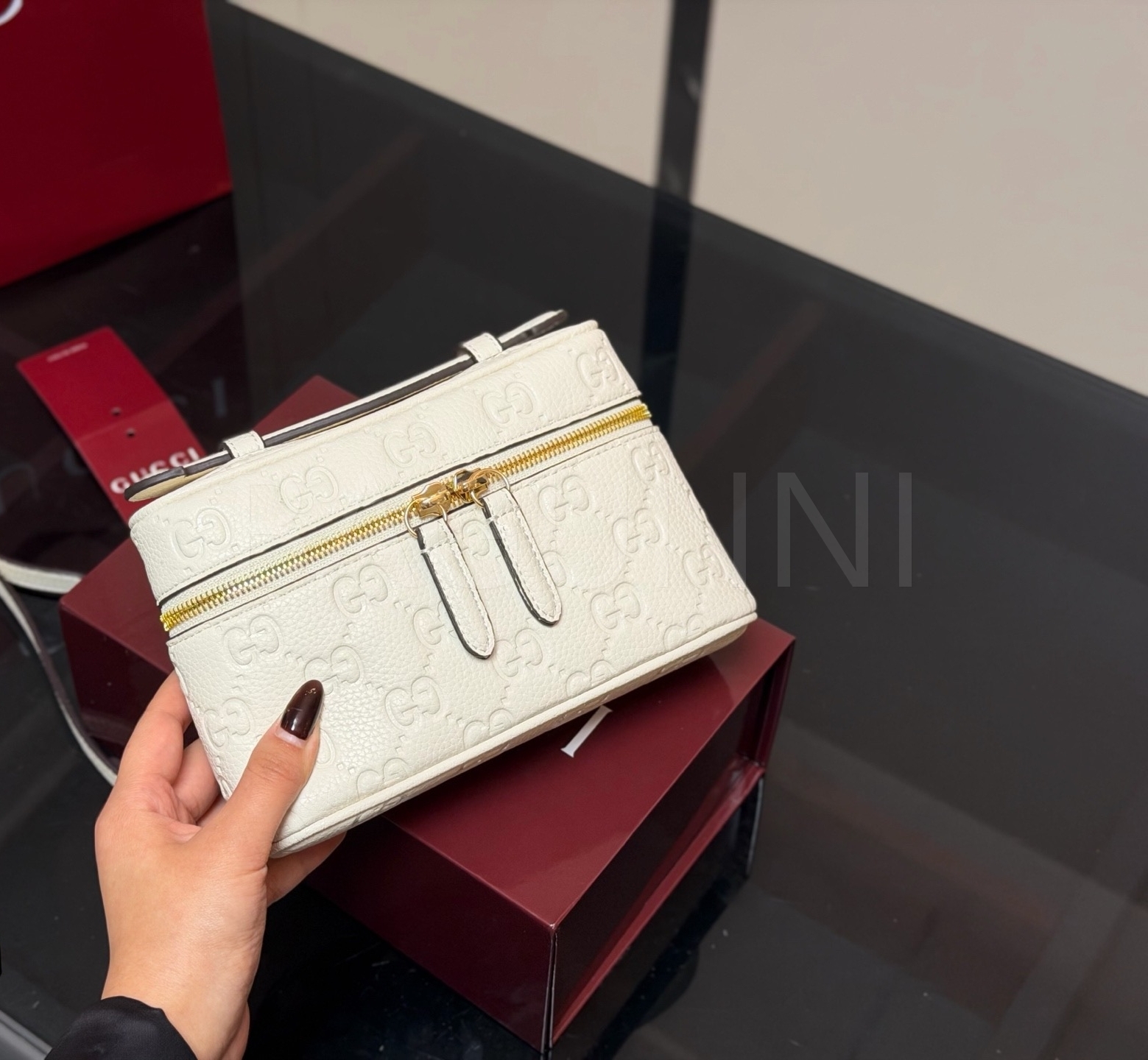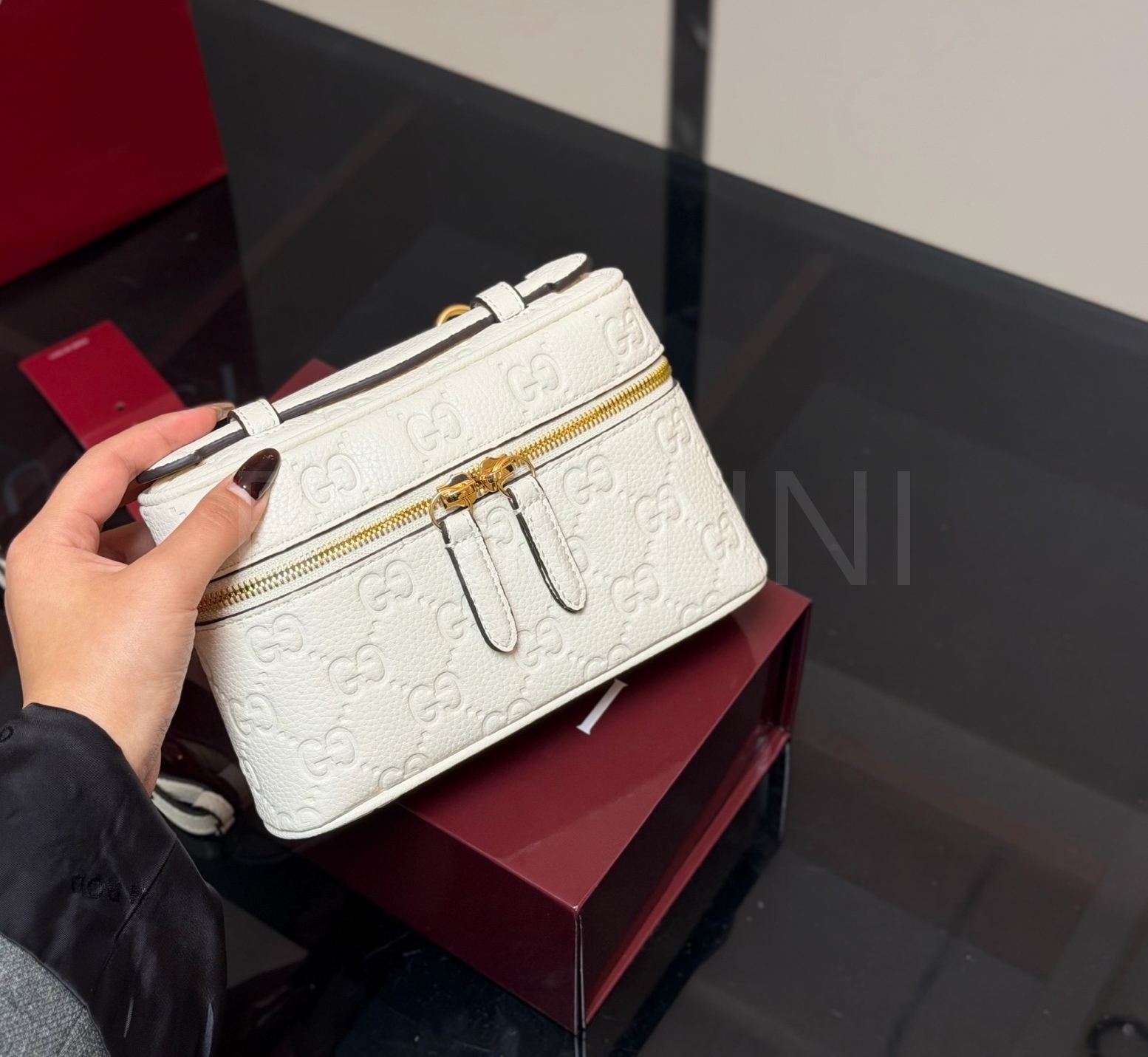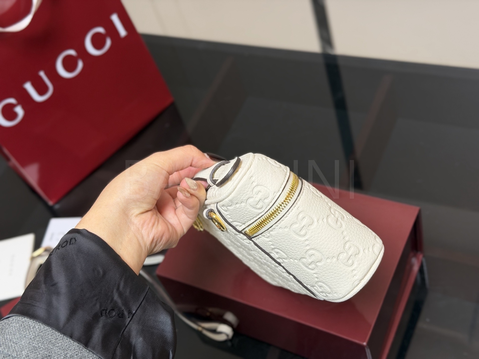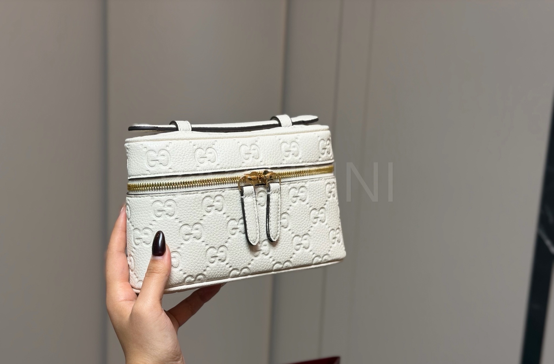 구찌 GG 엠보스 베니티 백은 세련된 실루엣을 담은 아이템입니다.