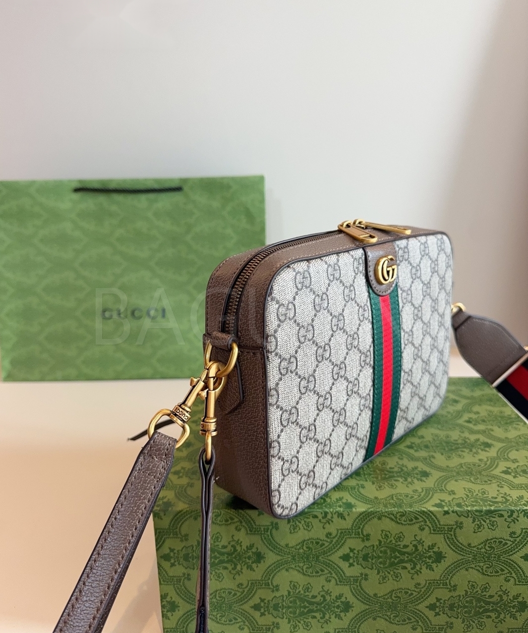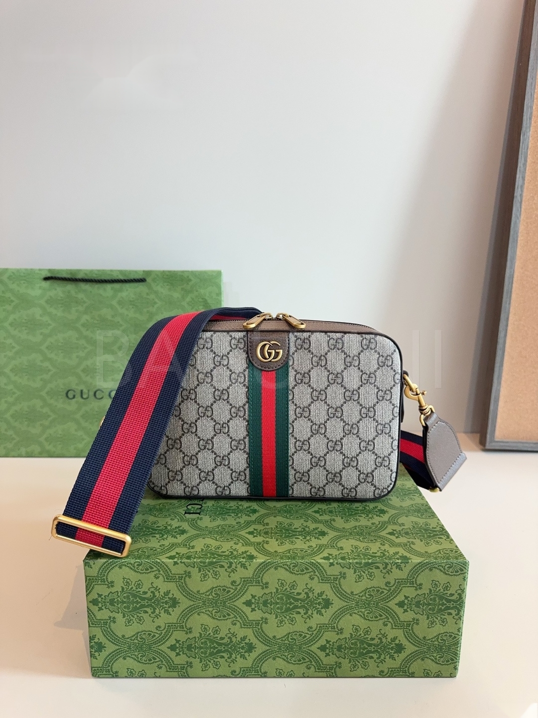 구찌 GG 패턴 카메라백입니다. 브랜드 특유의 분위기를 편하게 즐기기 좋습니다.