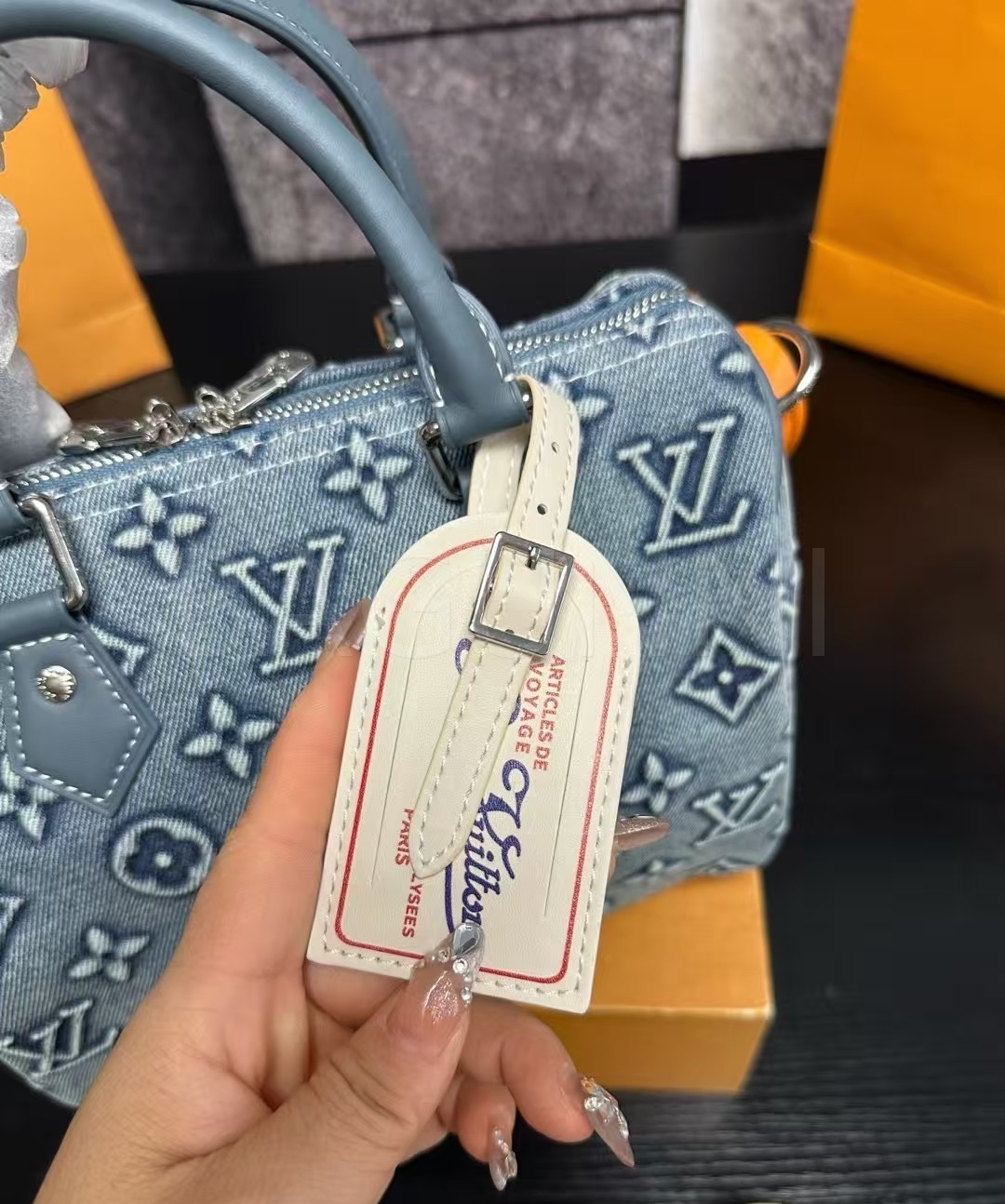 입체적인 엠보싱 가죽 질감이 매력적인 루이비통 앙프렝뜨 가방입니다.