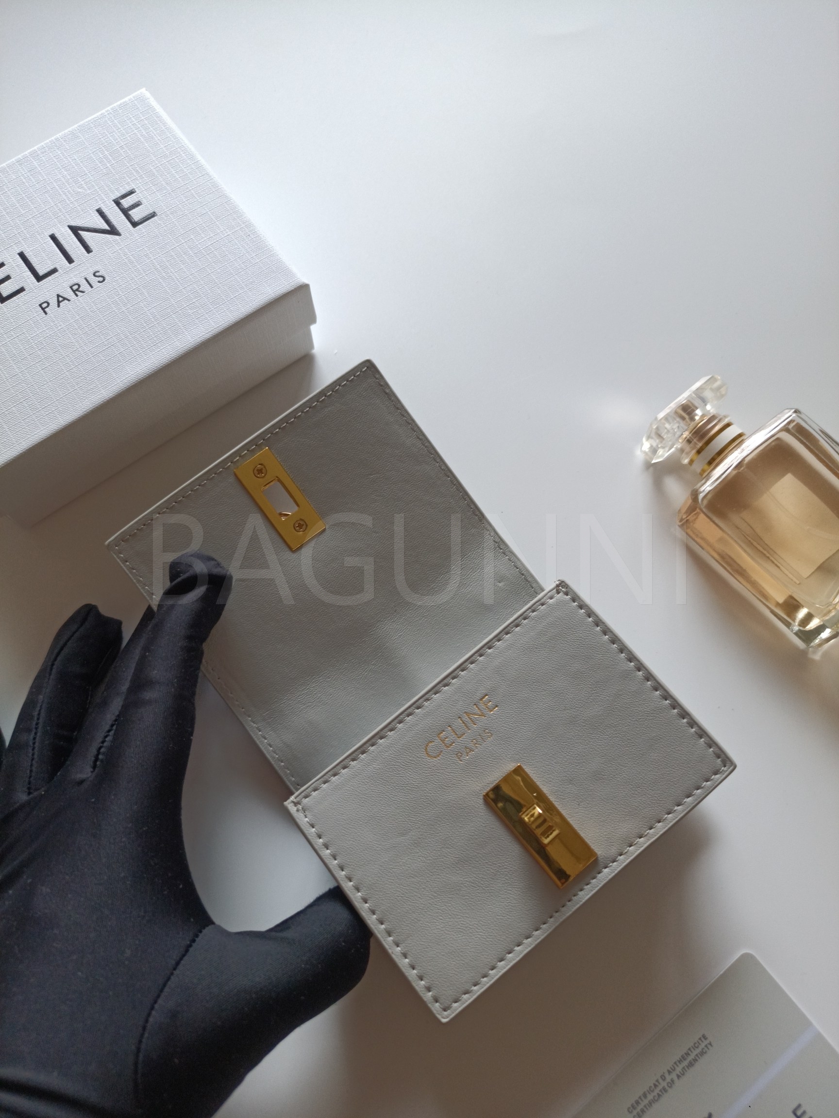 셀린느 특유의 무드가 자연스럽게 살아있는 트리옹프 플랩 카드지갑입니다.