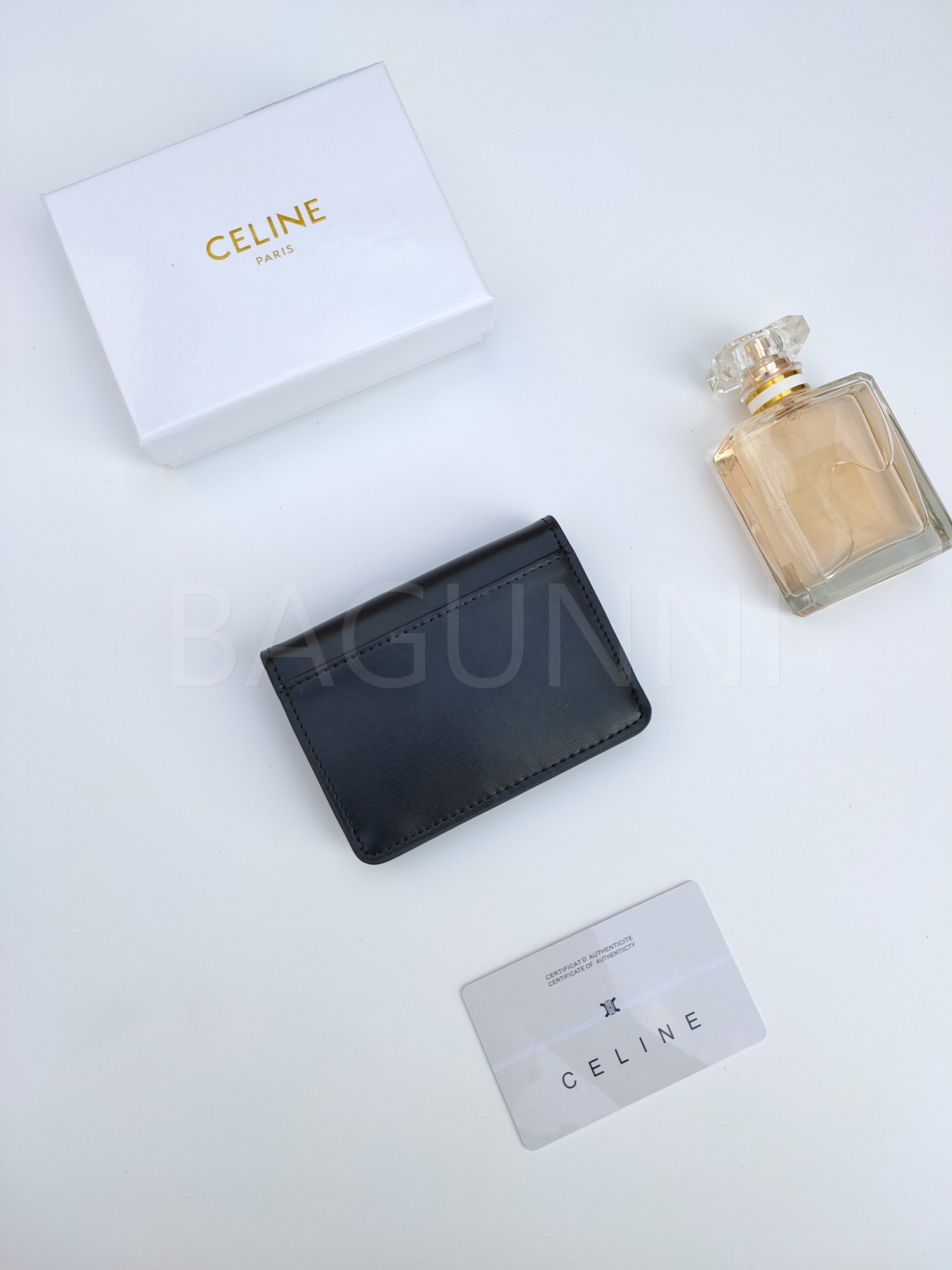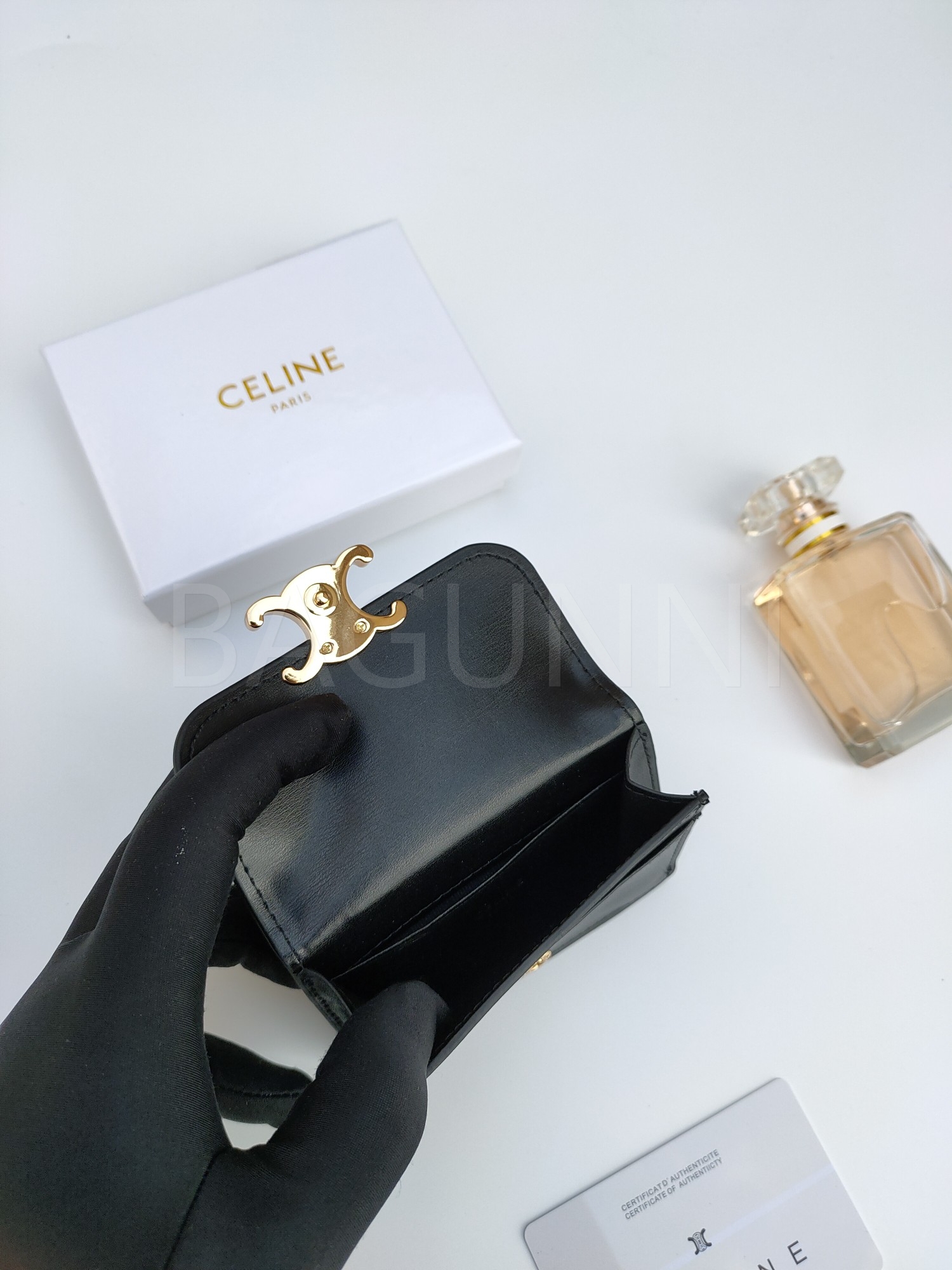 카프스킨의 질감이 돋보이는 셀린느 트리옹프 플랩 카드지갑입니다.