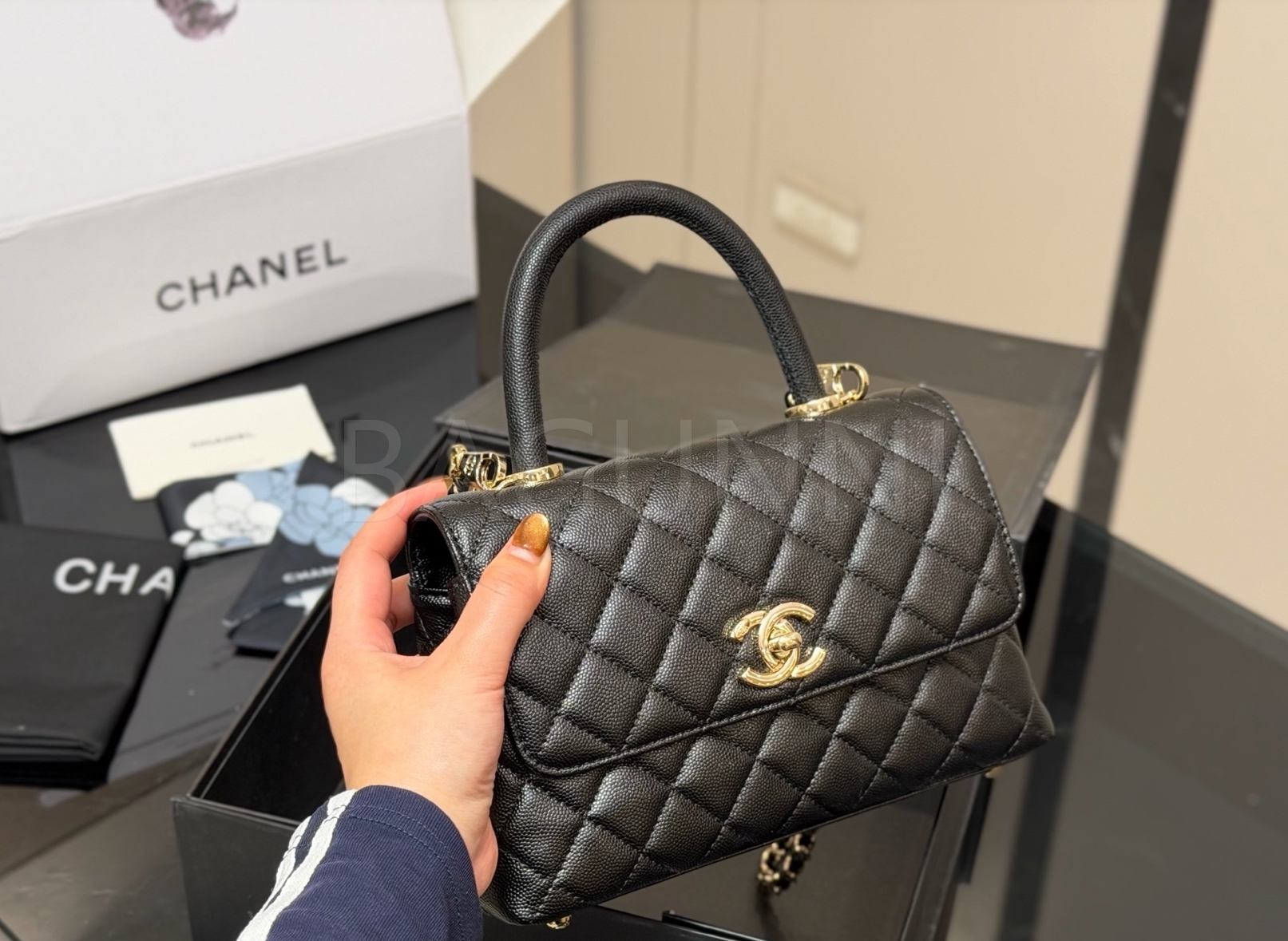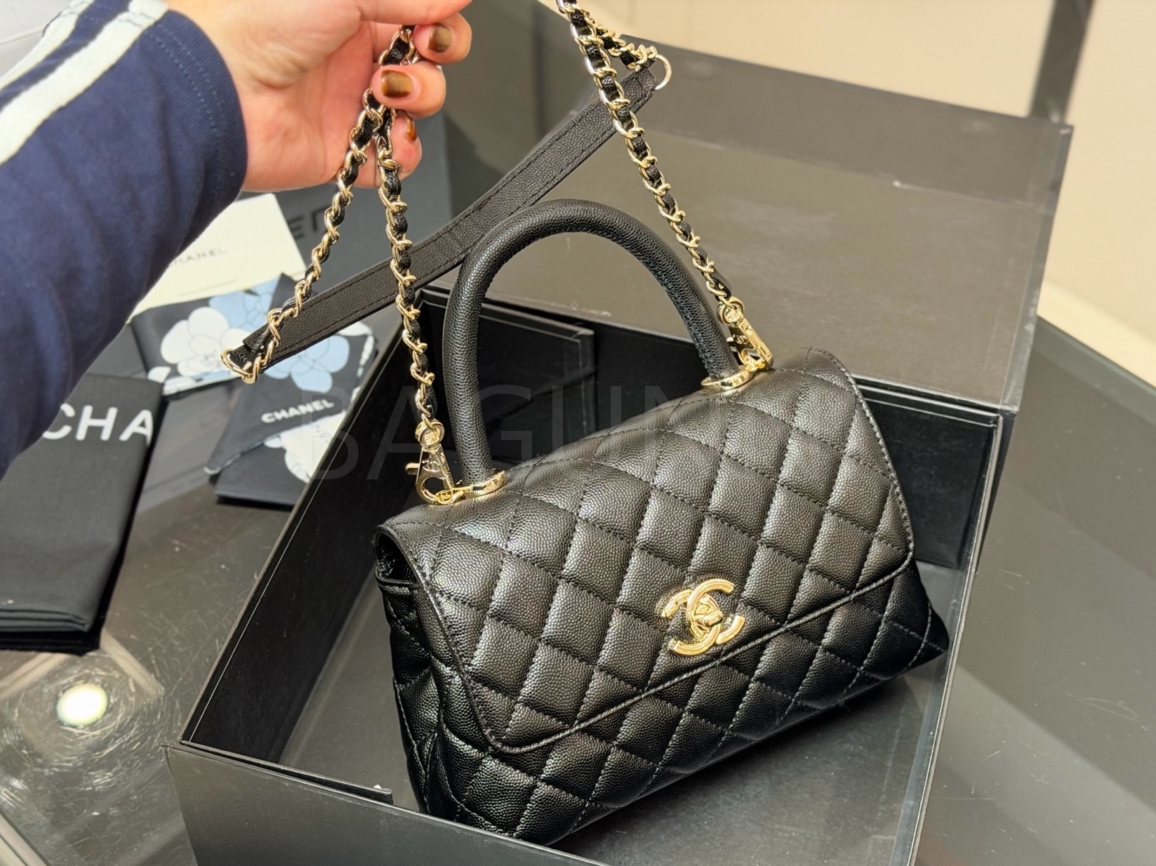 가죽 특유의 매력이 돋보이는 샤넬 코코핸들 백입니다.