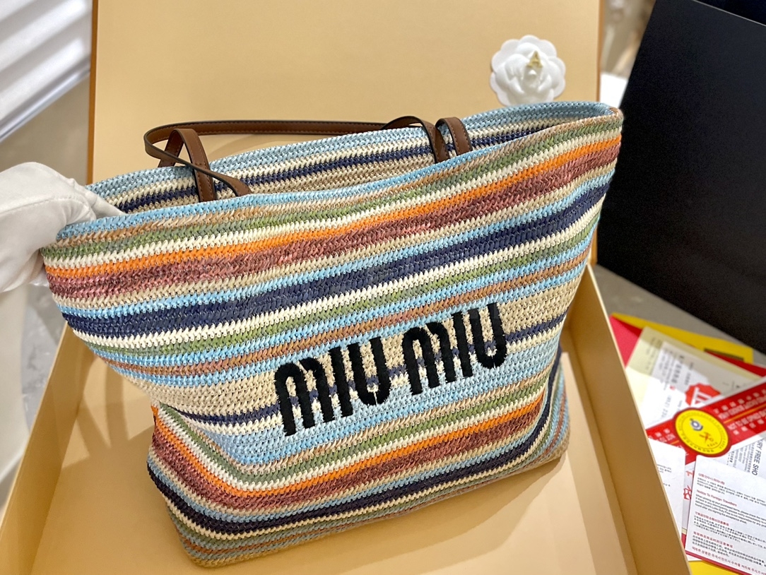 미우미우 스트라이프 니트 쇼퍼백