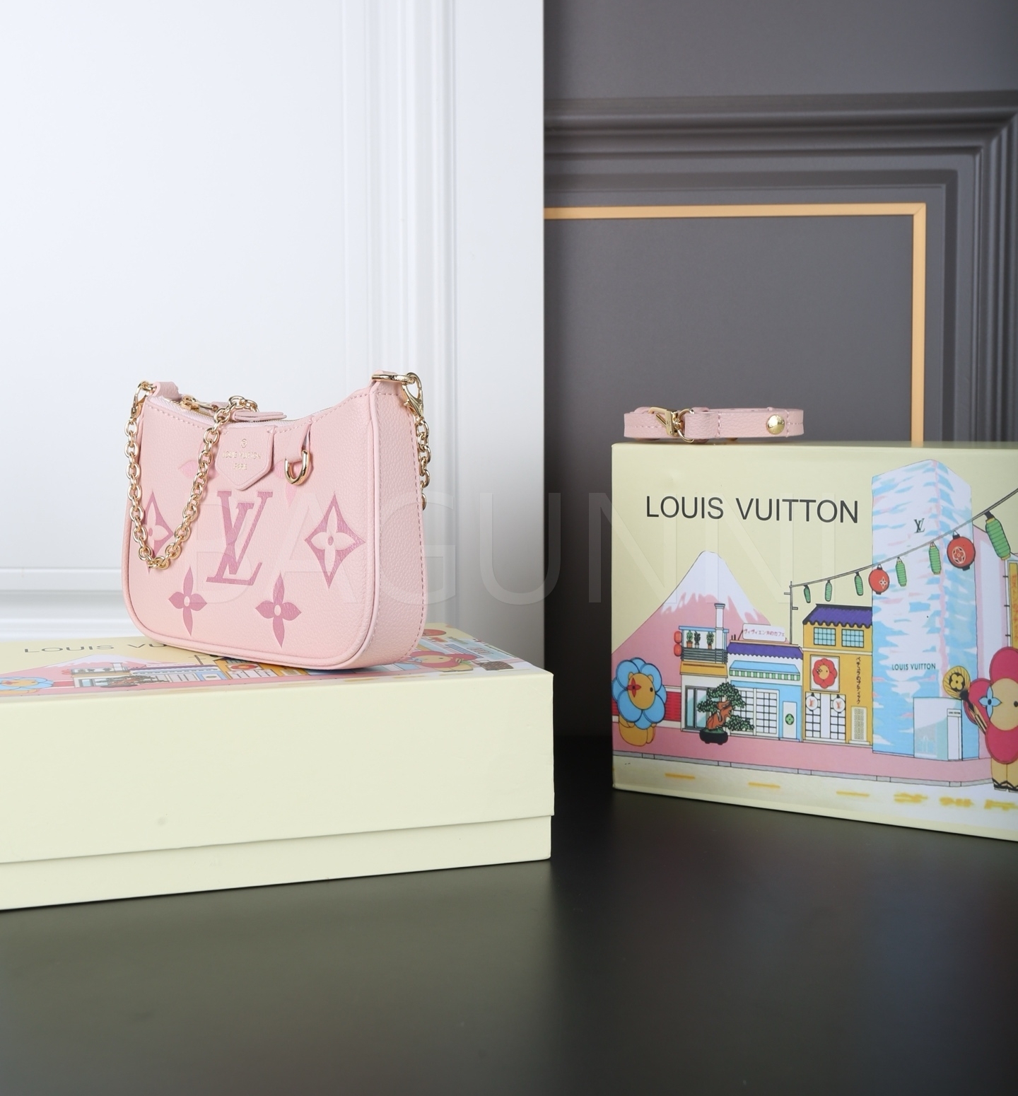 핑크, 그레이 컬러 구성이 감각적인 분위기를 완성해줍니다 체인 스트랩, 탑핸들, 숄더와 크로스 연출 디테일이 조화롭게 어우러져 완성도를 높여줍니다