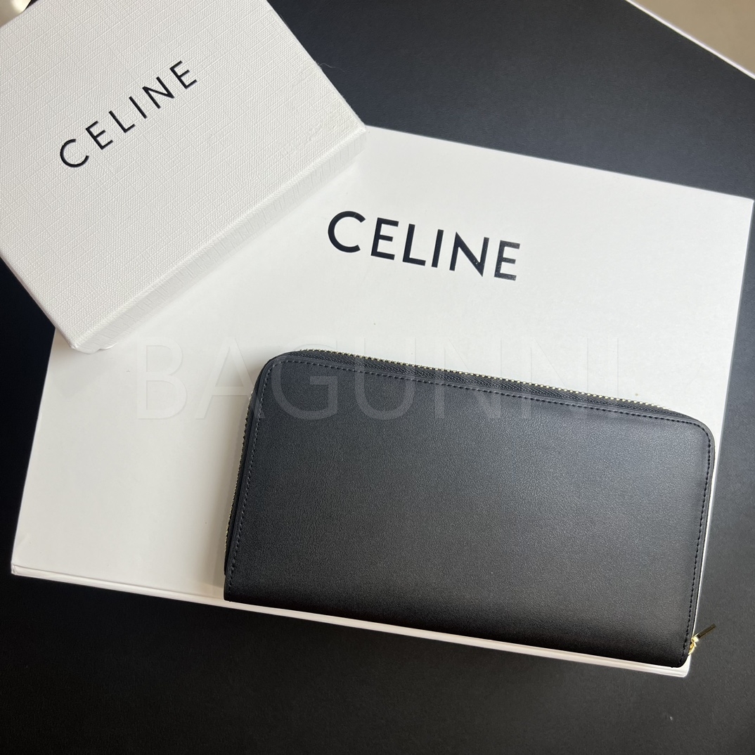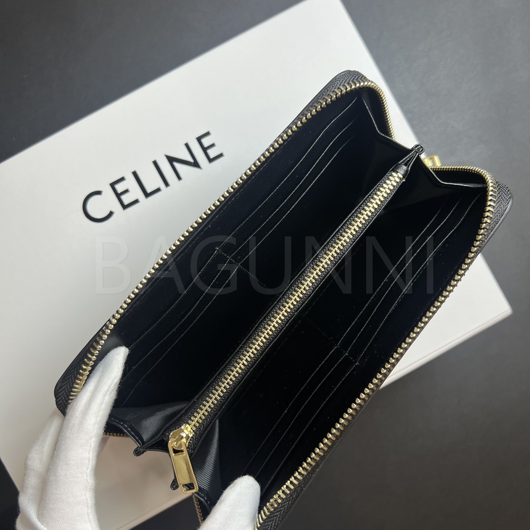 카프스킨의 질감이 돋보이는 셀린느 트리옹프 지퍼 카드지갑입니다.
