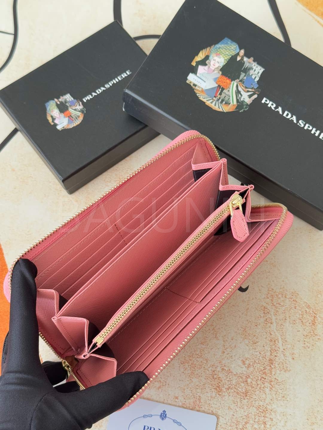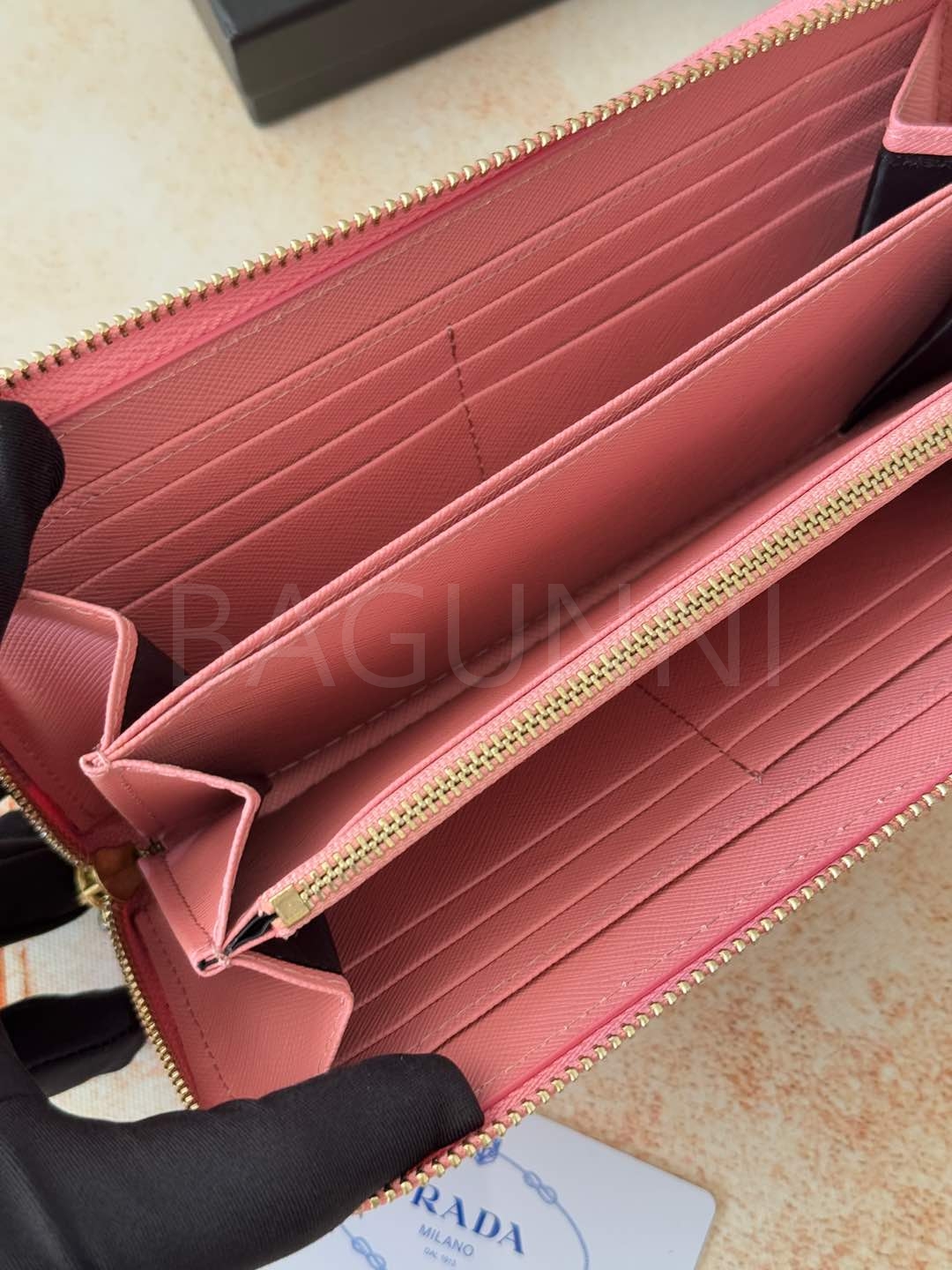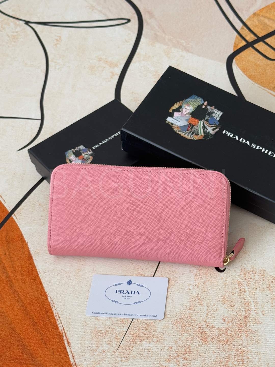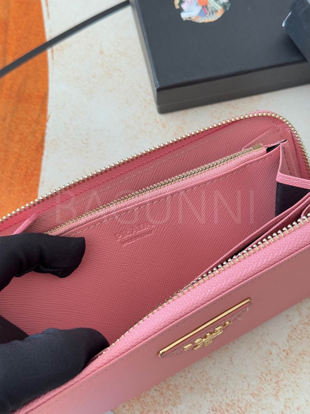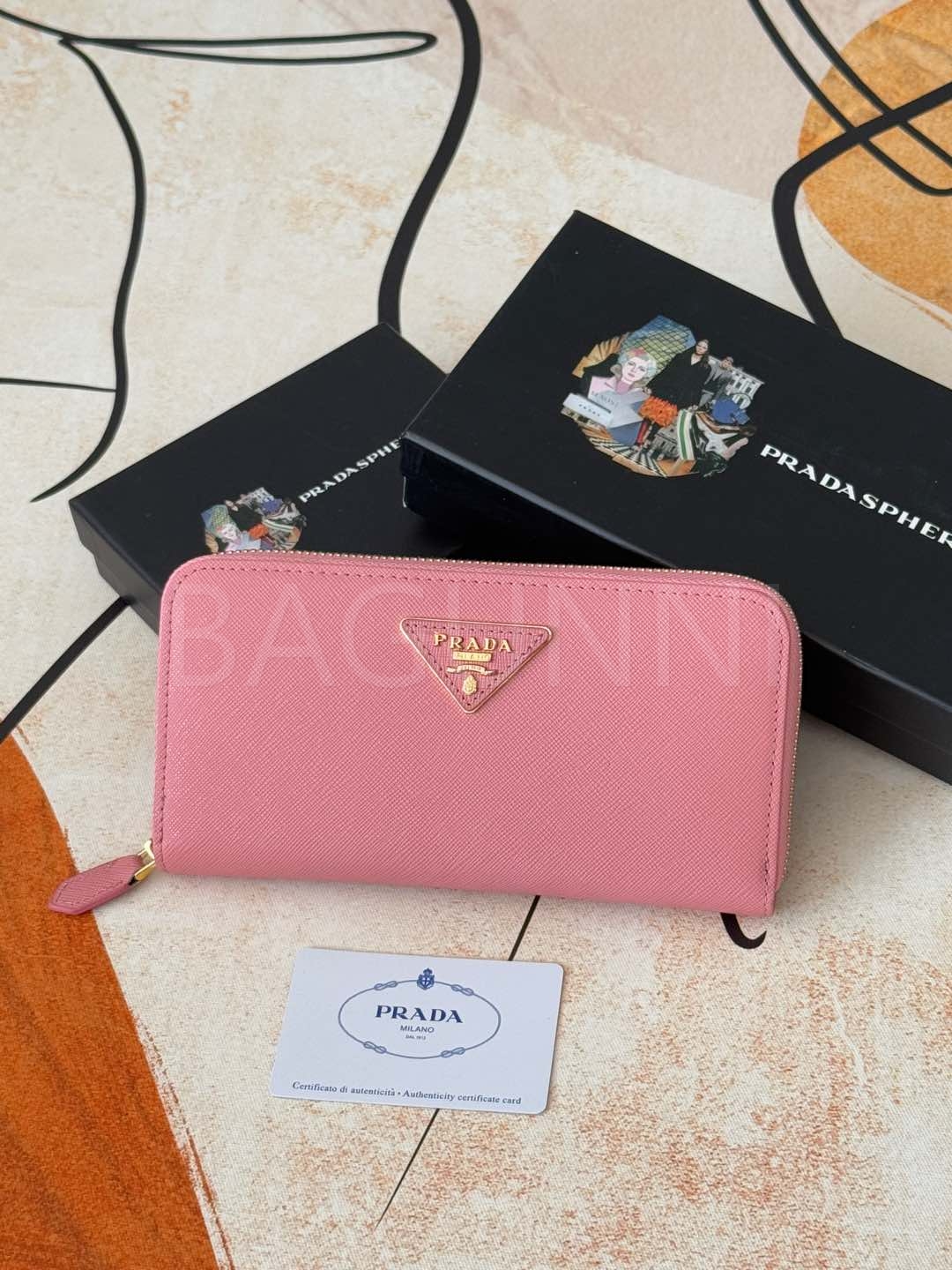 사피아노 질감이 깔끔하게 살아있는 프라다 사피아노 지퍼 장지갑입니다.