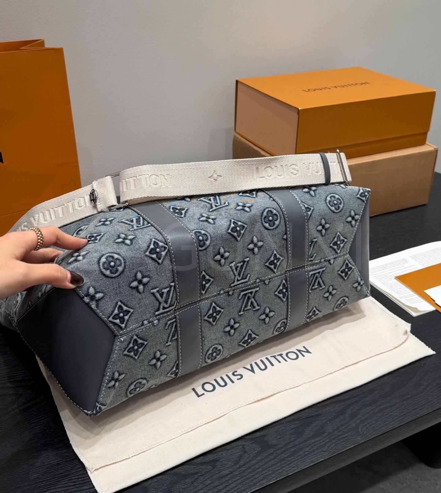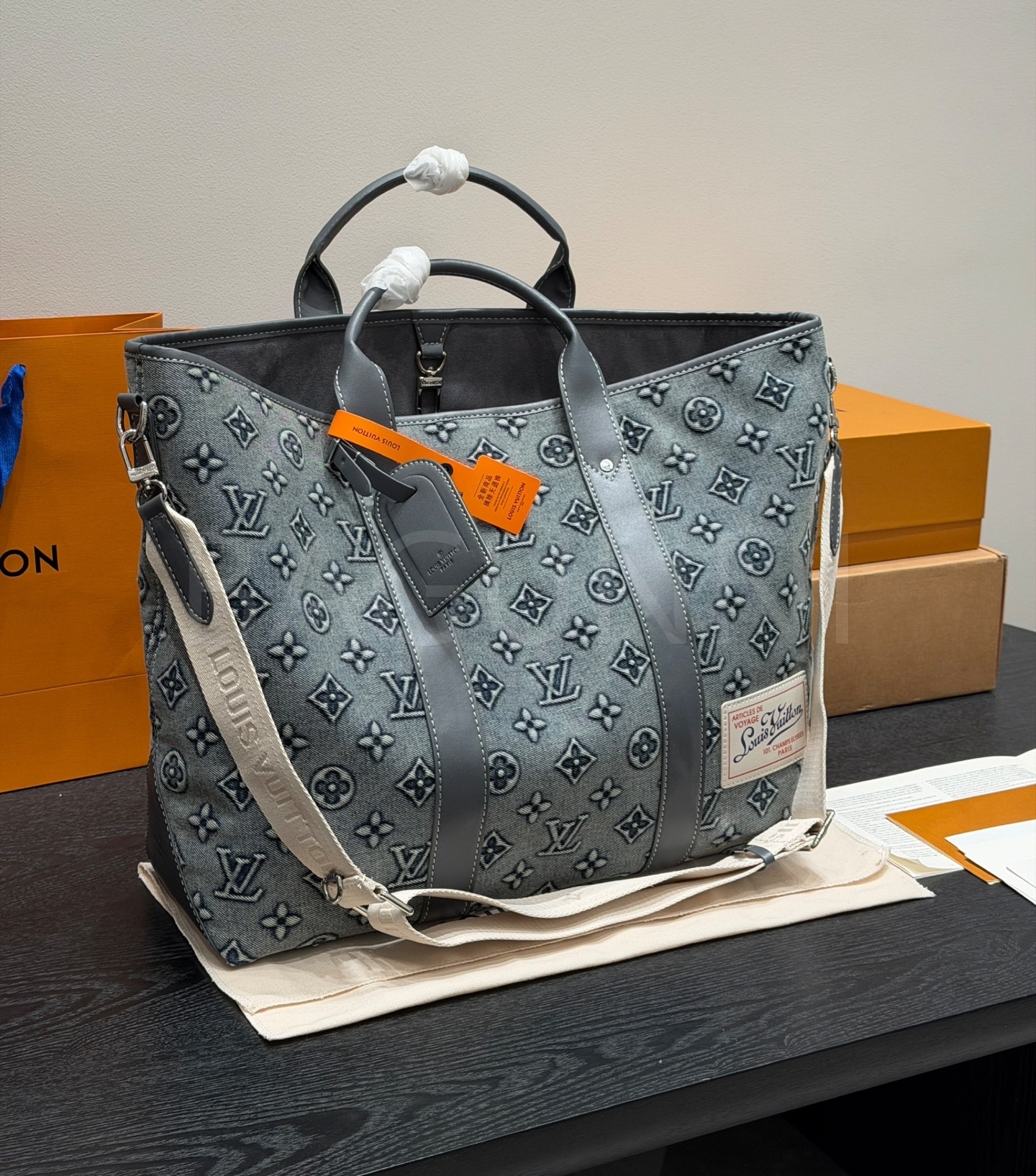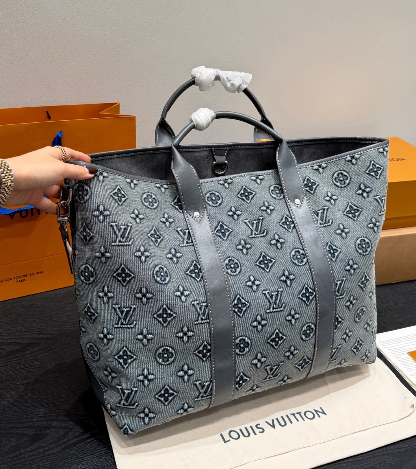 루이비통 데님 토트백은 빈티지한 무드를 담은 아이템입니다.