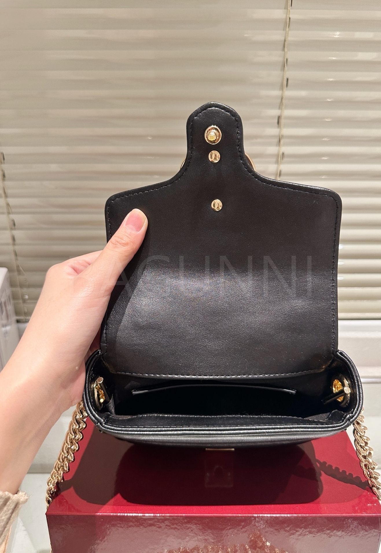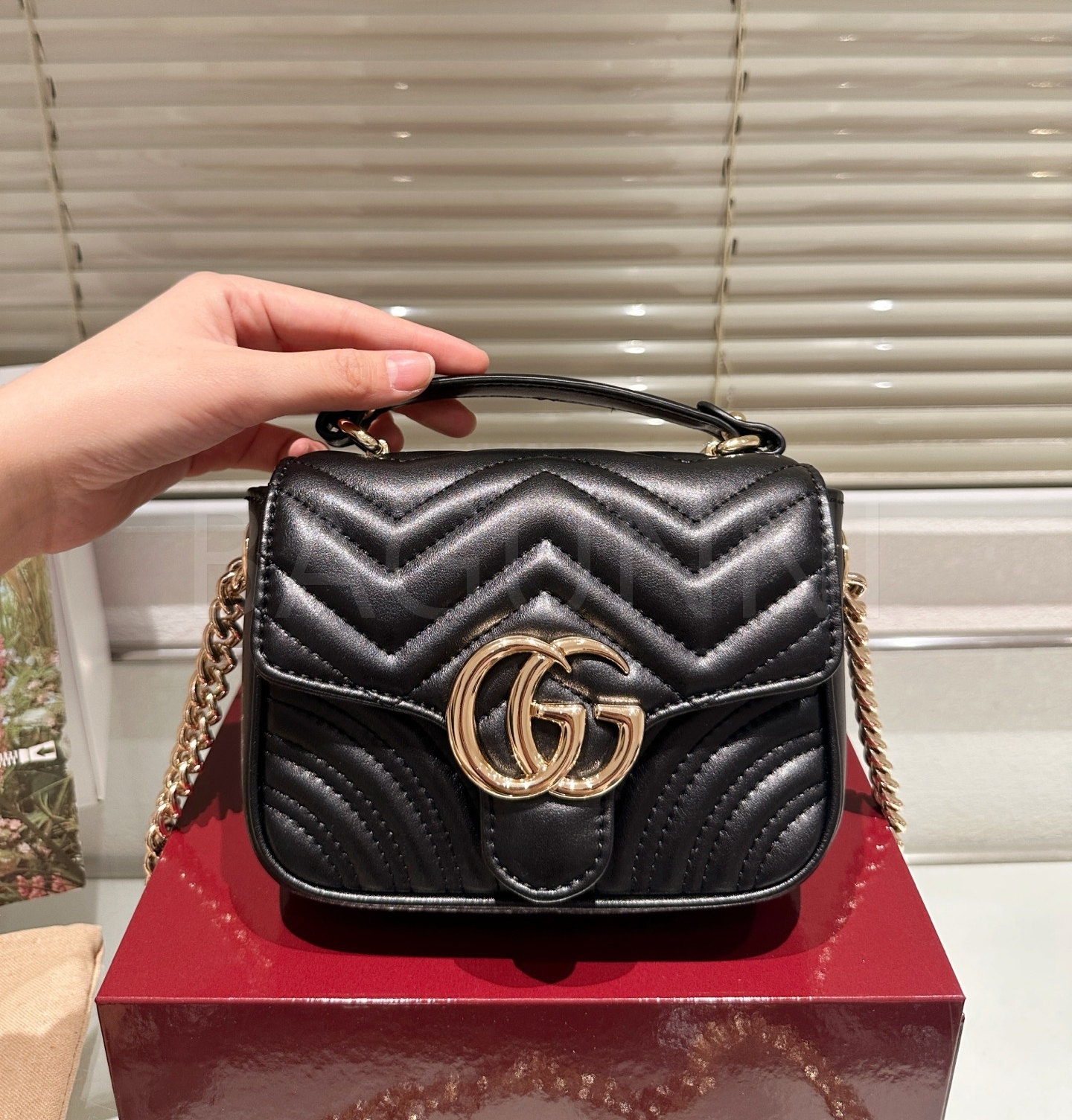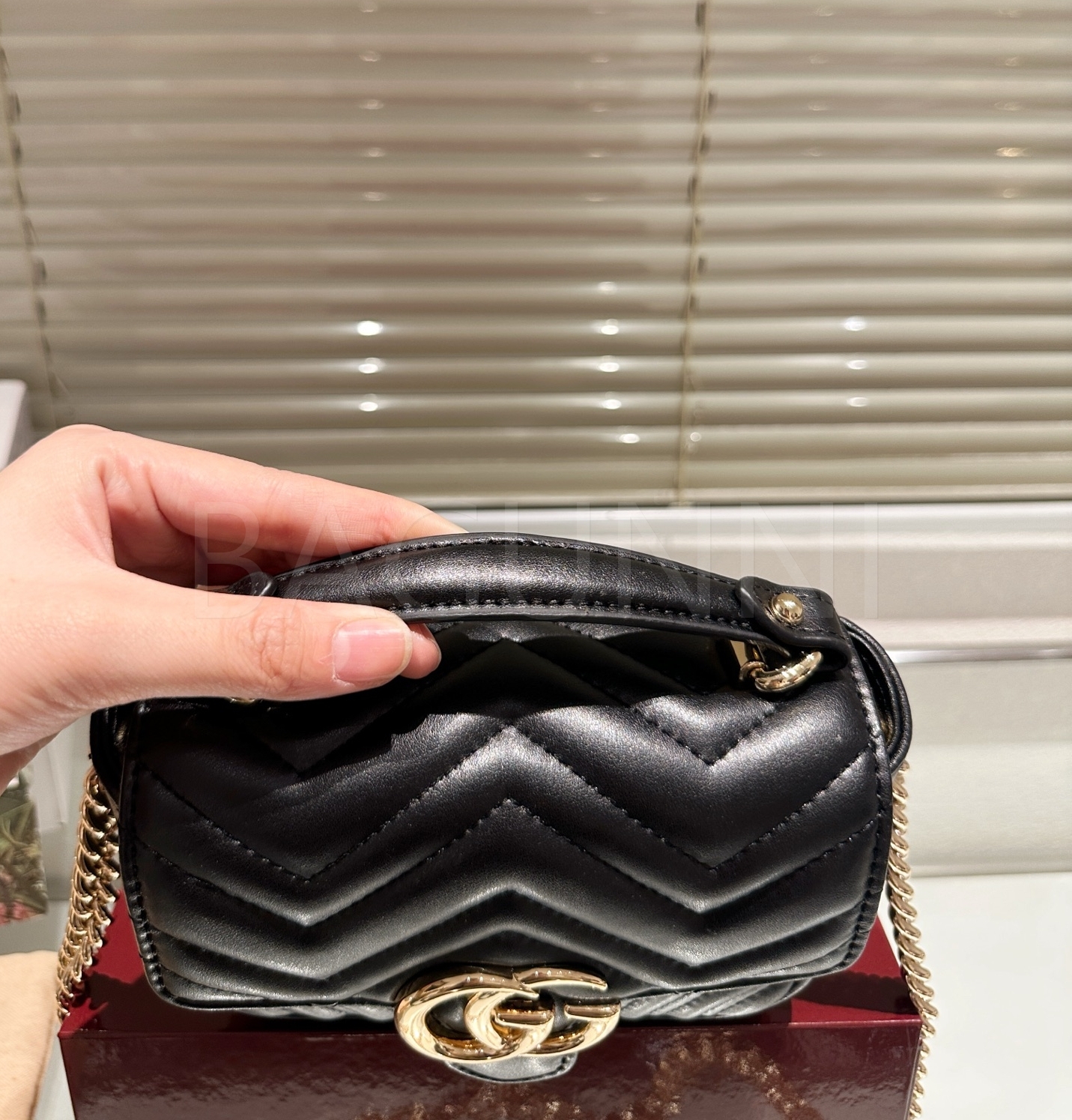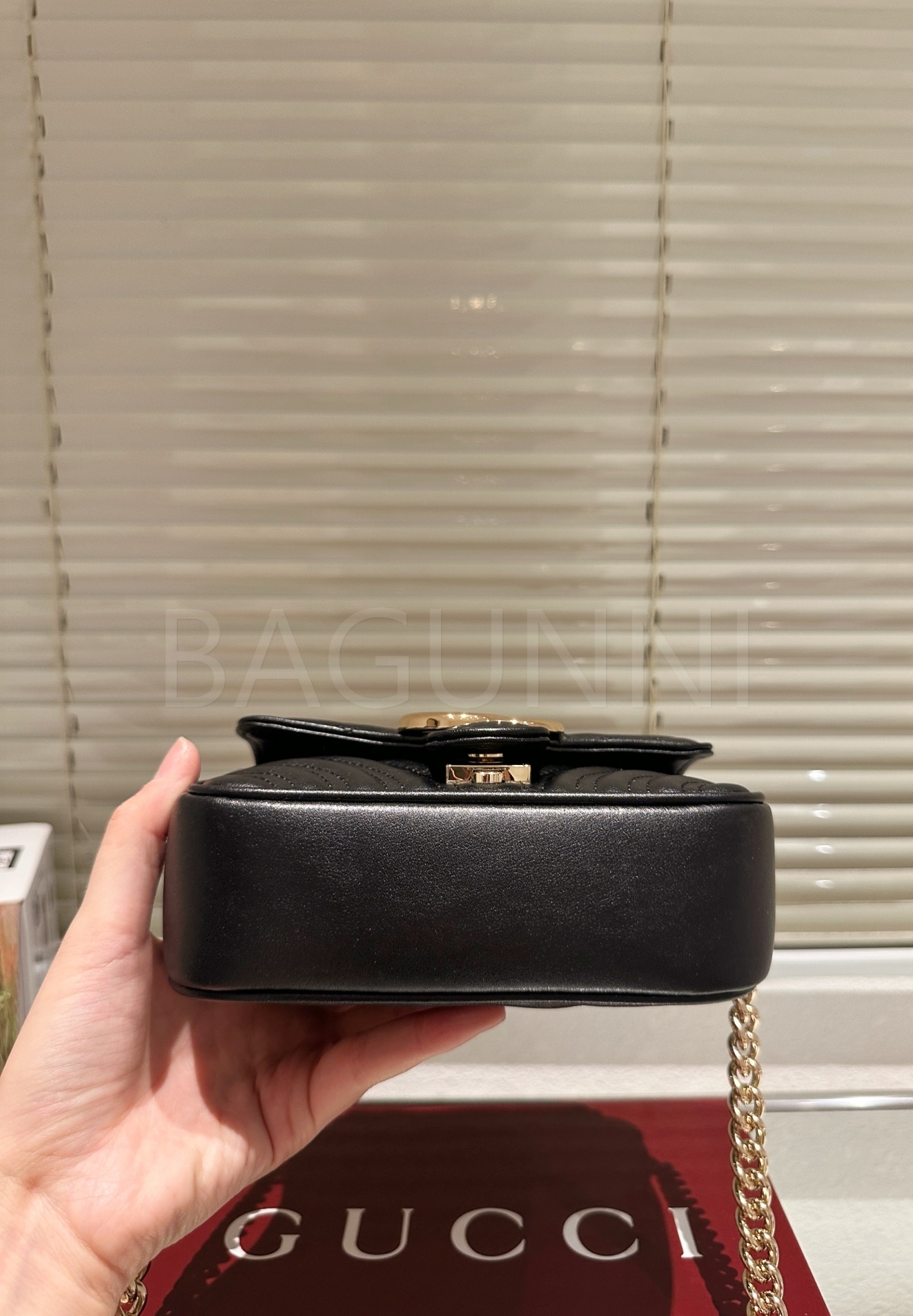 구찌 마몬트 숄더백입니다. 가죽 특유의 질감이 자연스럽게 살아 있으며 브랜드 특유의 분위기를 편하게 즐기기 좋습니다.