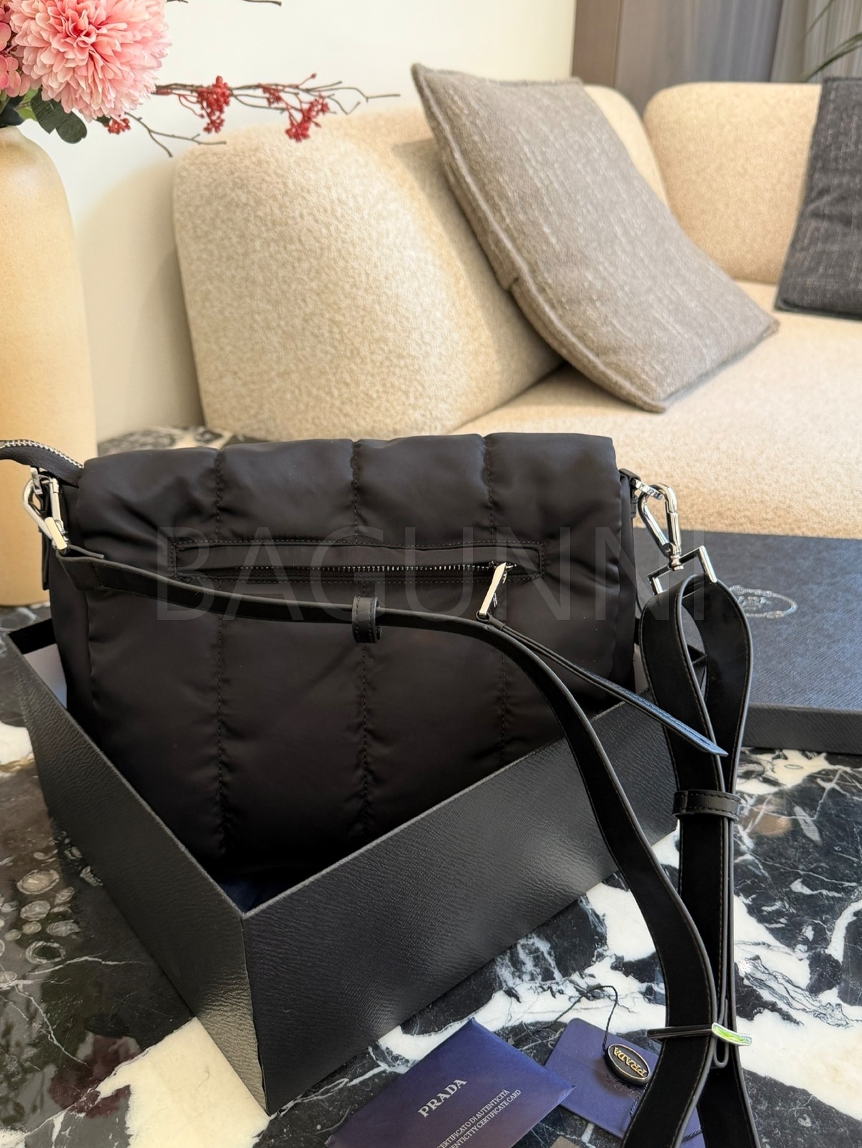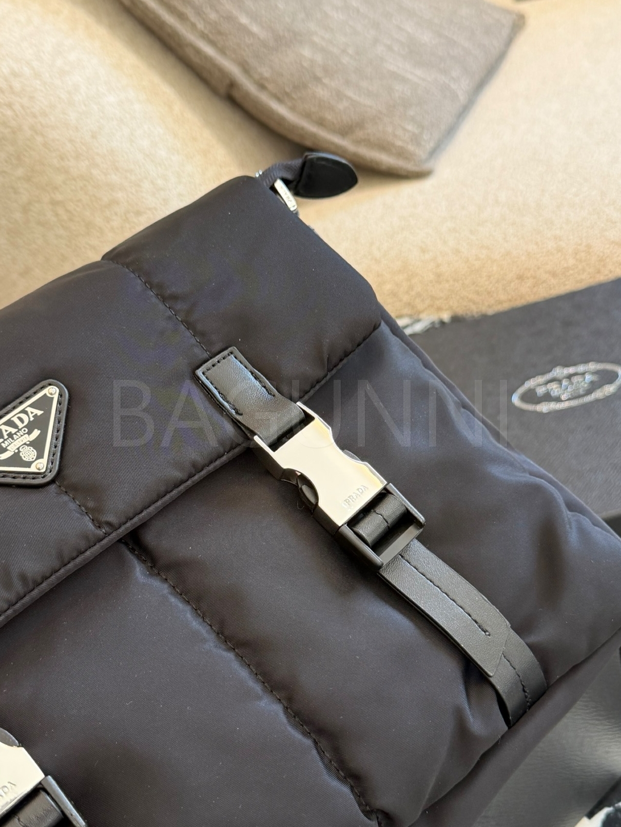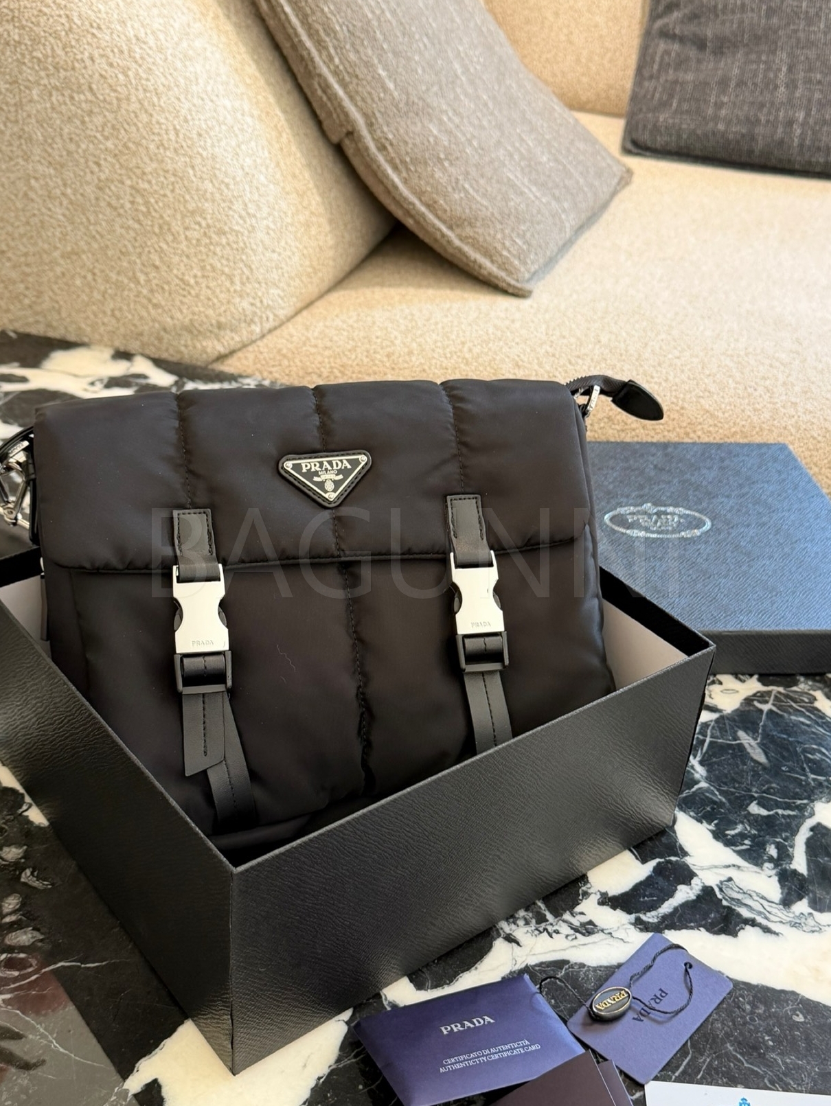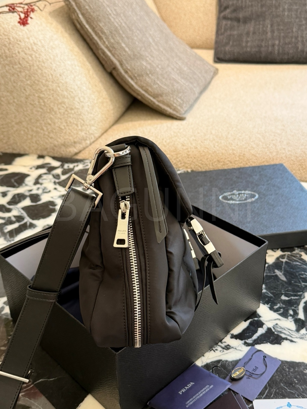 프라다 메신저백은 세련된 실루엣을 담은 아이템입니다.