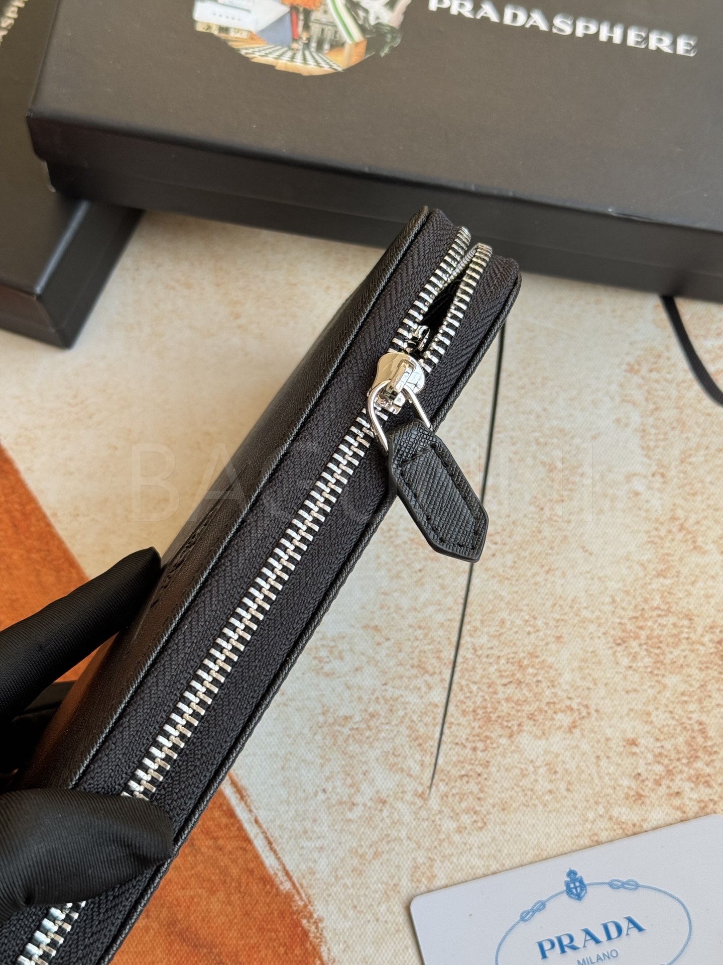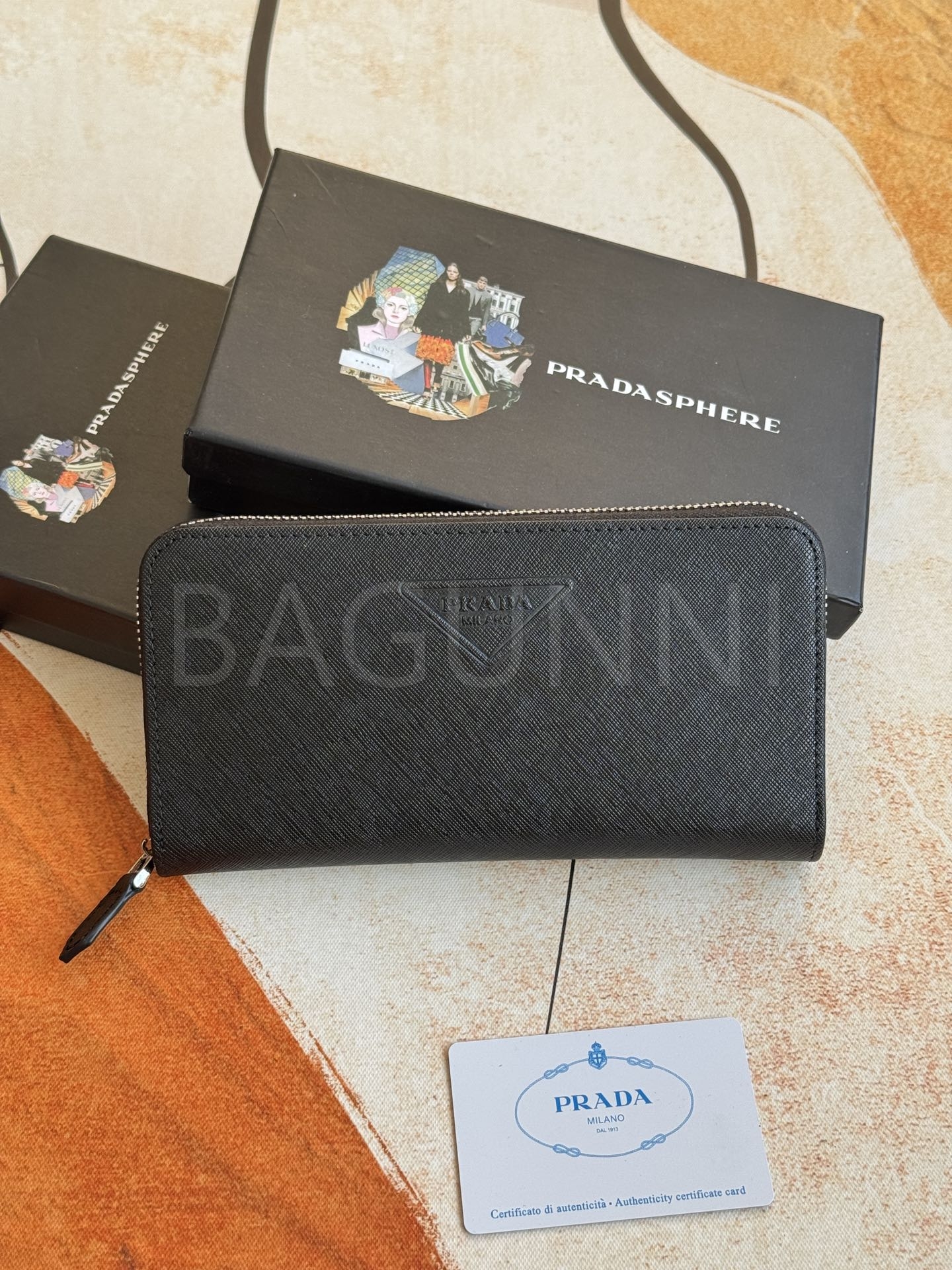 사피아노 질감이 깔끔하게 살아있는 프라다 사피아노 지퍼 장지갑입니다.