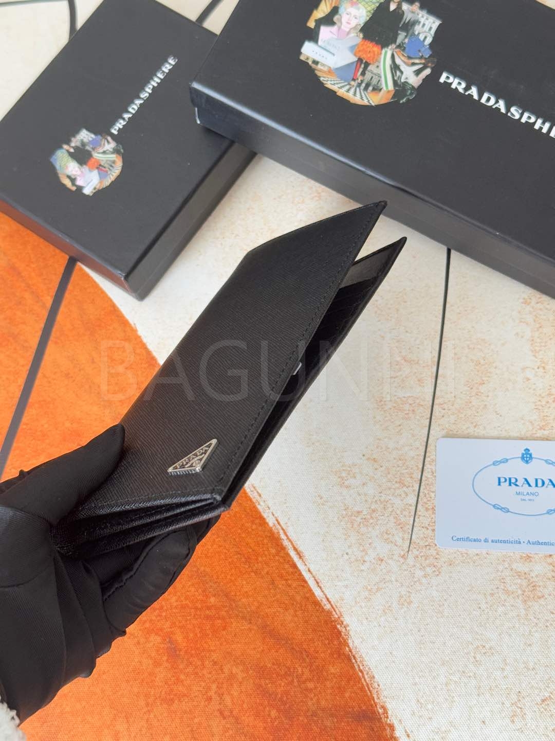 사피아노 질감이 깔끔하게 살아있는 프라다 사피아노 장지갑입니다.