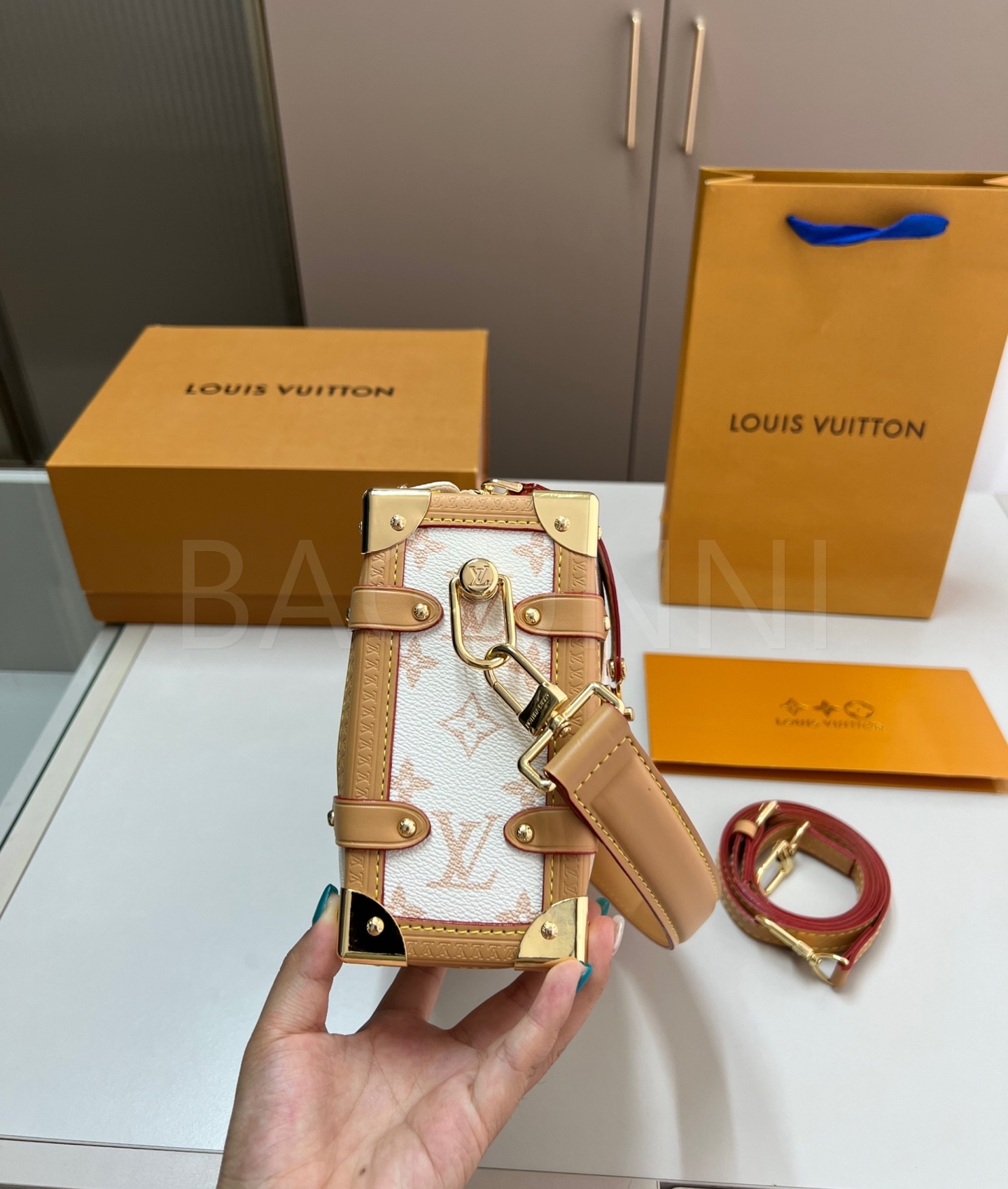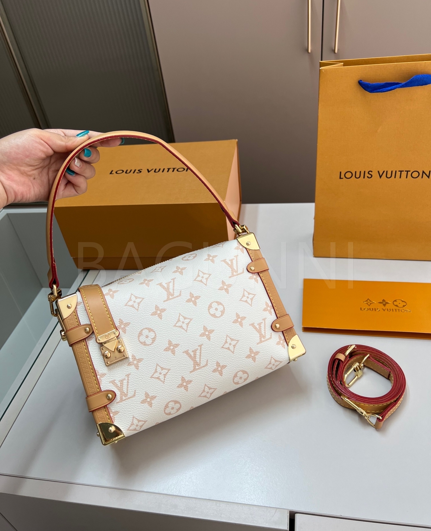 루이비통 특유의 세련된 분위기가 돋보이는 루이비통 사이드 트렁크입니다.