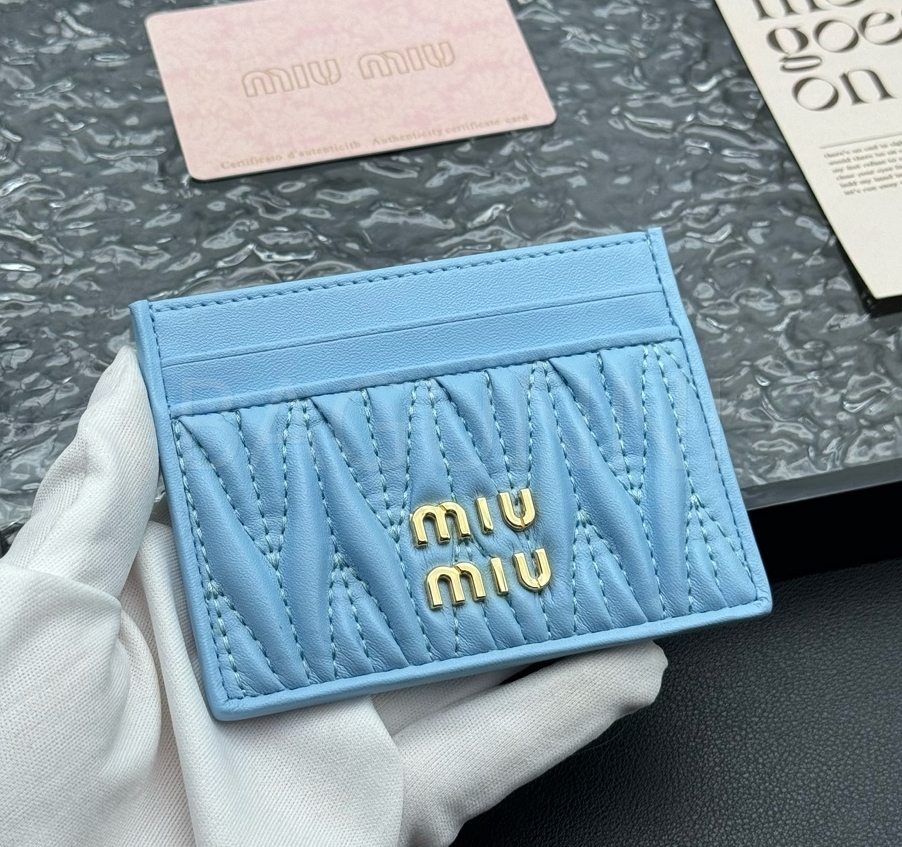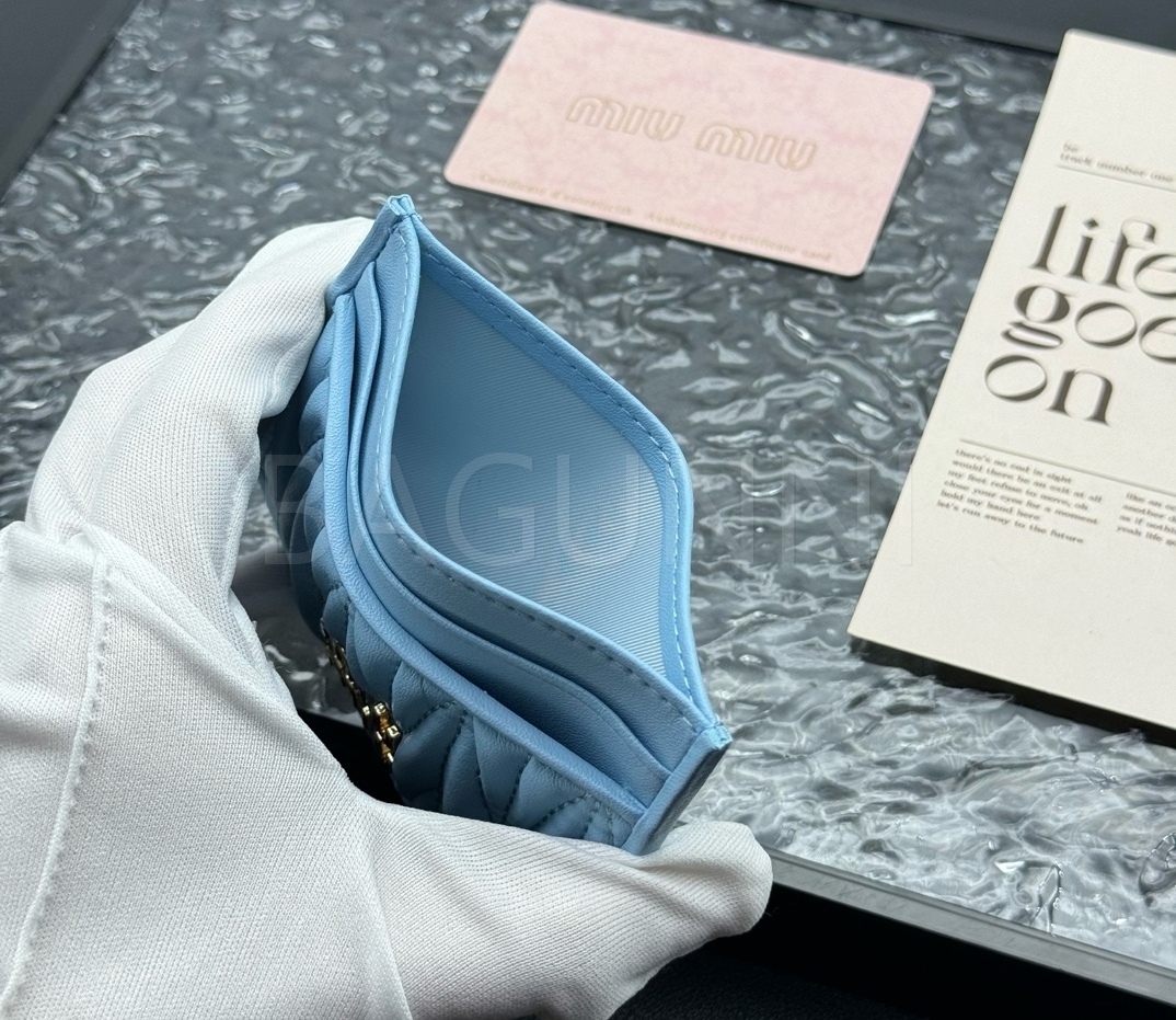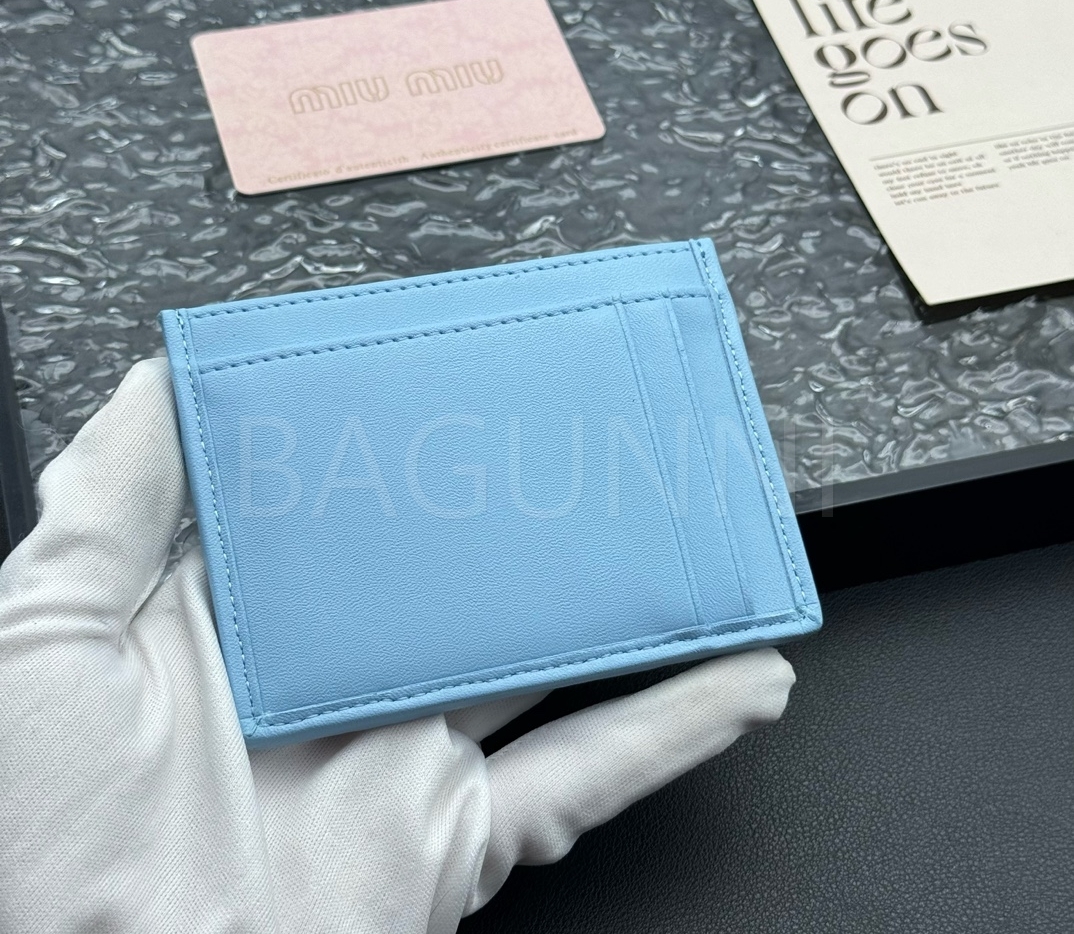 카프스킨의 질감이 돋보이는 미우미우 마테라쎄 카드지갑입니다.