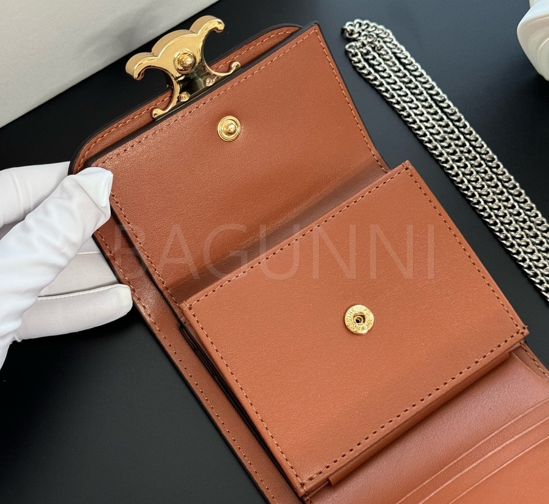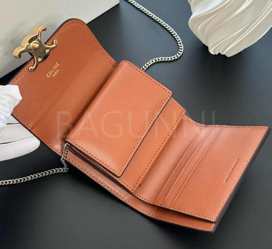 카프스킨의 질감이 돋보이는 셀린느 트리폴드 반지갑입니다.