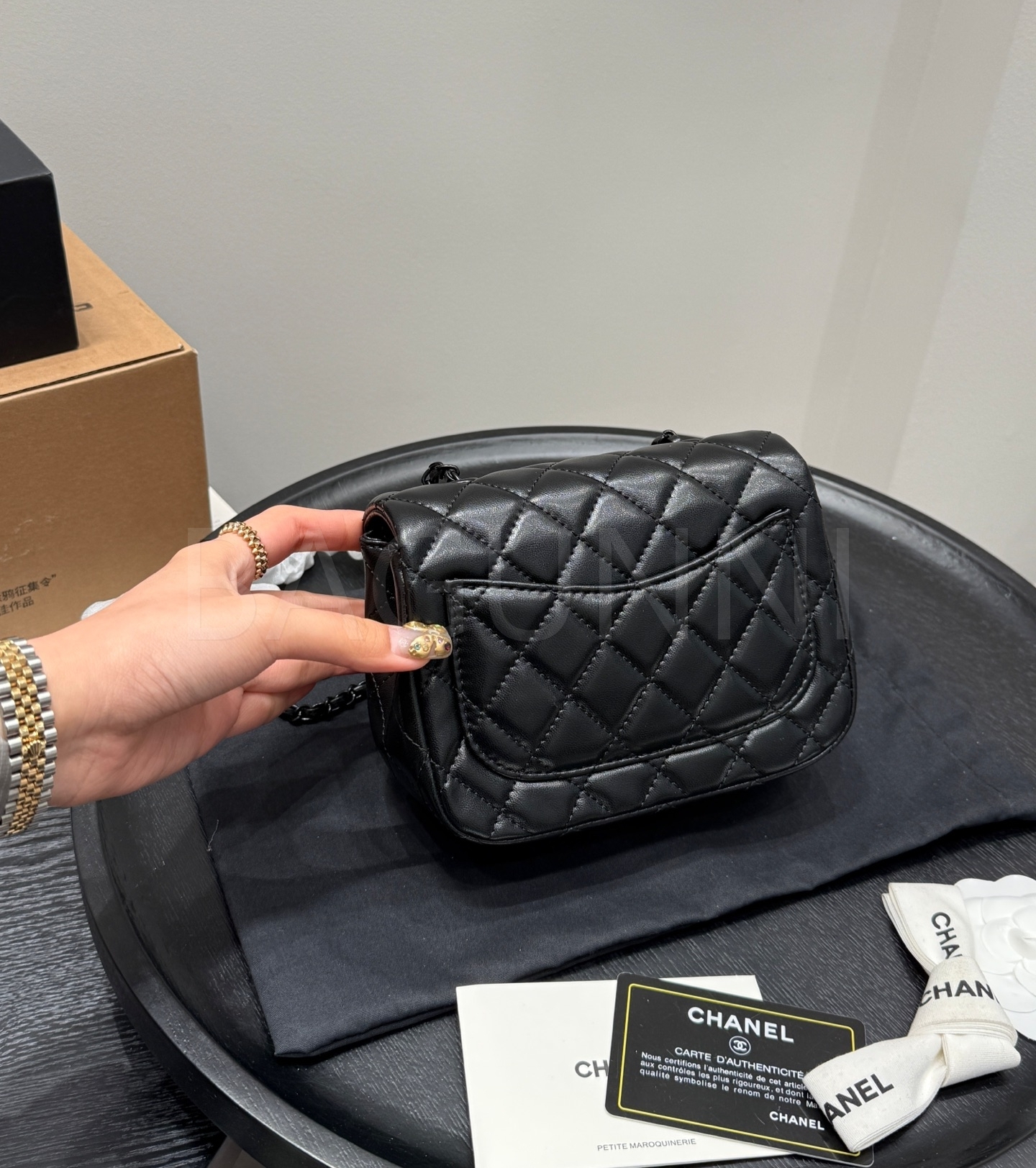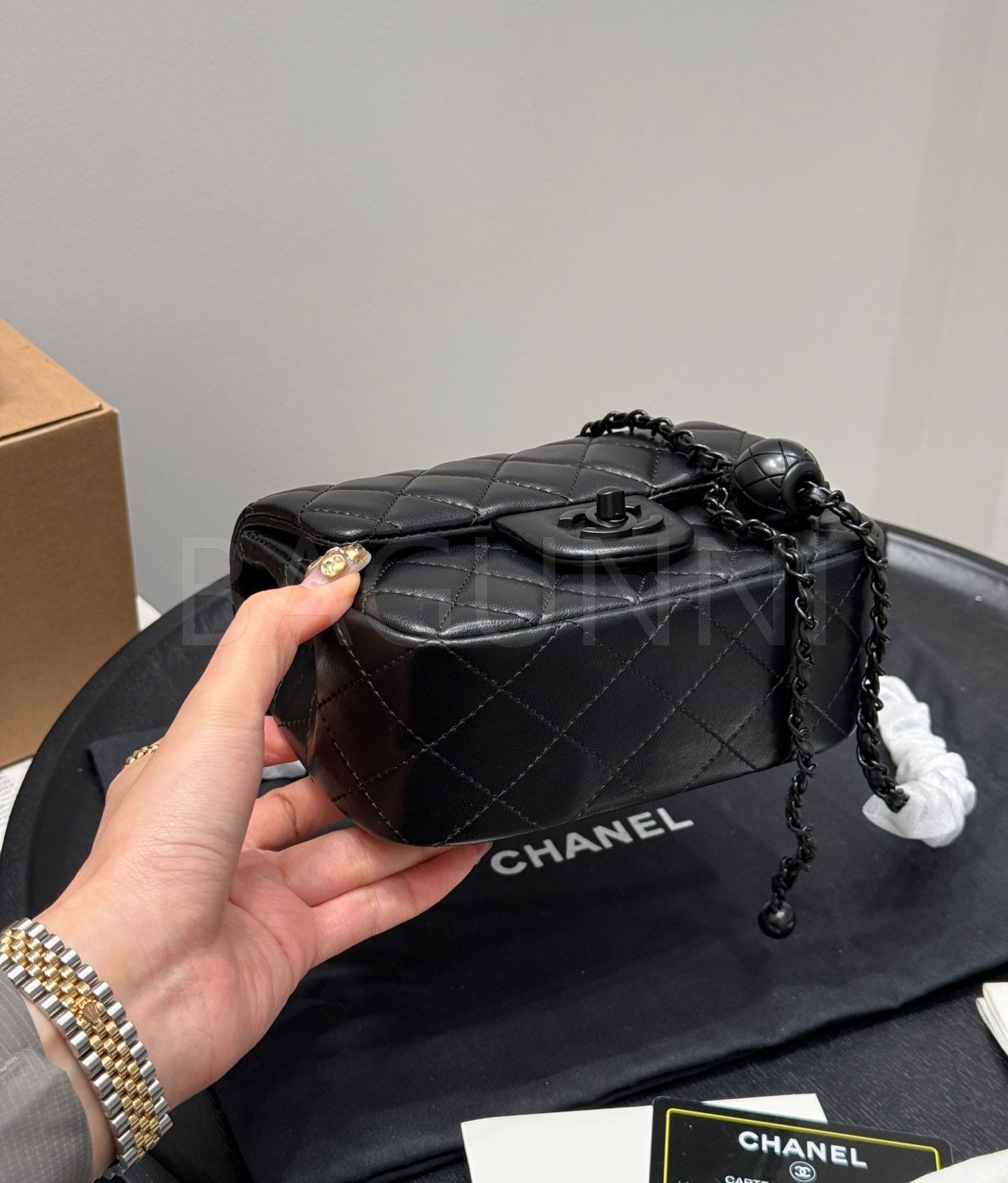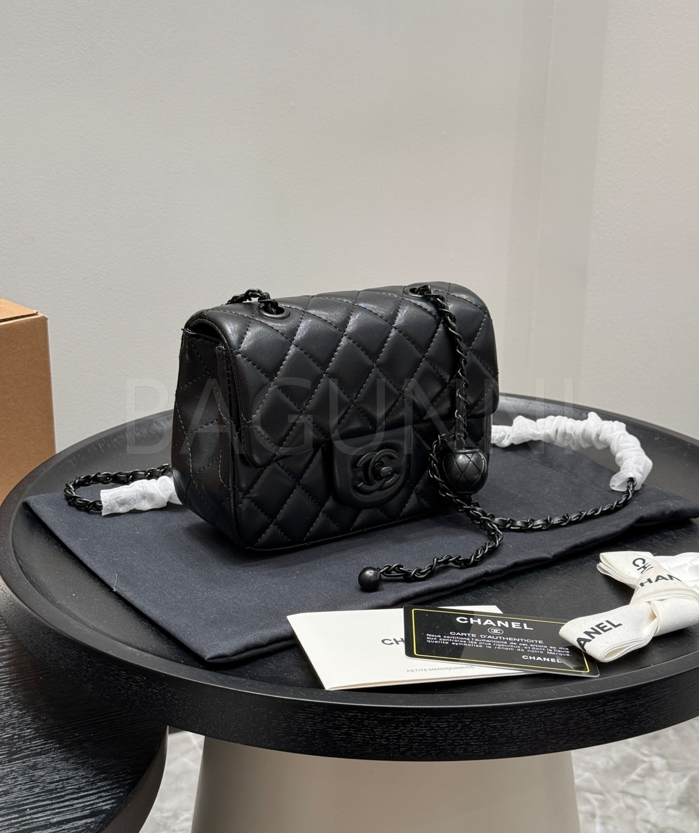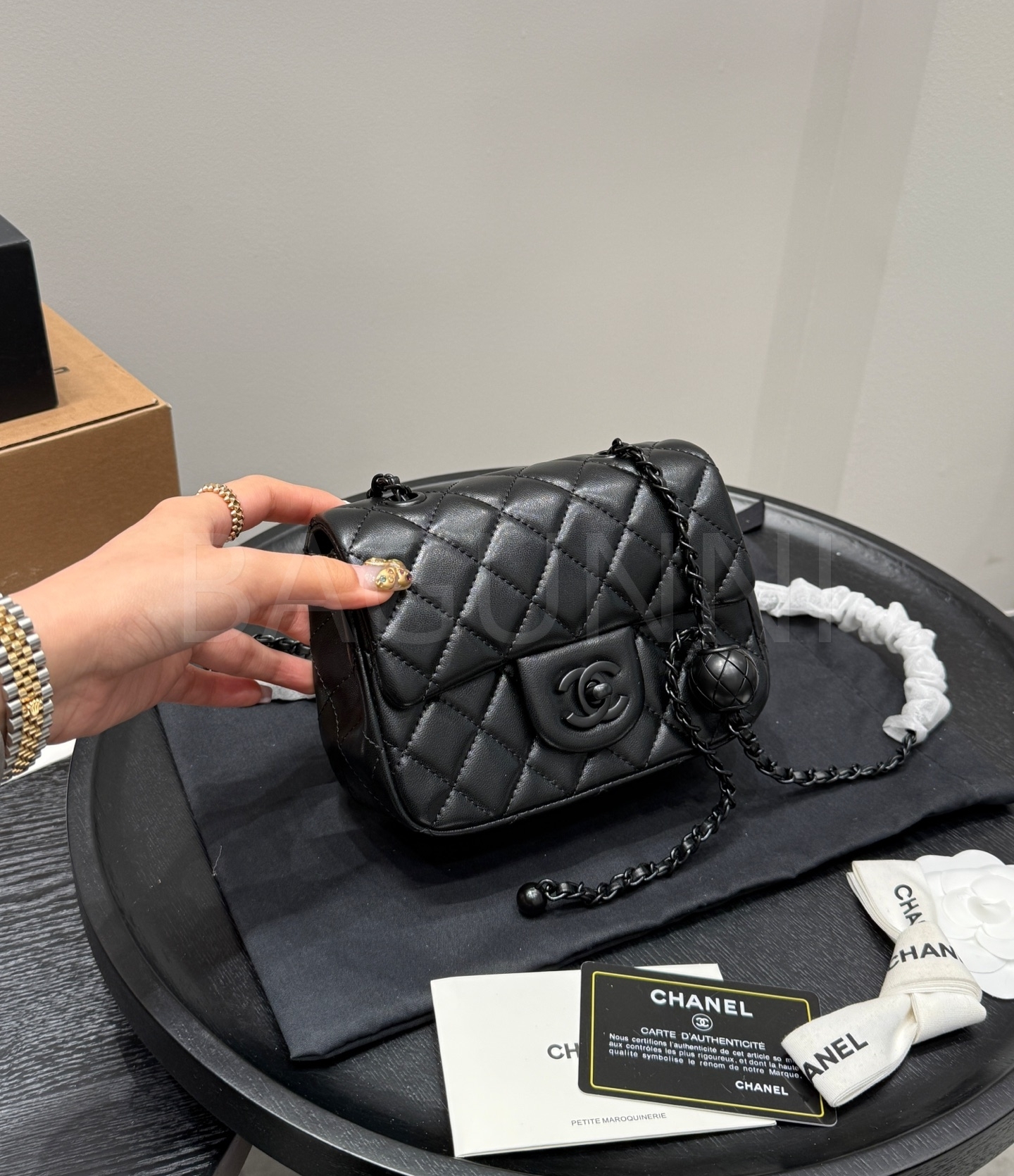 램스킨 특유의 매력이 돋보이는 샤넬 금볼 스퀘어 플랩 백입니다.