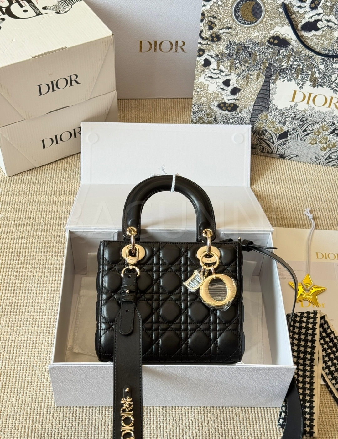 디올 레이디 디올 토트백입니다. 램스킨 특유의 질감이 자연스럽게 살아 있으며 브랜드 특유의 분위기를 편하게 즐기기 좋습니다.