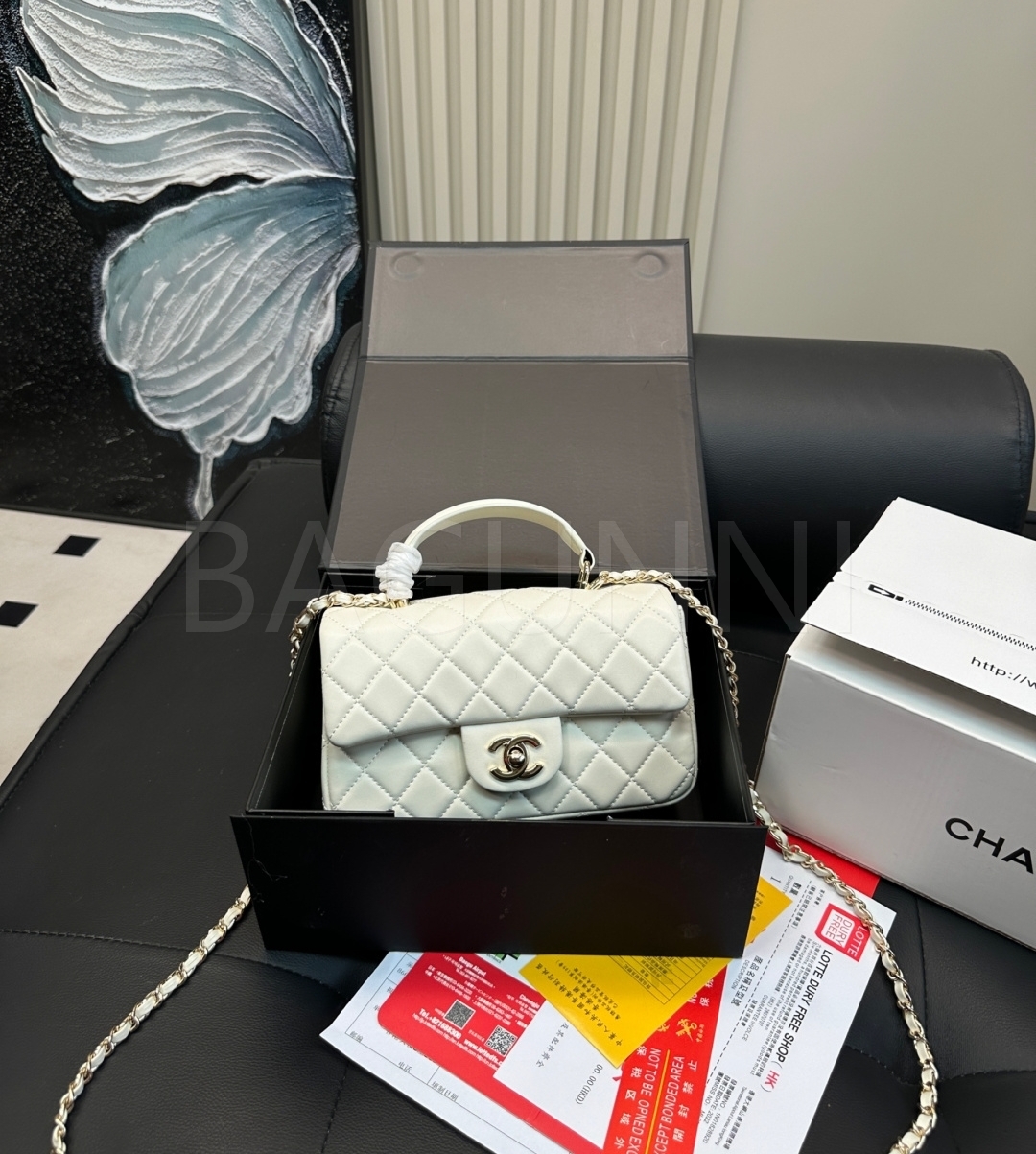 세련된 무드가 돋보이는 샤넬 탑핸들 스퀘어 플랩 백입니다.