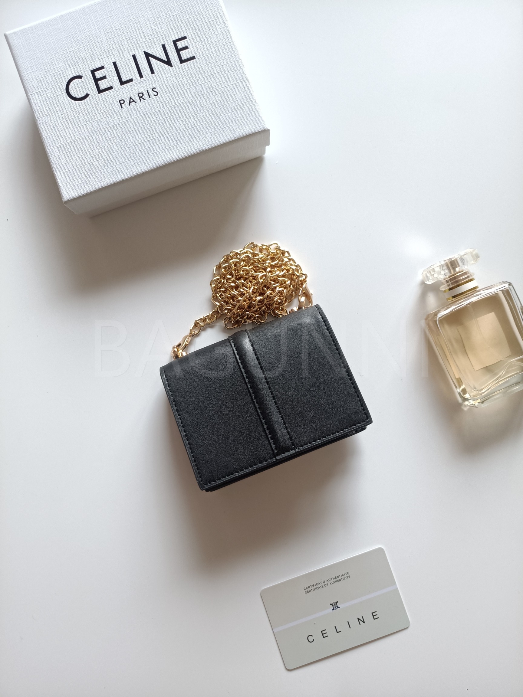 셀린느 특유의 무드가 자연스럽게 살아있는 트리옹프 플랩 카드지갑입니다.