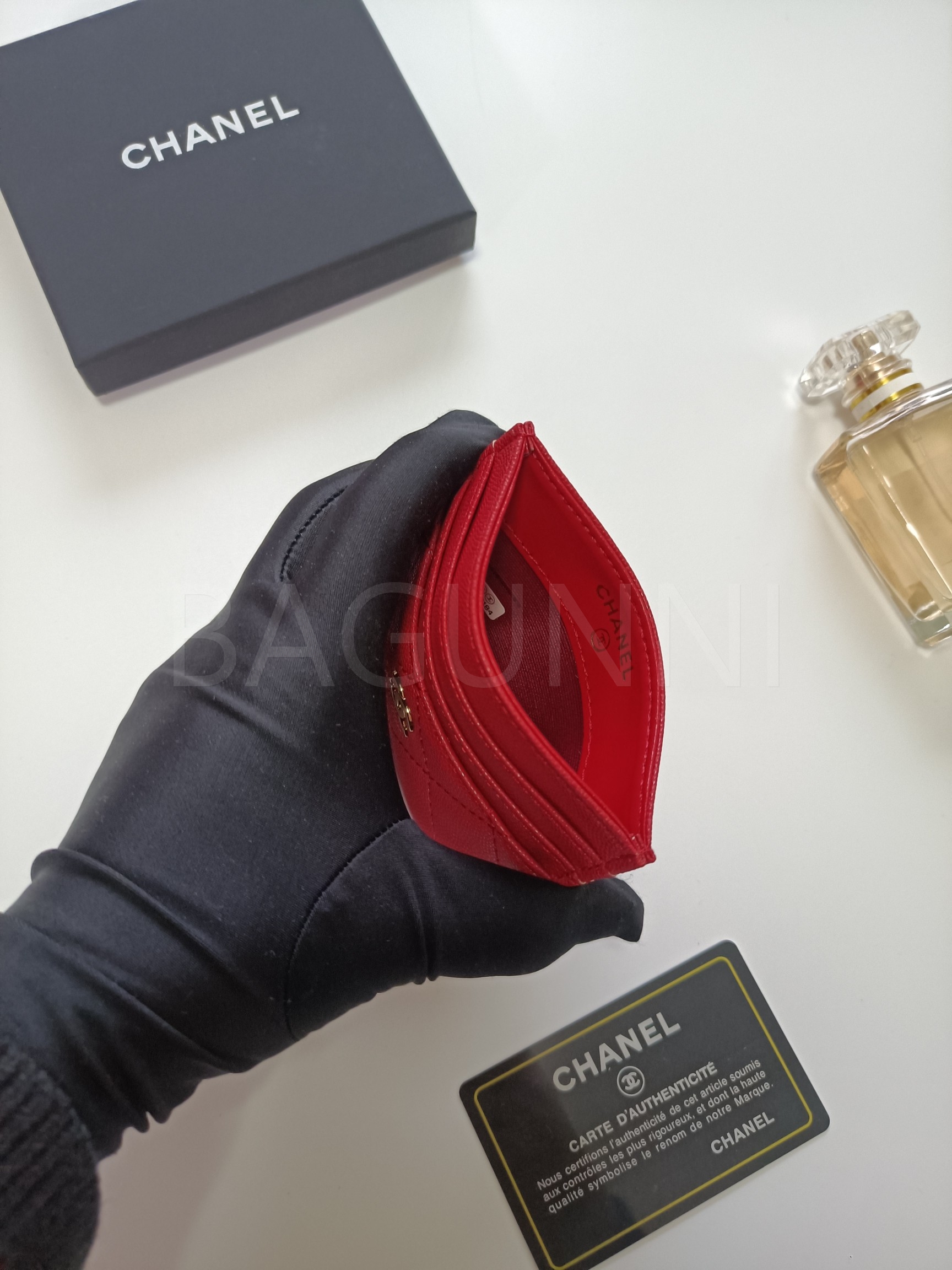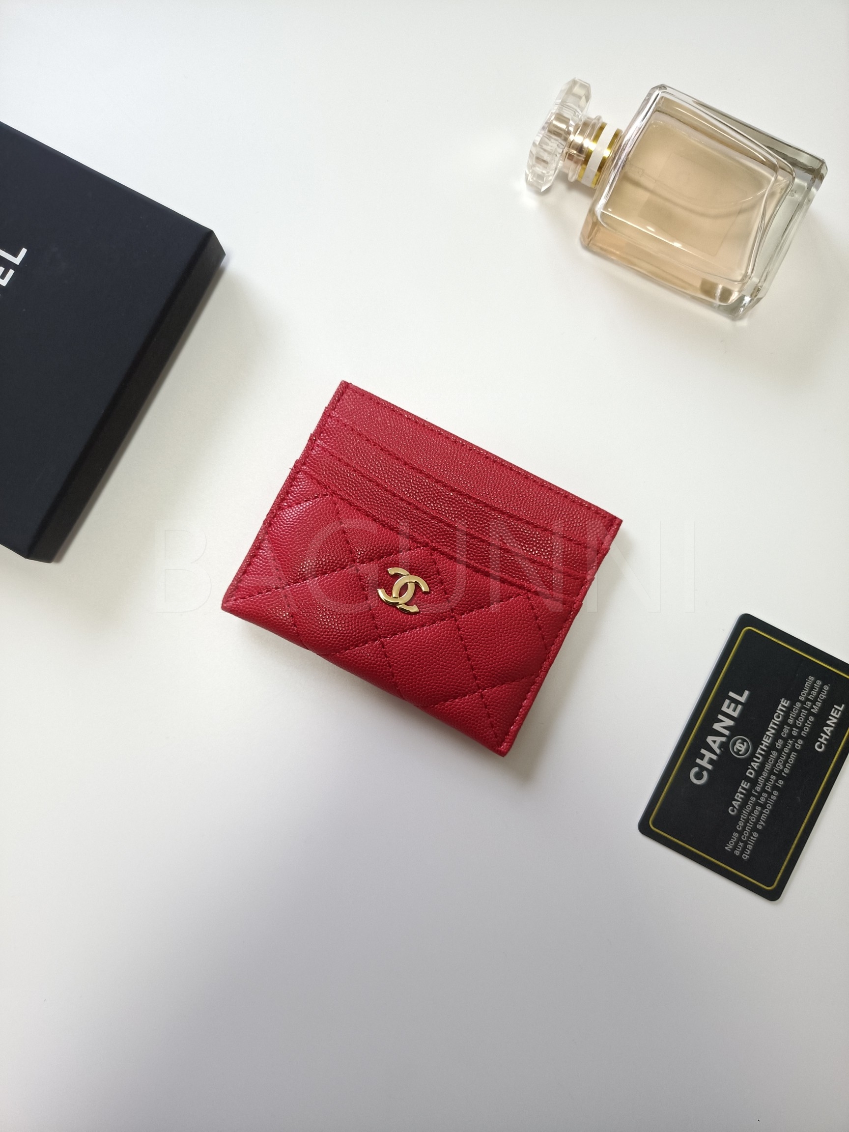 램스킨의 질감이 돋보이는 샤넬 클래식 플랩 카드지갑입니다.
