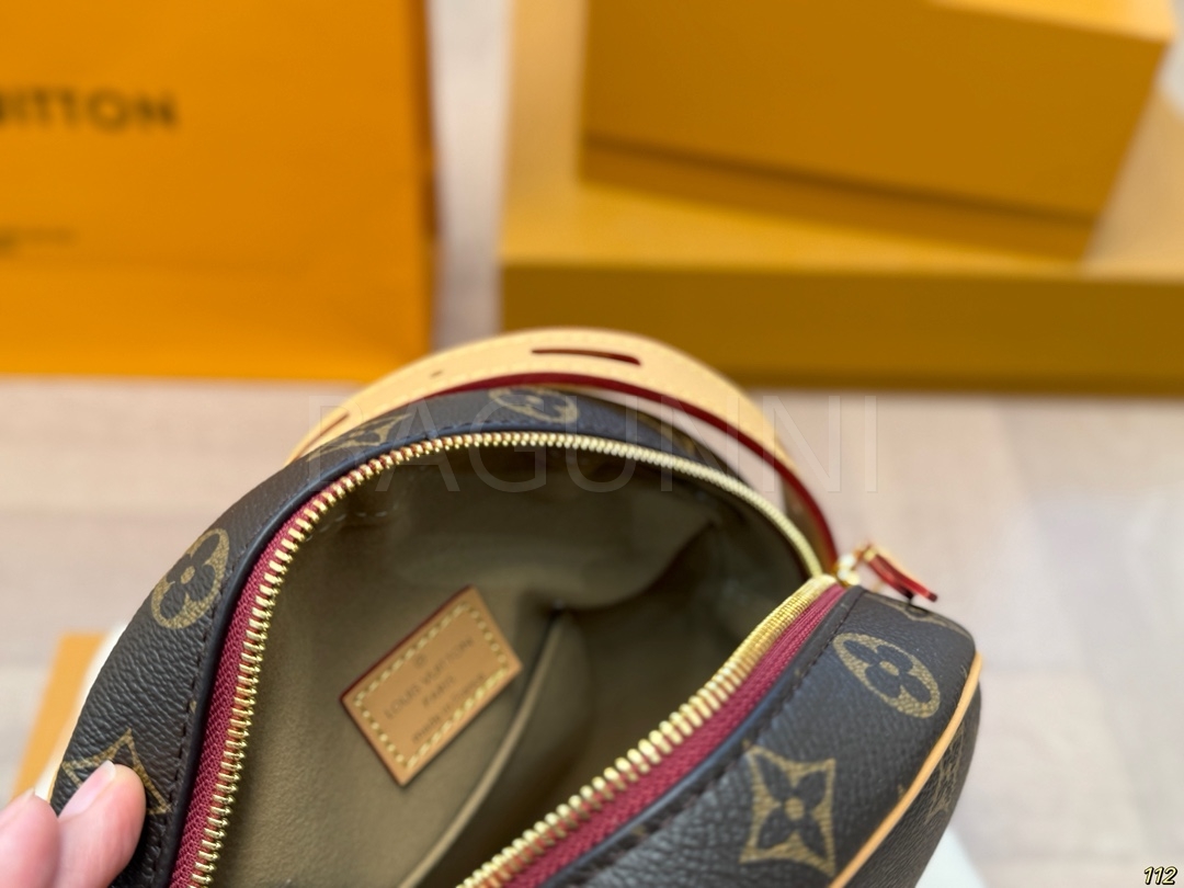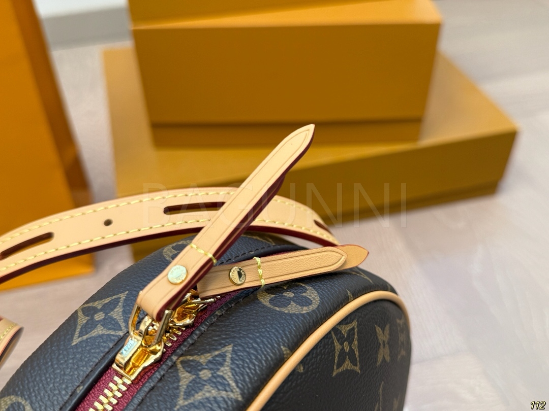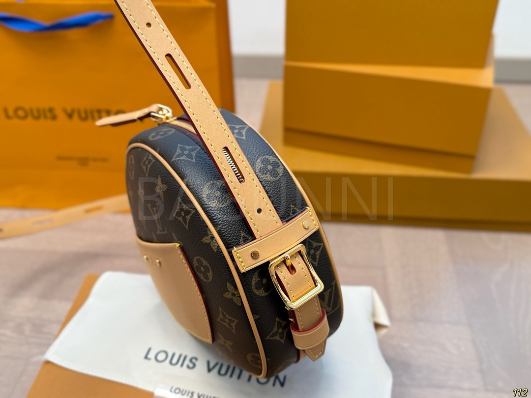 클래식한 캔버스 무드가 돋보이는 루이비통 원형 숄더백입니다.