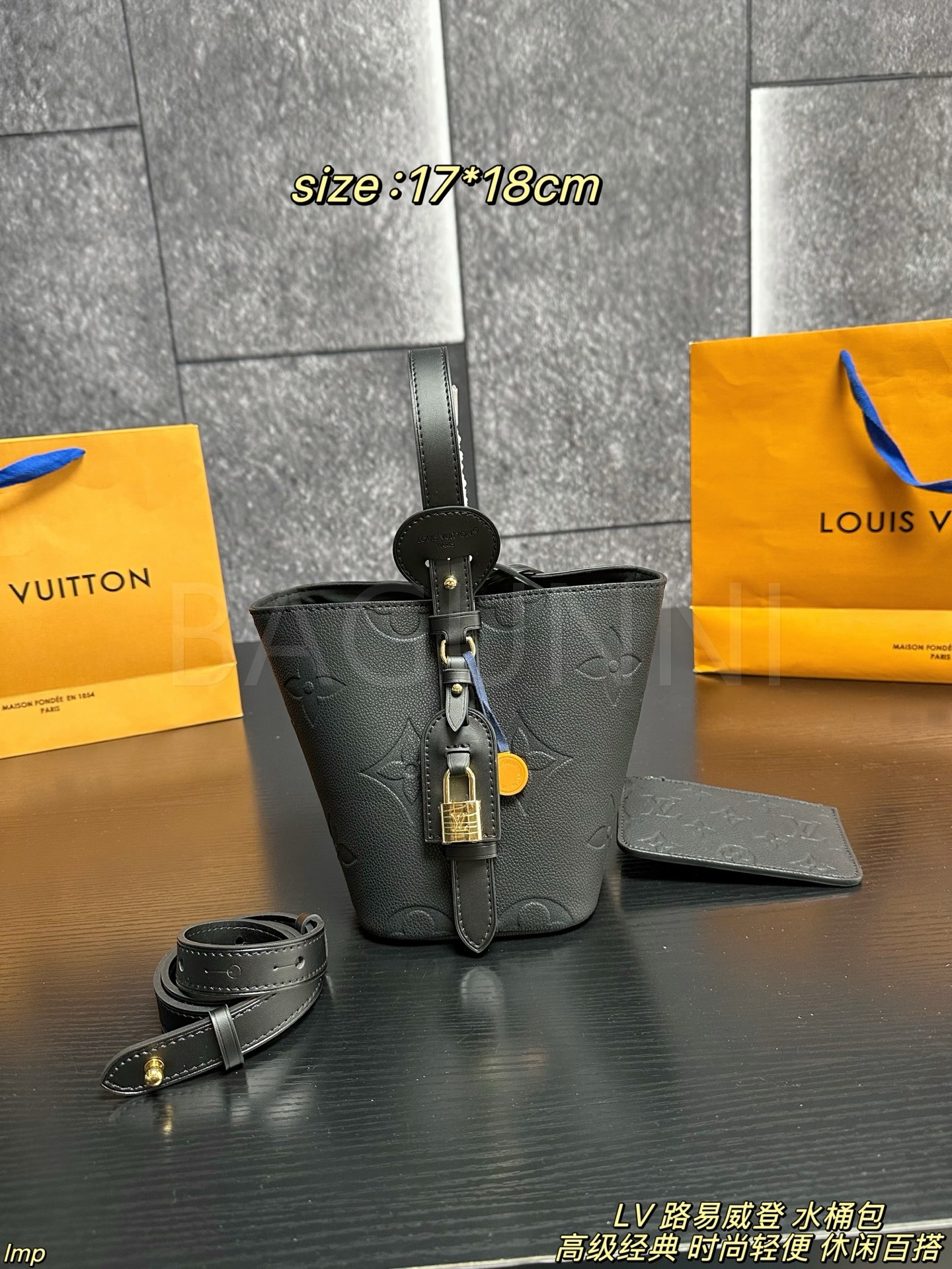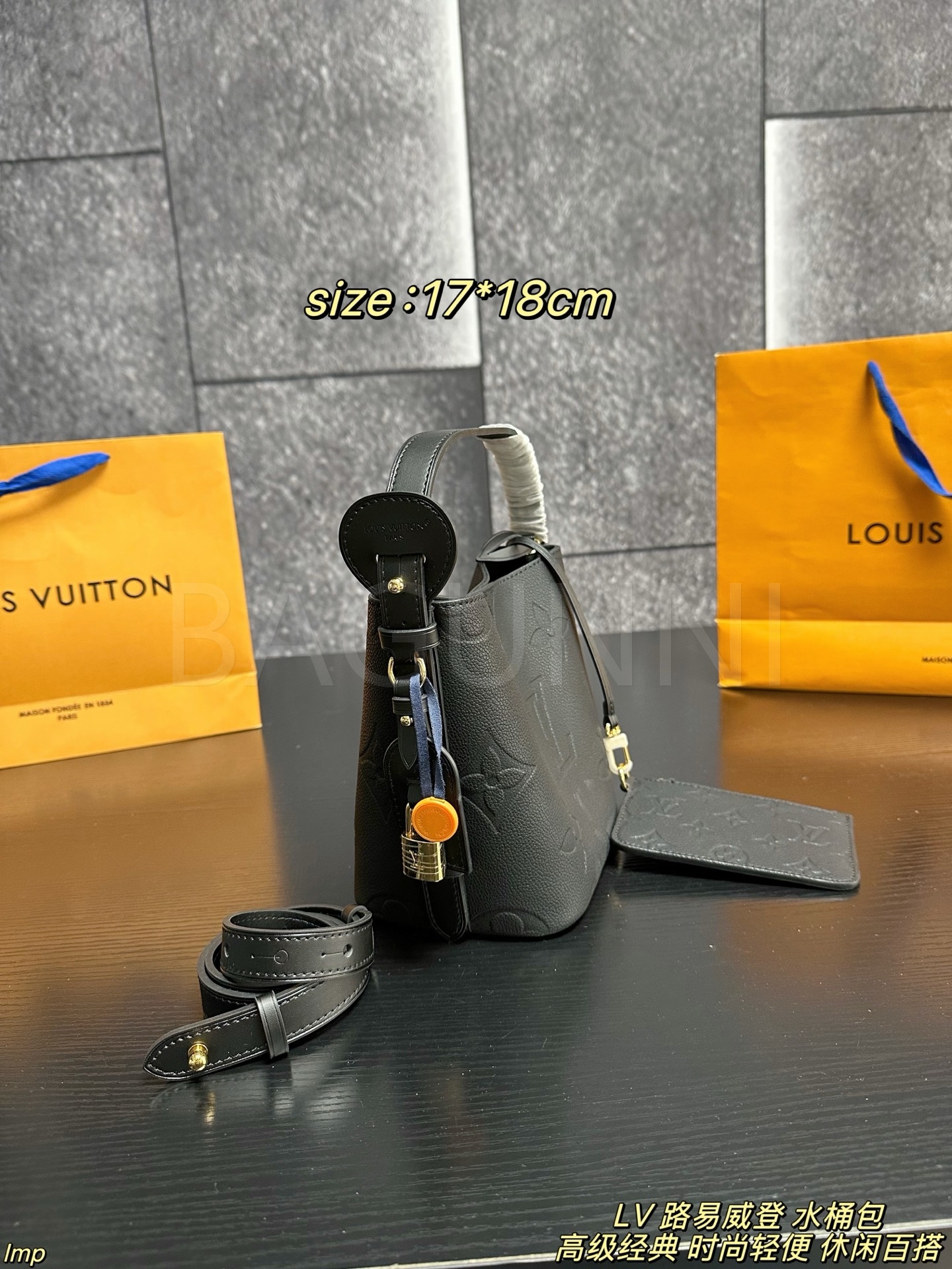 클래식한 캔버스 무드가 돋보이는 루이비통 노에 버킷 백입니다.