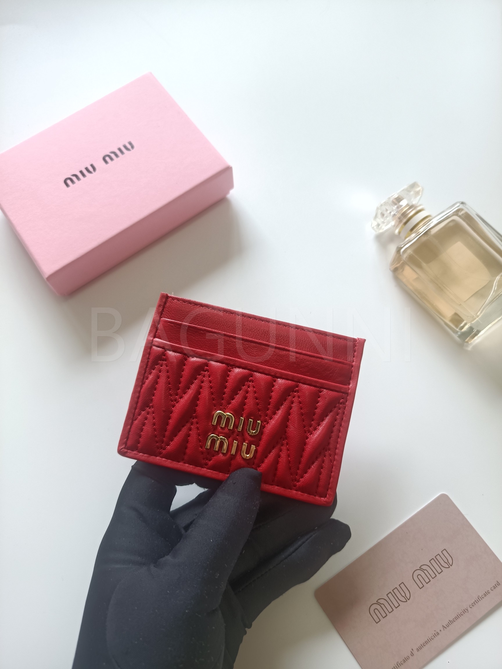 마테라쎄 가죽의 질감이 돋보이는 미우미우 마테라쎄 카드지갑입니다.