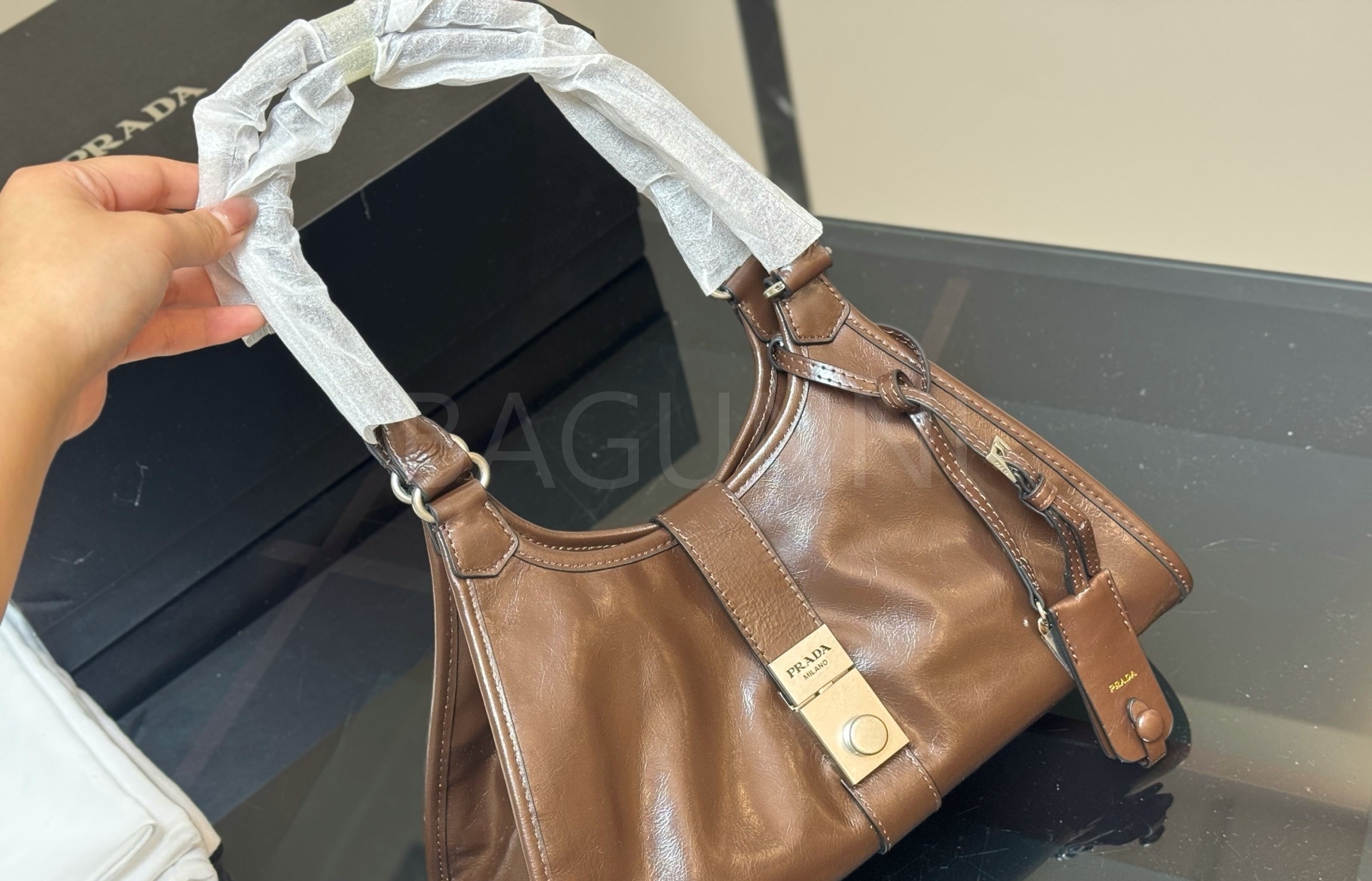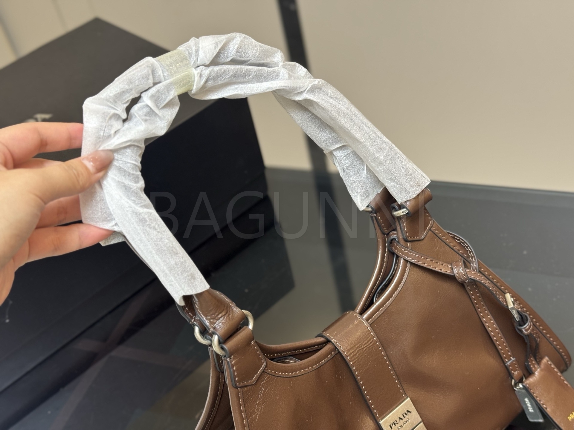 프라다 호보 백은 세련된 실루엣을 담은 아이템입니다.