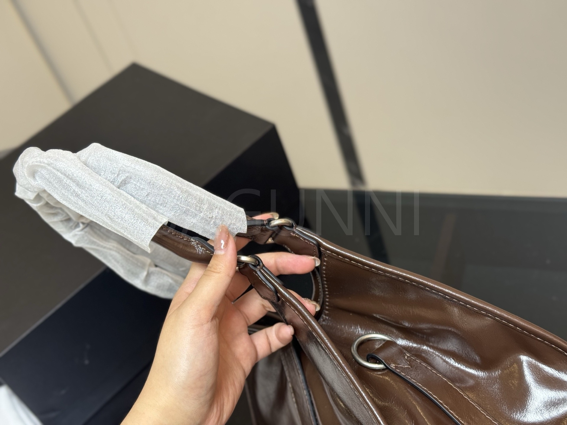 - 가죽 제품의 경우 소재 특성상 자연스러운 주름, 눌림, 스크래치 등이 발생할 수 있으며, 이는 사용 과정에서도 나타나는 부분으로 불량이 아닙니다.
