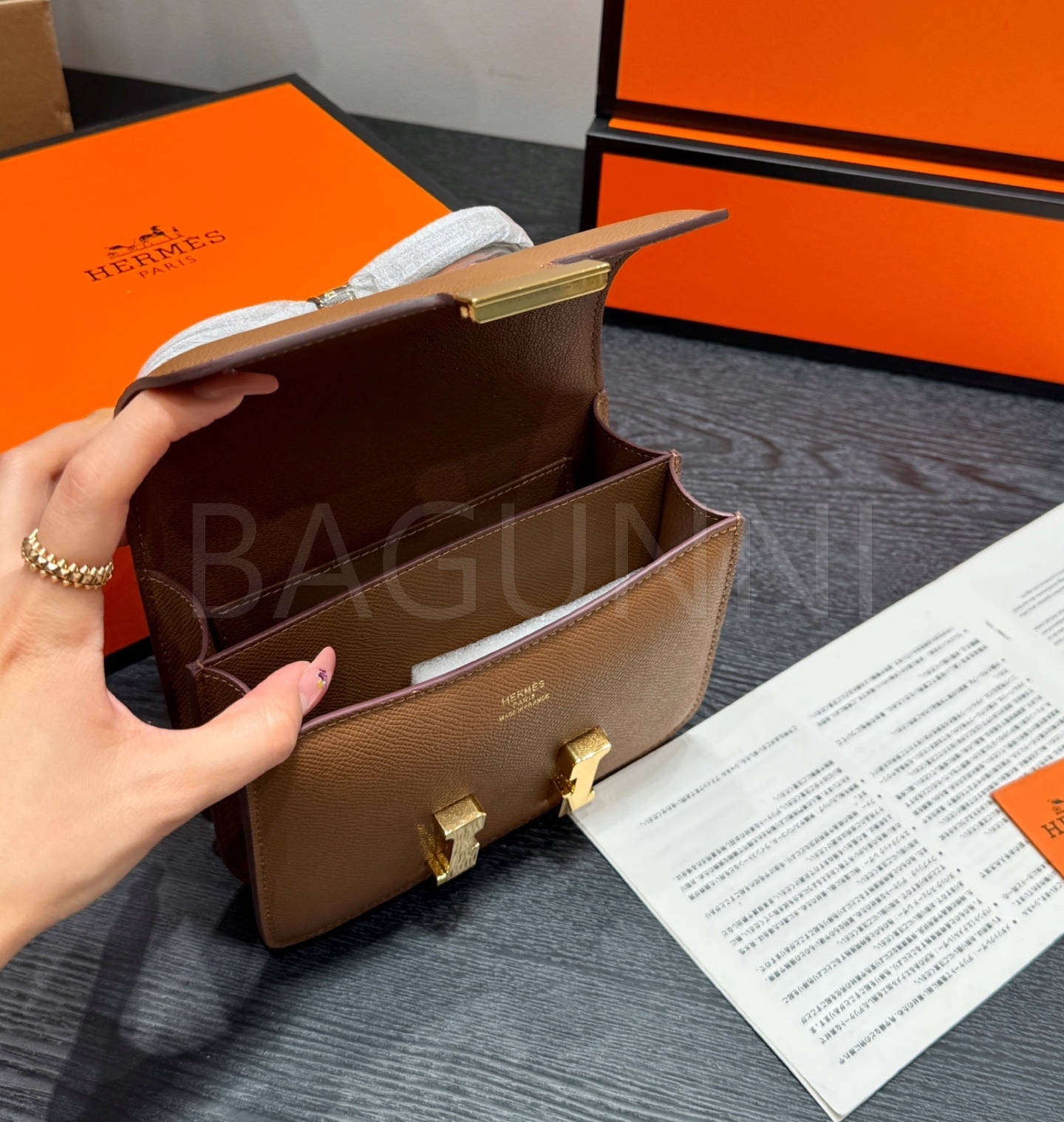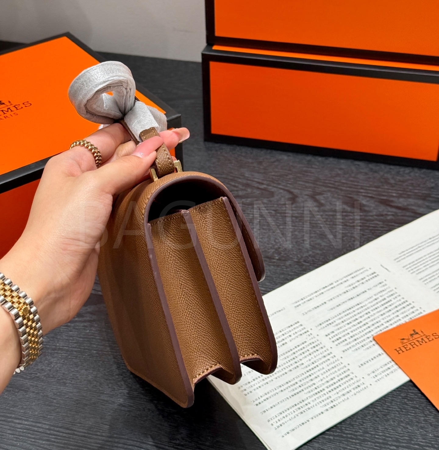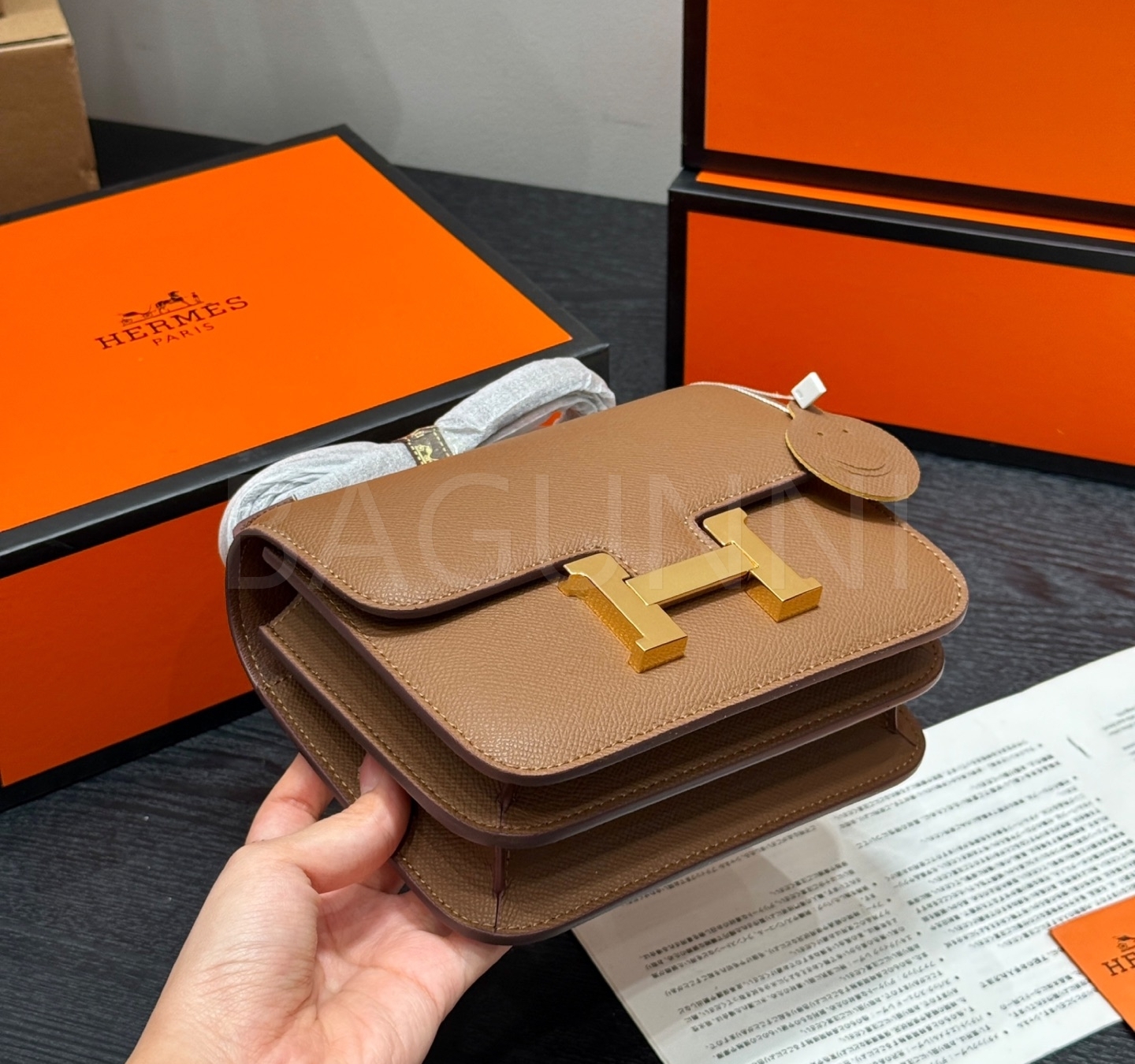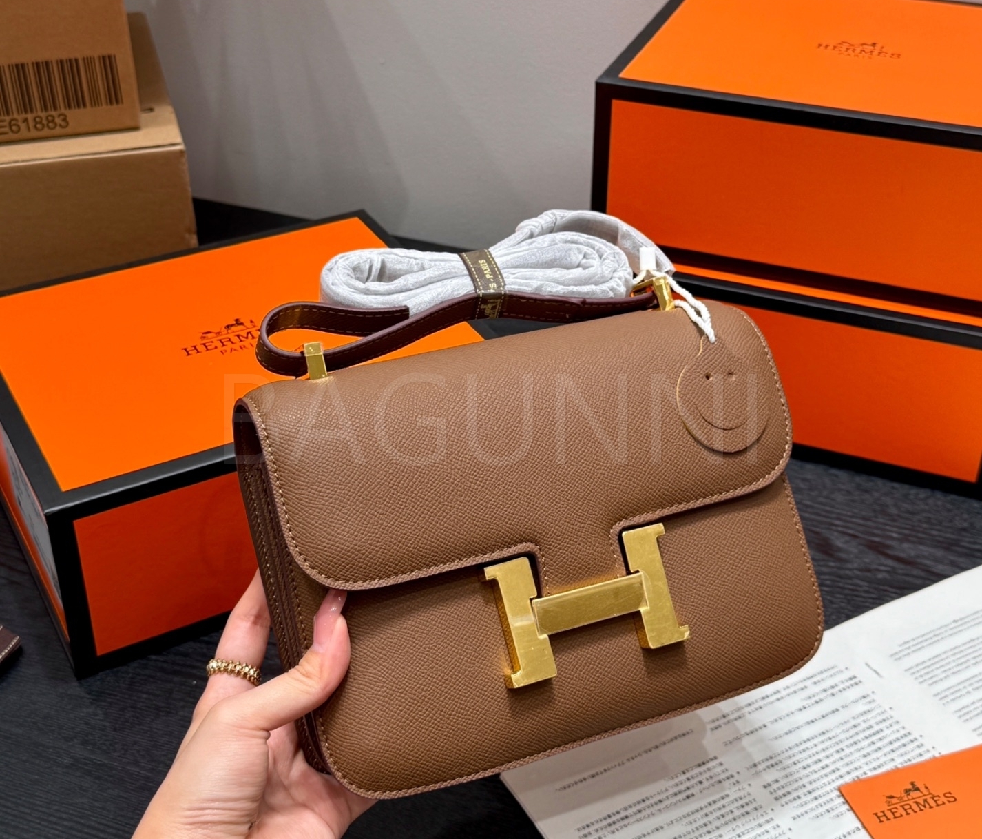 에르메스 콘스탄스 숄더백입니다. 가죽 특유의 질감이 자연스럽게 살아 있으며 브랜드 특유의 분위기를 편하게 즐기기 좋습니다.