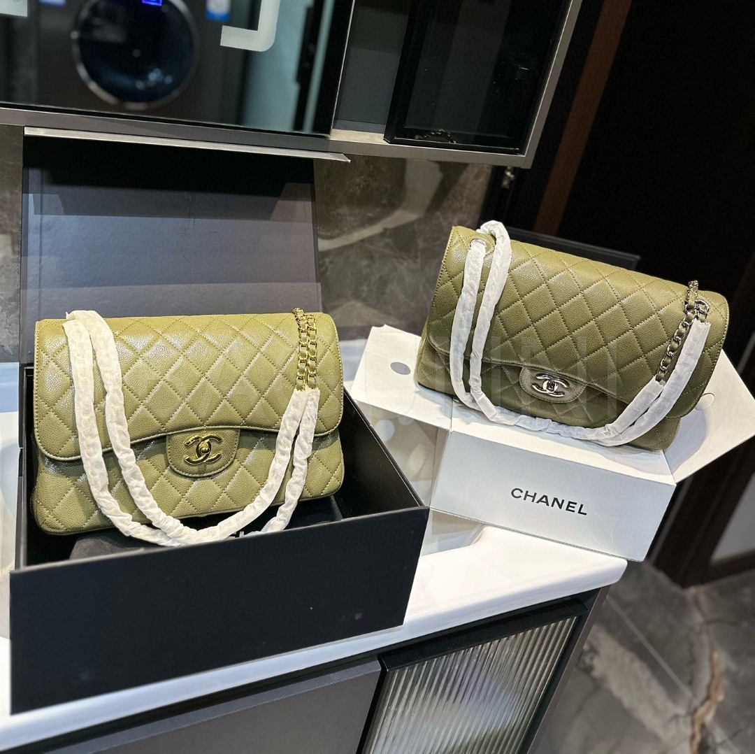 캐비어 가죽 특유의 매력이 돋보이는 샤넬 클래식 플랩 백입니다.