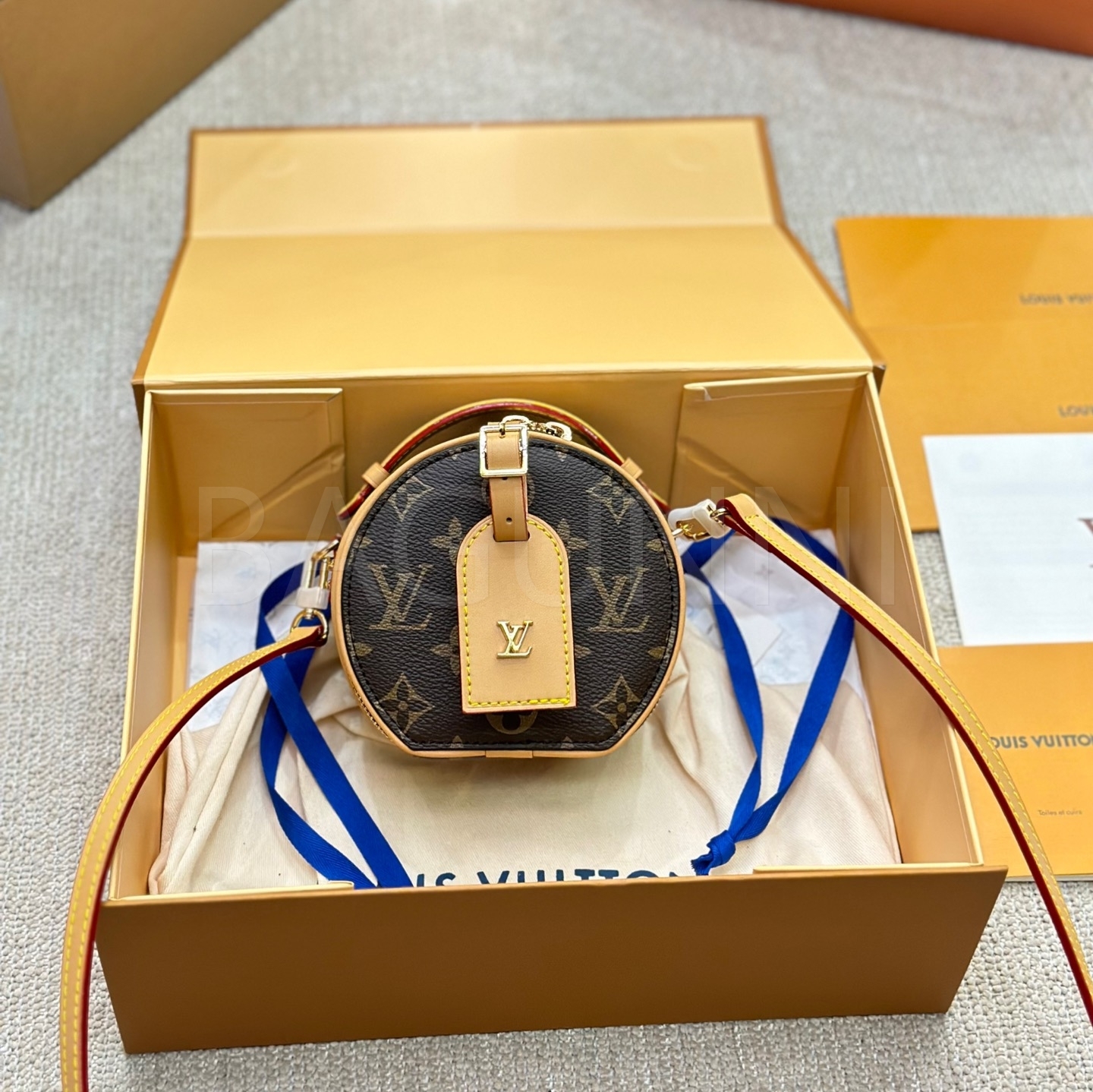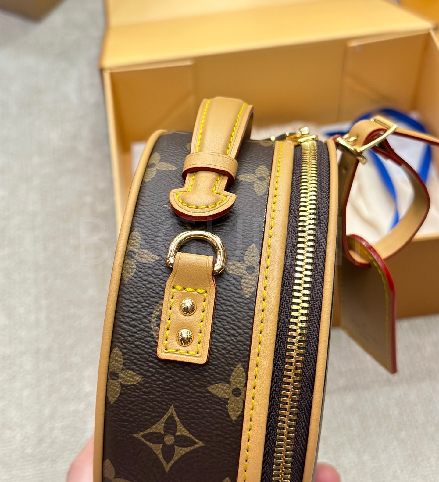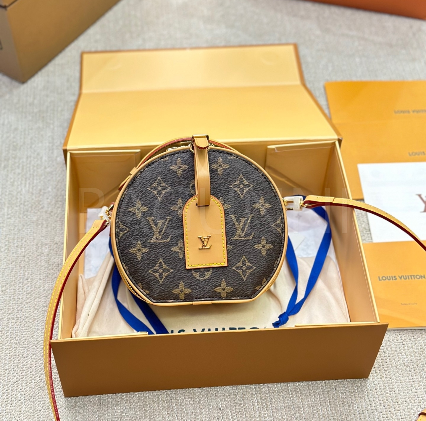 클래식한 캔버스 무드가 돋보이는 루이비통 원형 숄더백입니다.