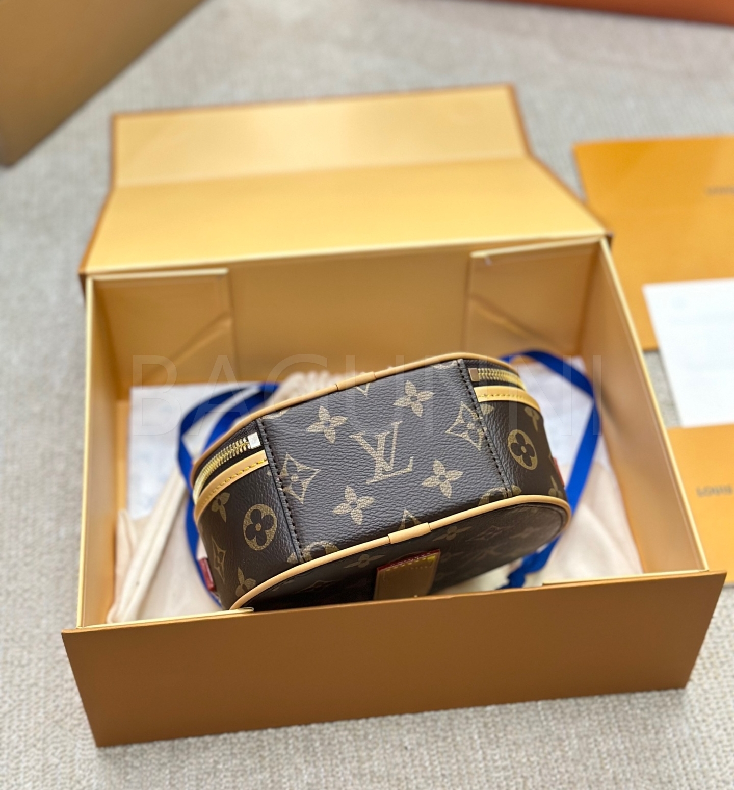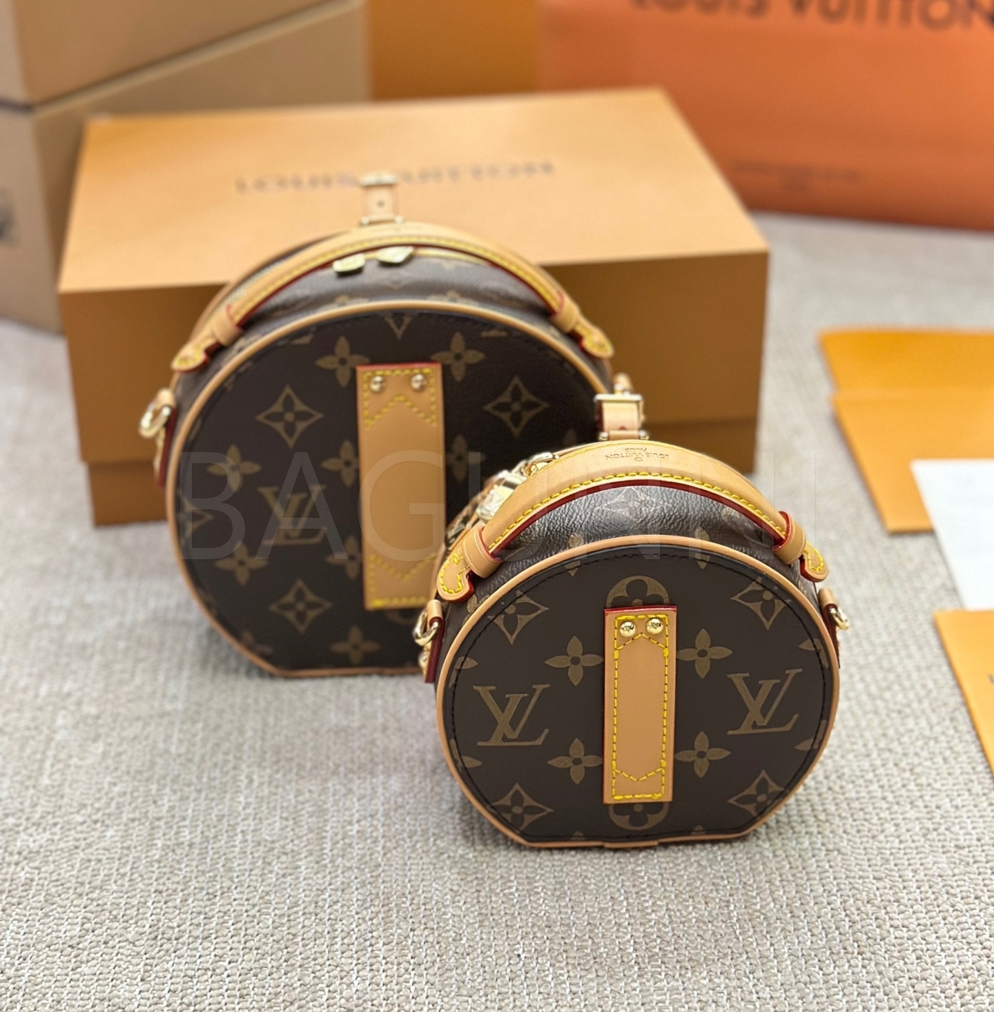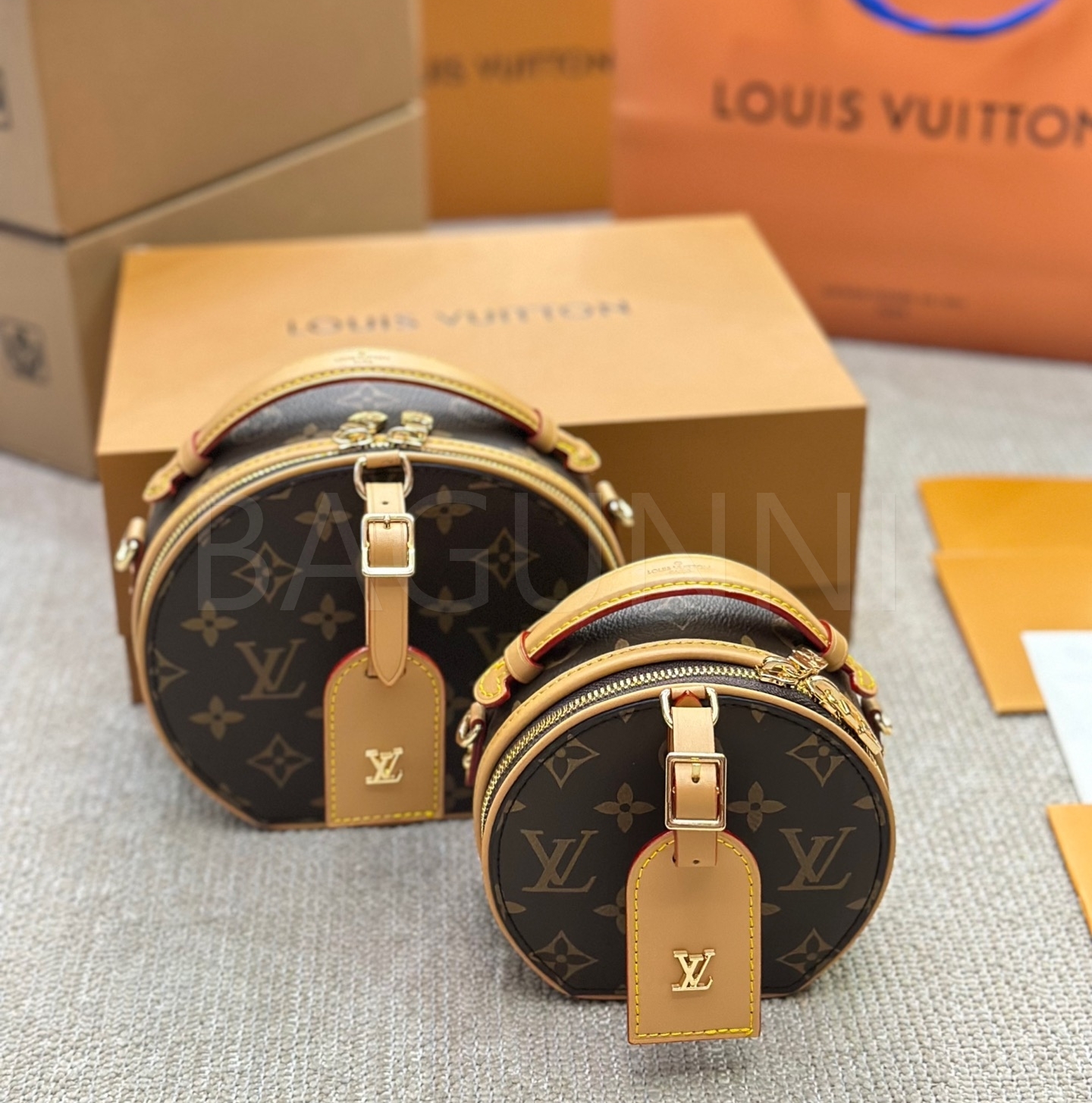 클래식한 캔버스 무드가 돋보이는 루이비통 원형 숄더백입니다.