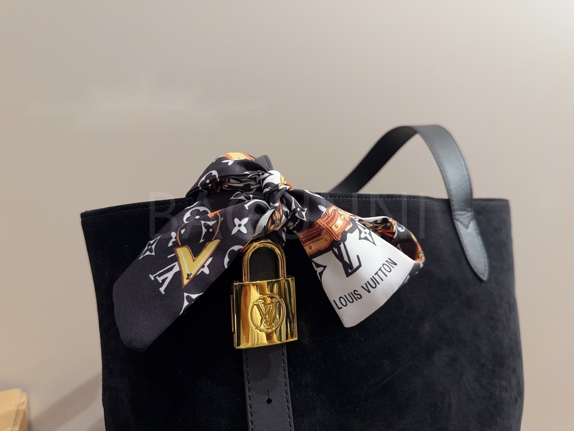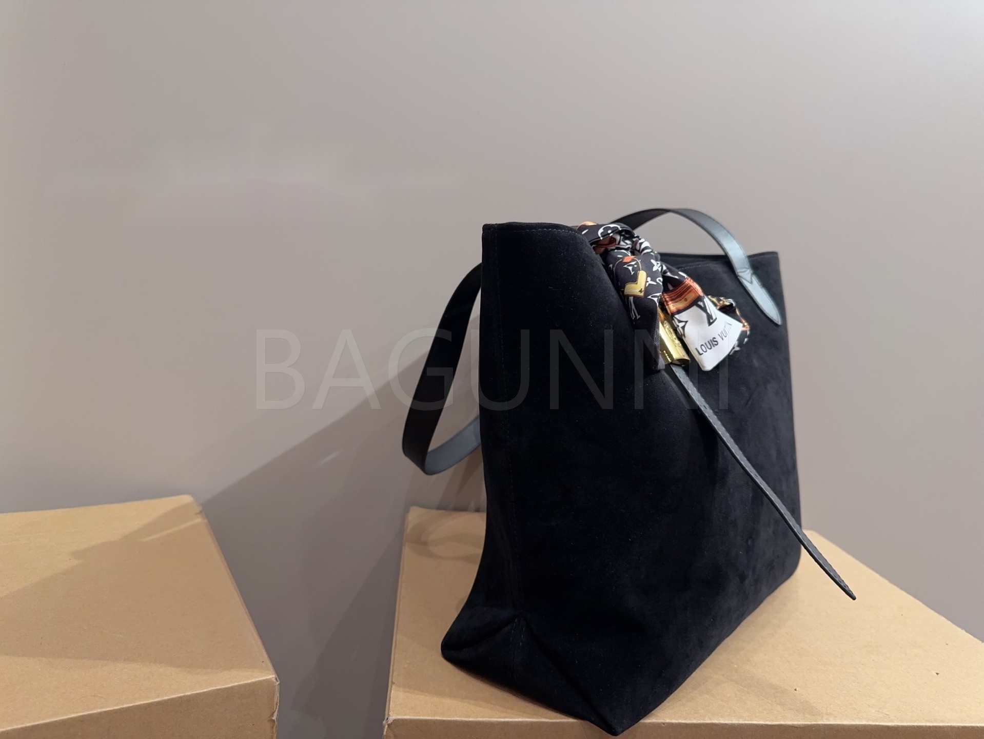스웨이드 소재의 매력이 자연스럽게 살아 있는 루이비통 토트백입니다.
