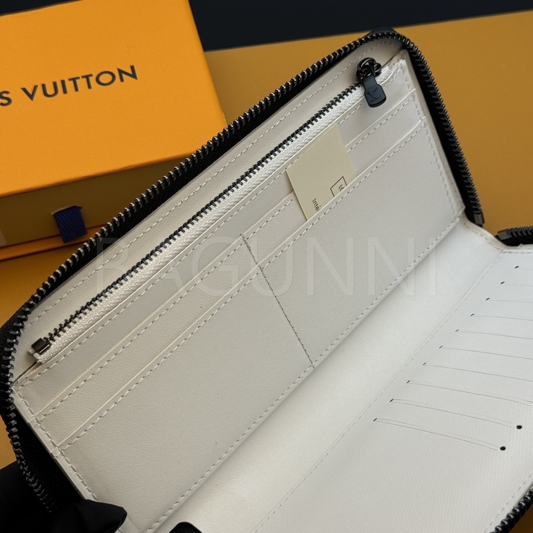 카프스킨의 질감이 돋보이는 루이비통 지피 버티컬 장지갑입니다.