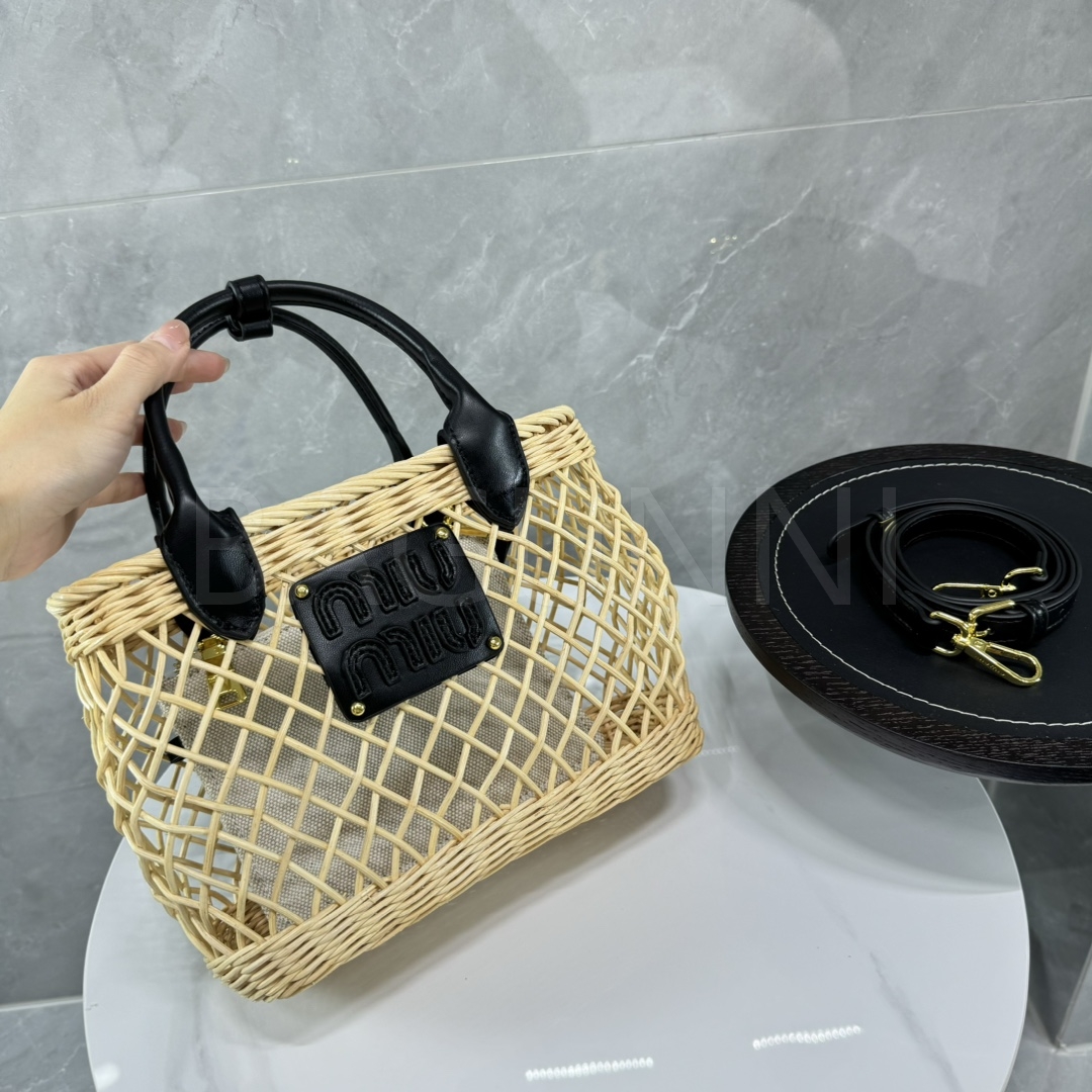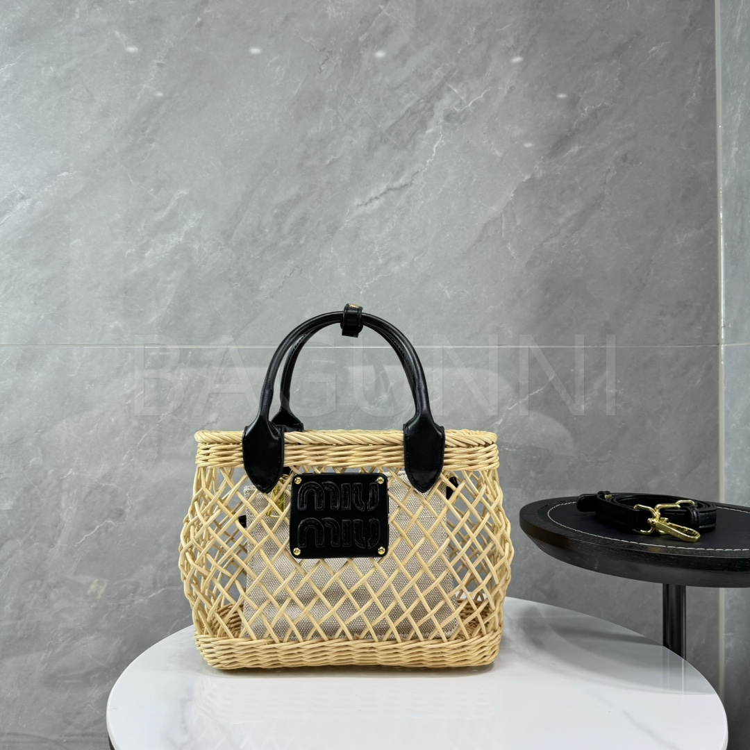 미우미우 우븐 로고 토트백입니다. 브랜드 특유의 분위기를 편하게 즐기기 좋습니다.