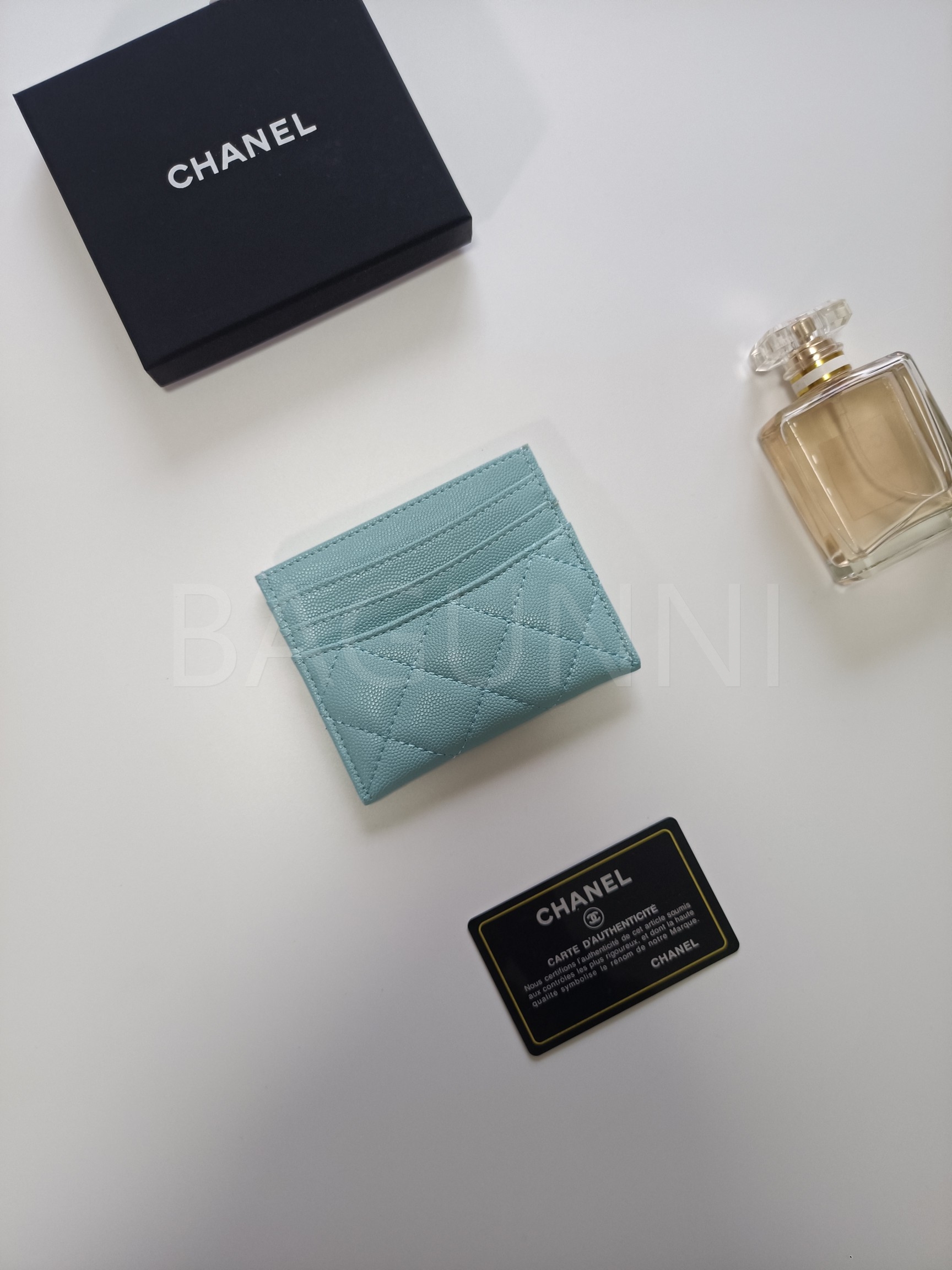 램스킨의 질감이 돋보이는 샤넬 클래식 플랩 카드지갑입니다.