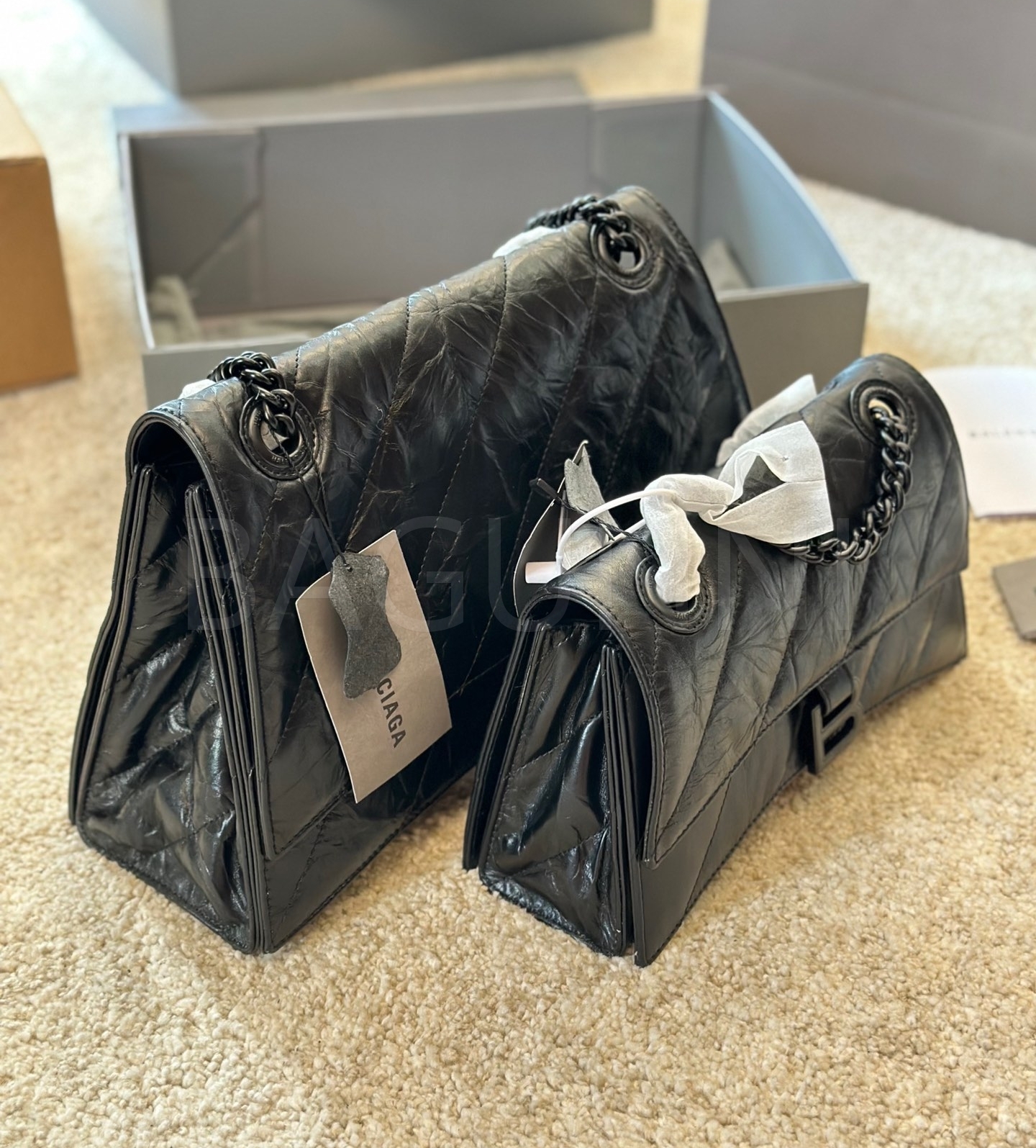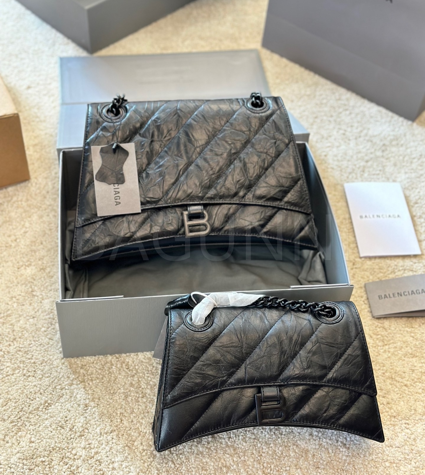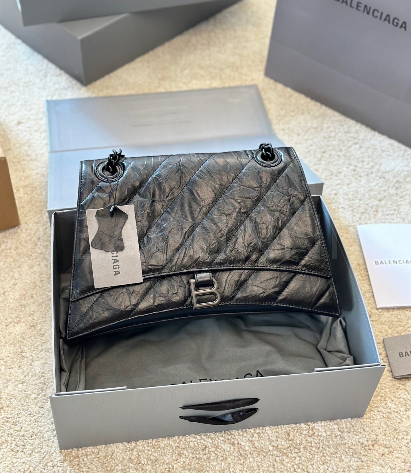 발렌시아가 아워글래스 숄더백입니다. 가죽 특유의 질감이 자연스럽게 살아 있으며 브랜드 특유의 분위기를 편하게 즐기기 좋습니다.
