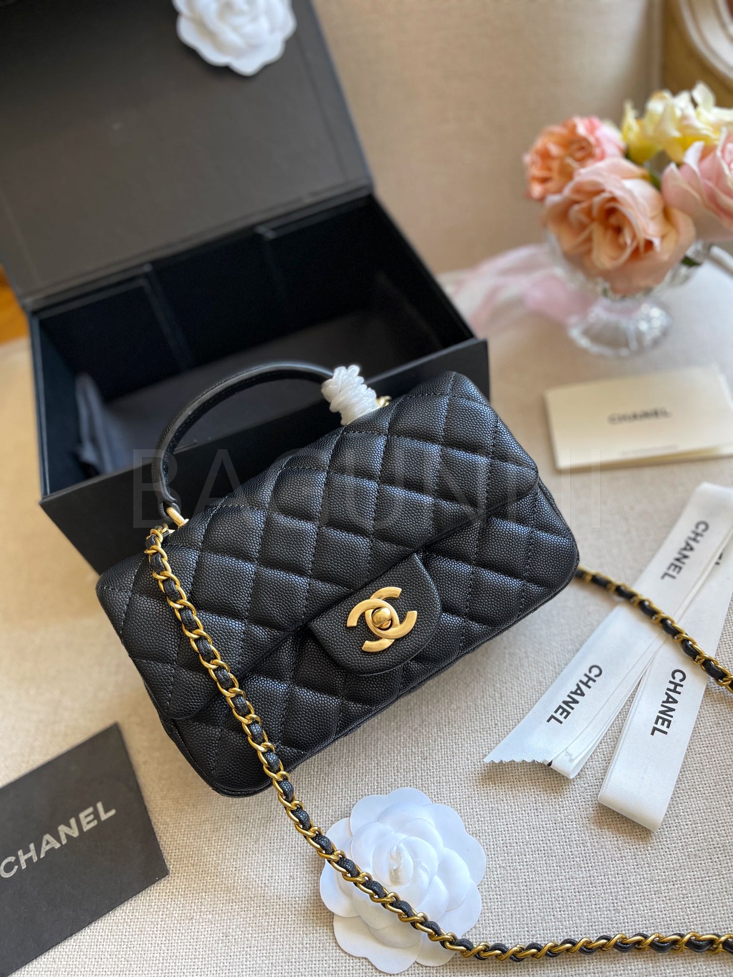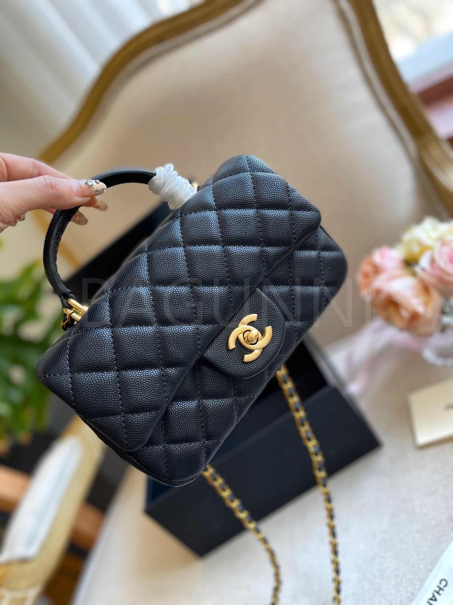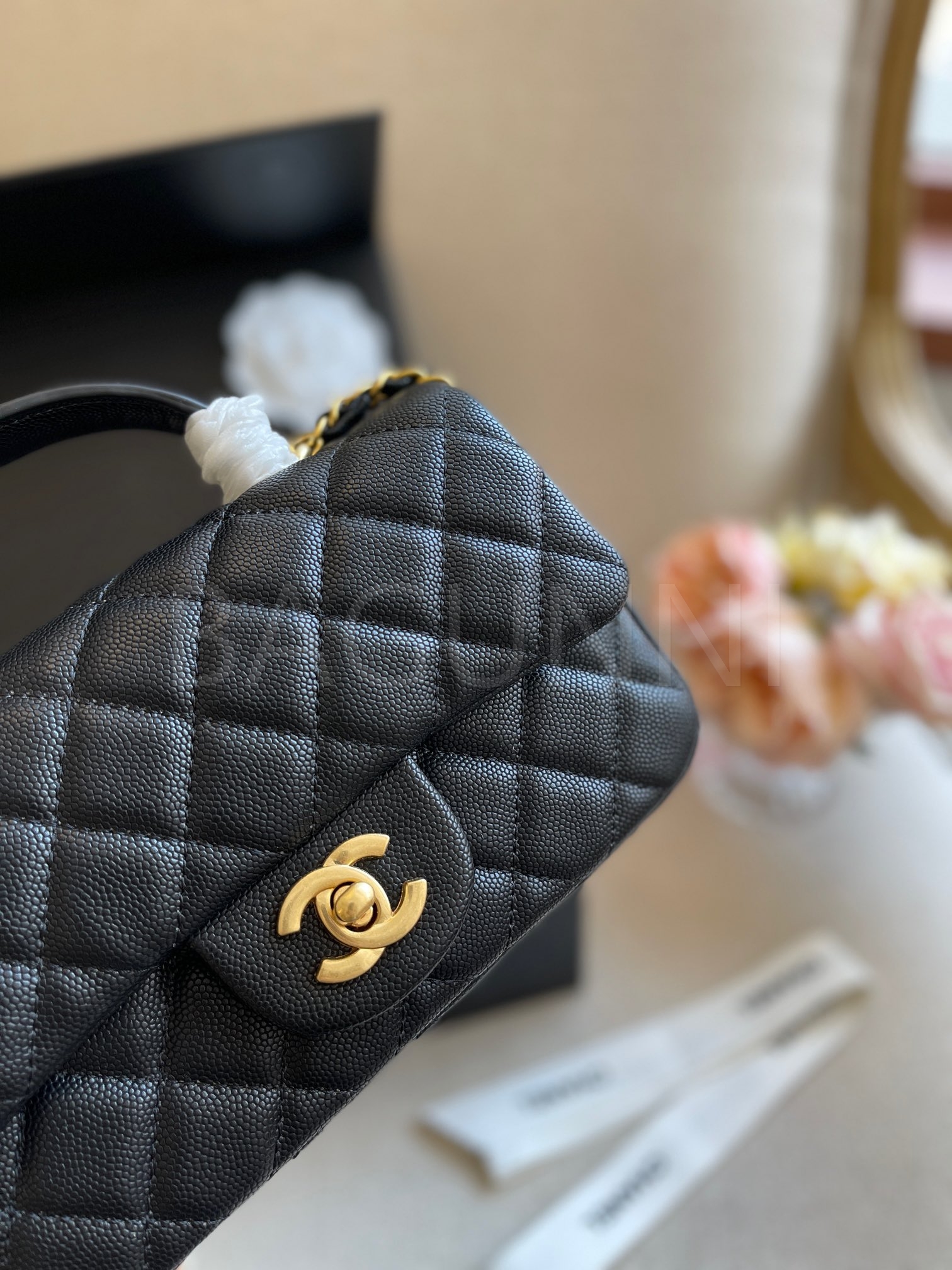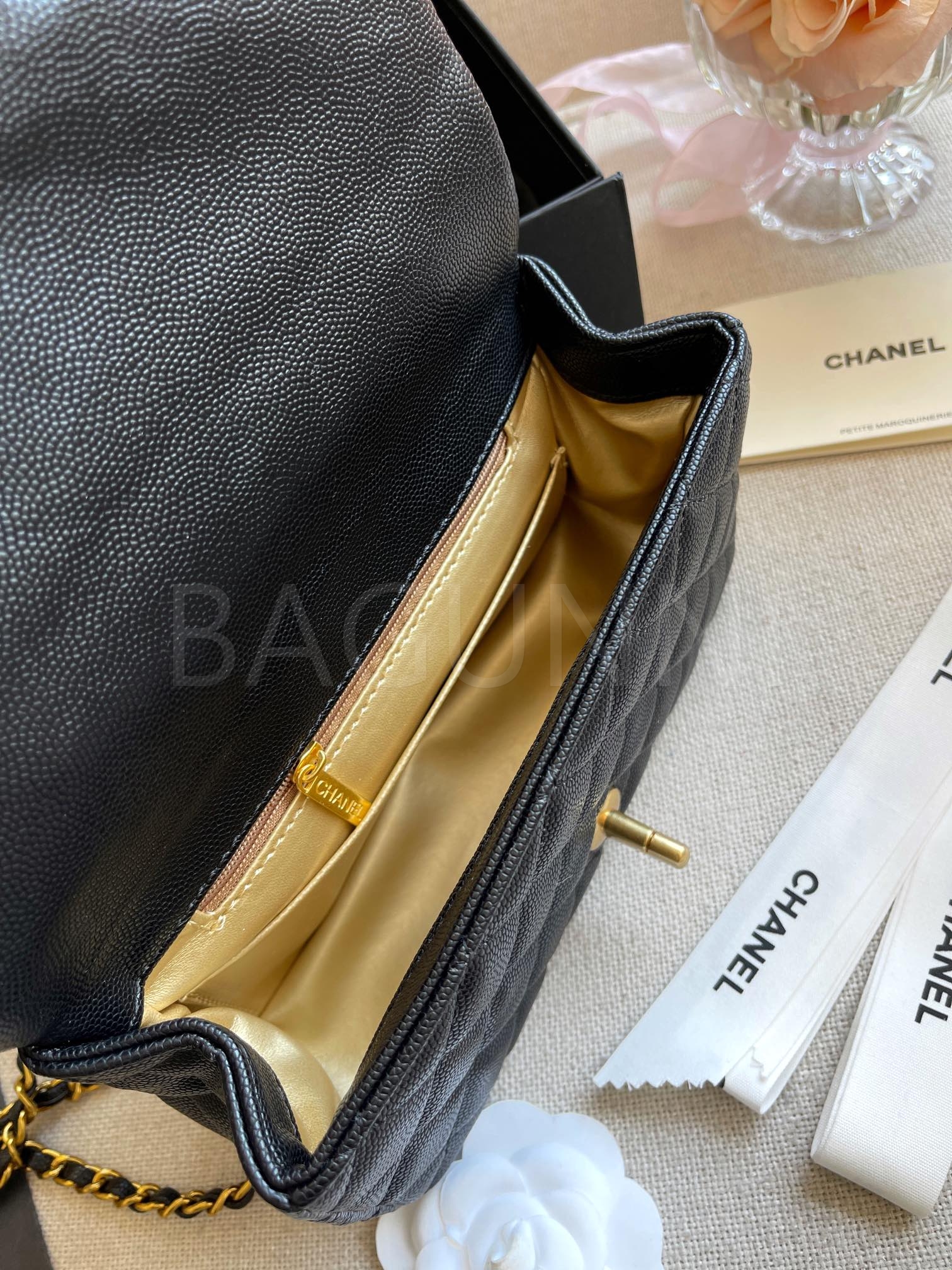 캐비어 가죽 특유의 매력이 돋보이는 샤넬 클래식 플랩 백입니다.