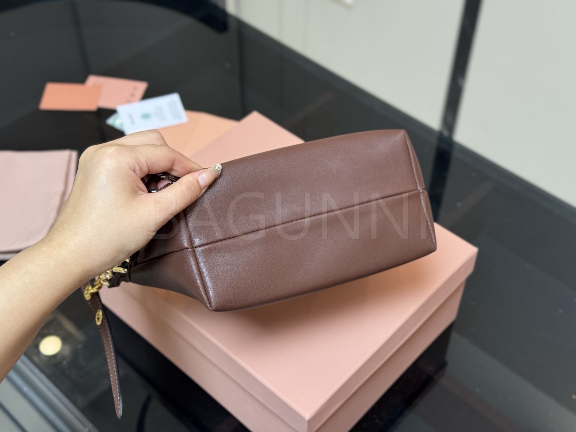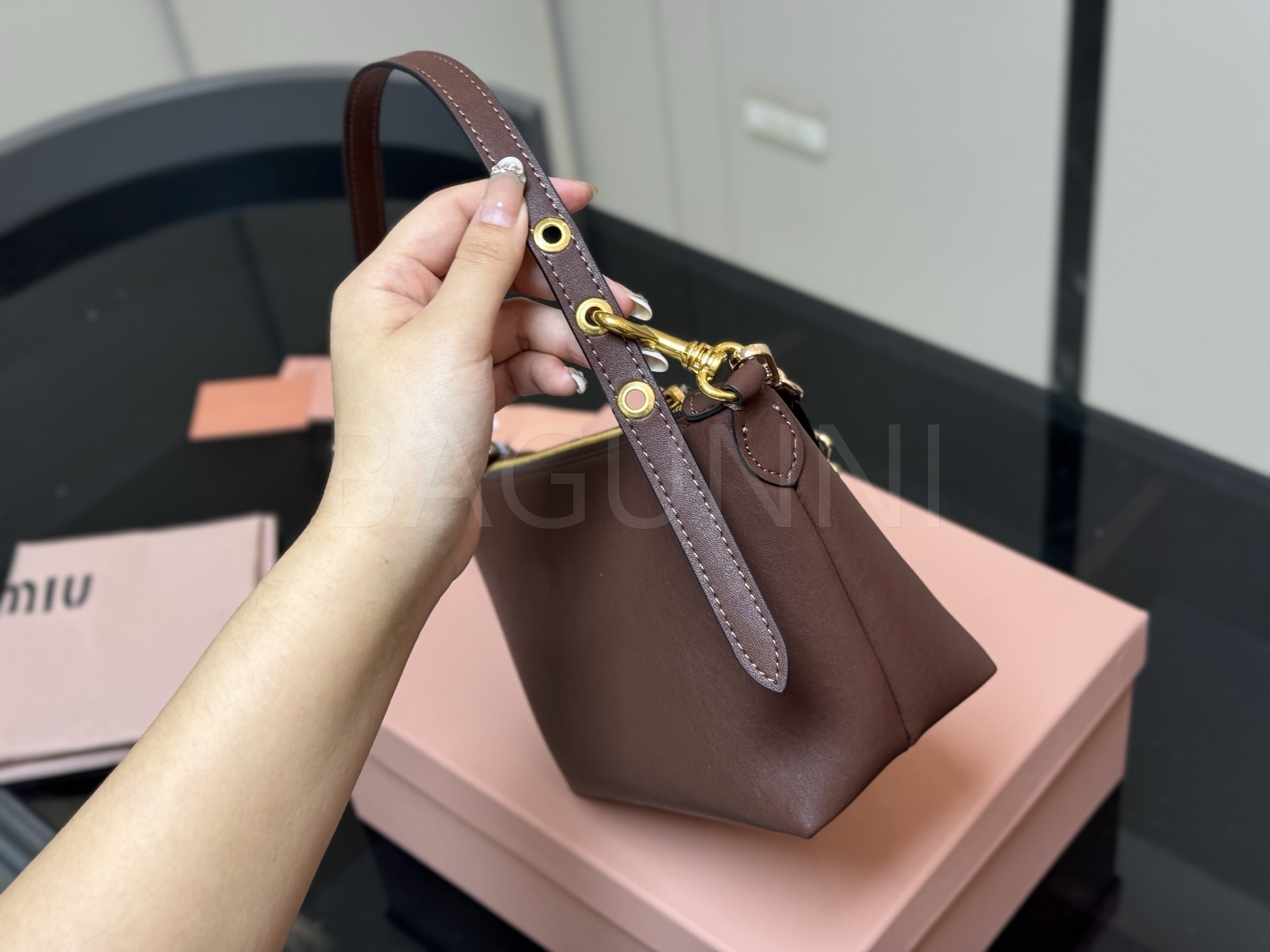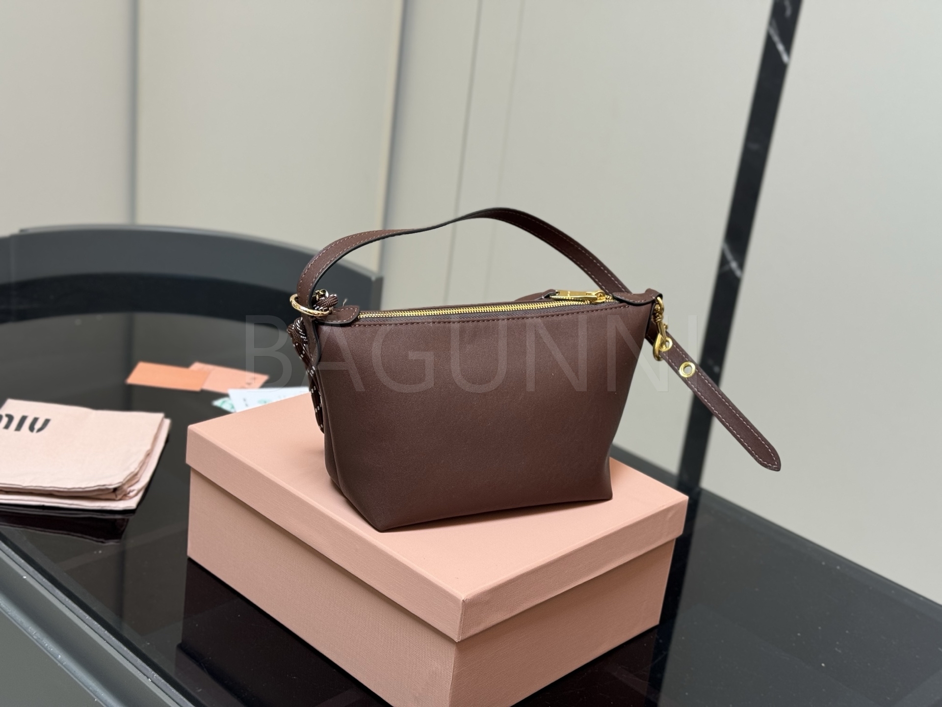 미우미우 캔버스 박스 숄더백입니다. 캔버스 특유의 질감이 자연스럽게 살아 있으며 브랜드 특유의 분위기를 편하게 즐기기 좋습니다.