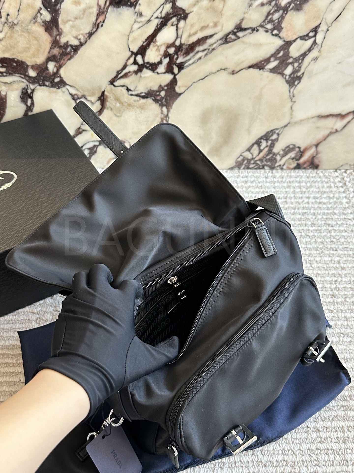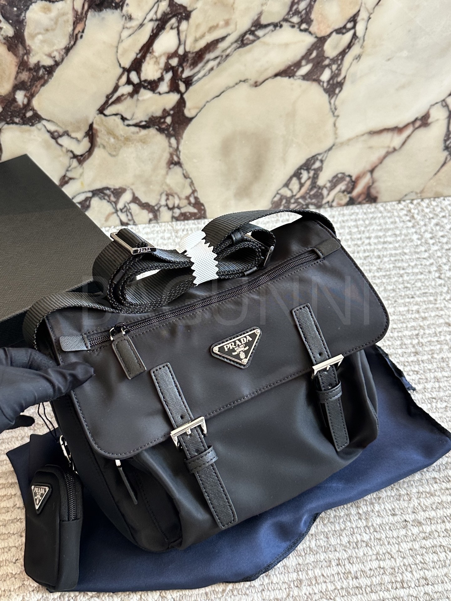 프라다 메신저백은 세련된 실루엣을 담은 아이템입니다.