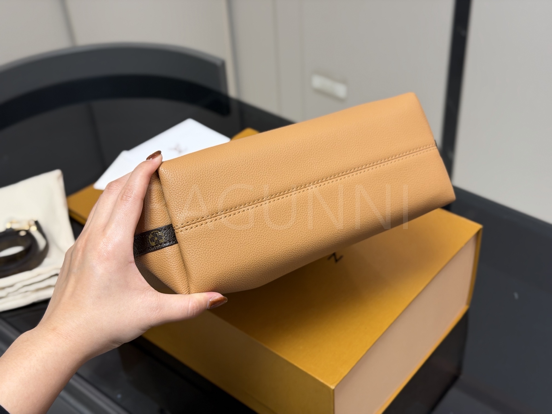 - 가죽 제품의 경우 소재 특성상 자연스러운 주름, 눌림, 스크래치 등이 발생할 수 있으며, 이는 사용 과정에서도 나타나는 부분으로 불량이 아닙니다.